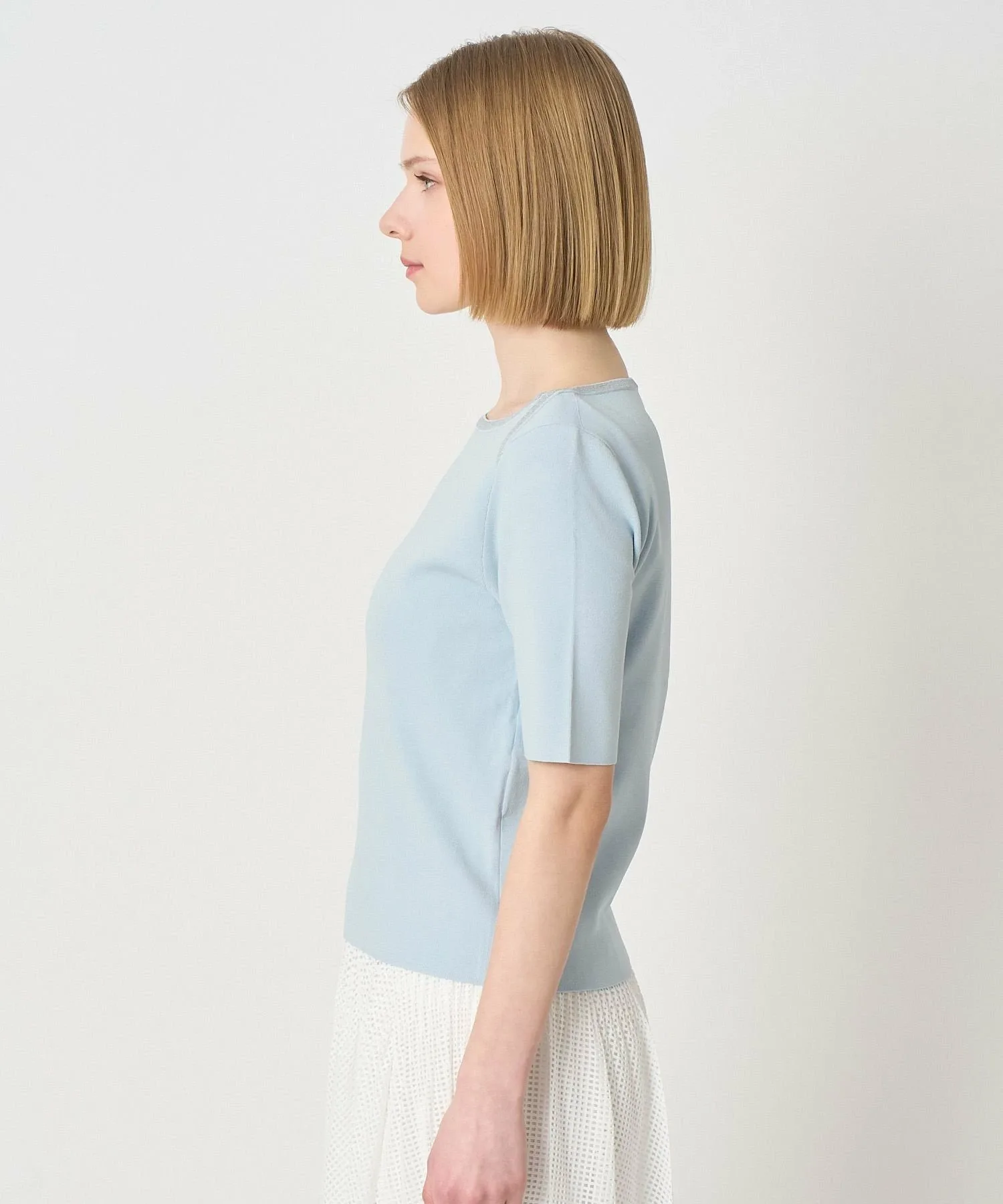 Классические рукава 5/4 выше локтя в сочетании с открытым воротником создают аккуратный вид плеч.