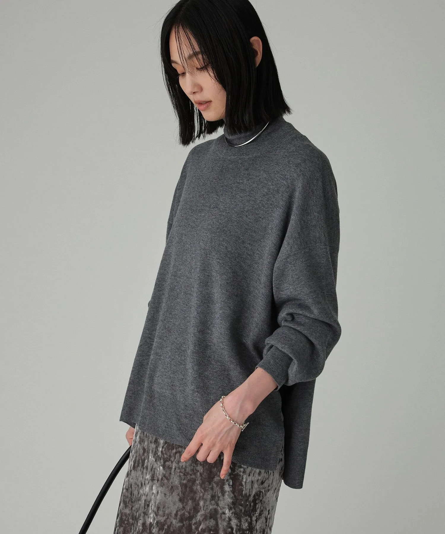 Трикотажное изделие с приспущенными плечами и высоким воротником, невероятно мягкое на ощупь.