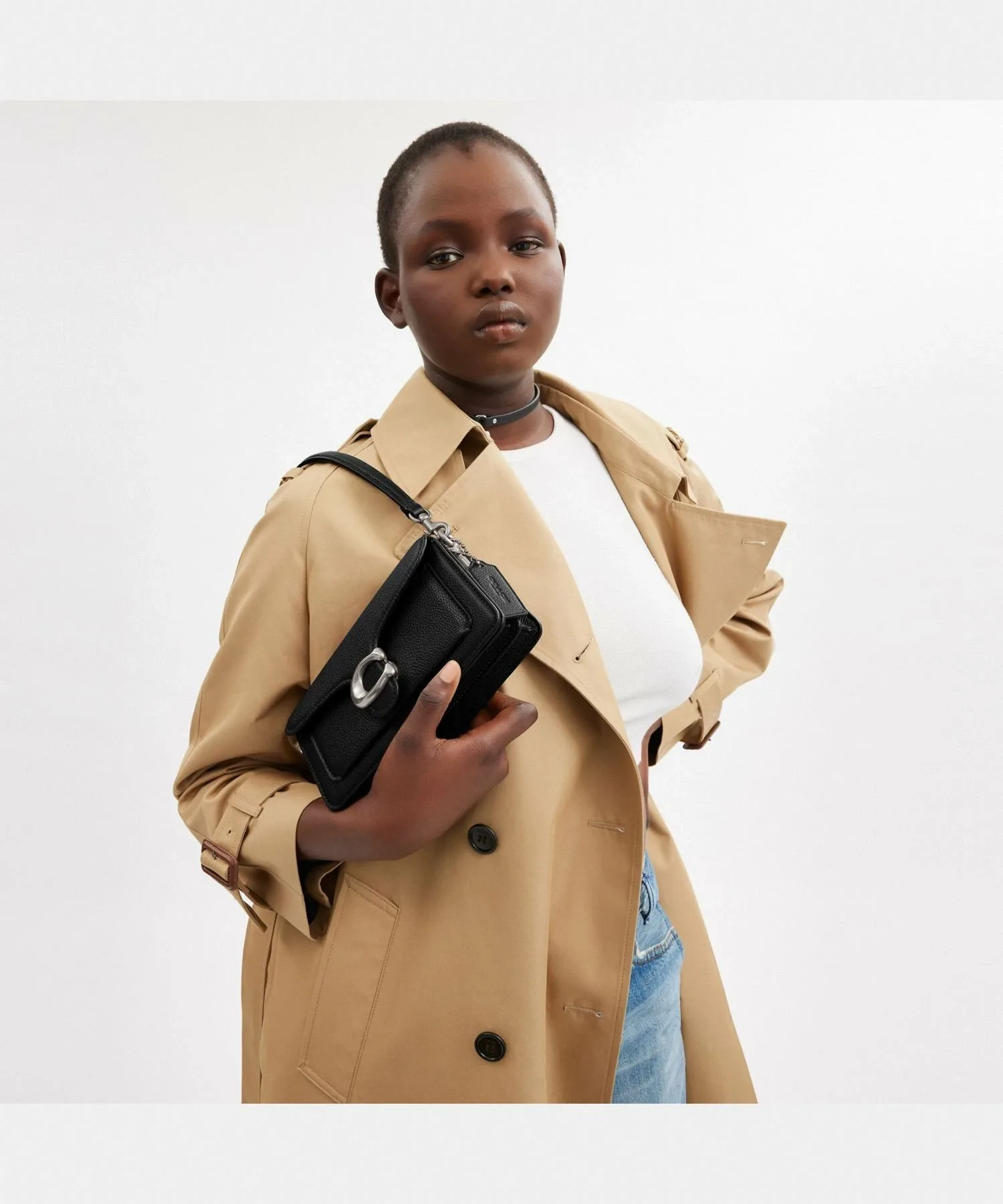 Культовая сумка "Tabby" — это современная интерпретация дизайна Coach, который хранится в архивах с 1970-х годов. Изготовленная из полированной зернистой кожи, сумка украшена фирменной фурнитурой в виде буквы "C".