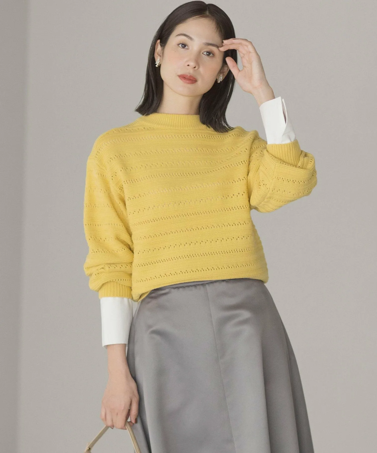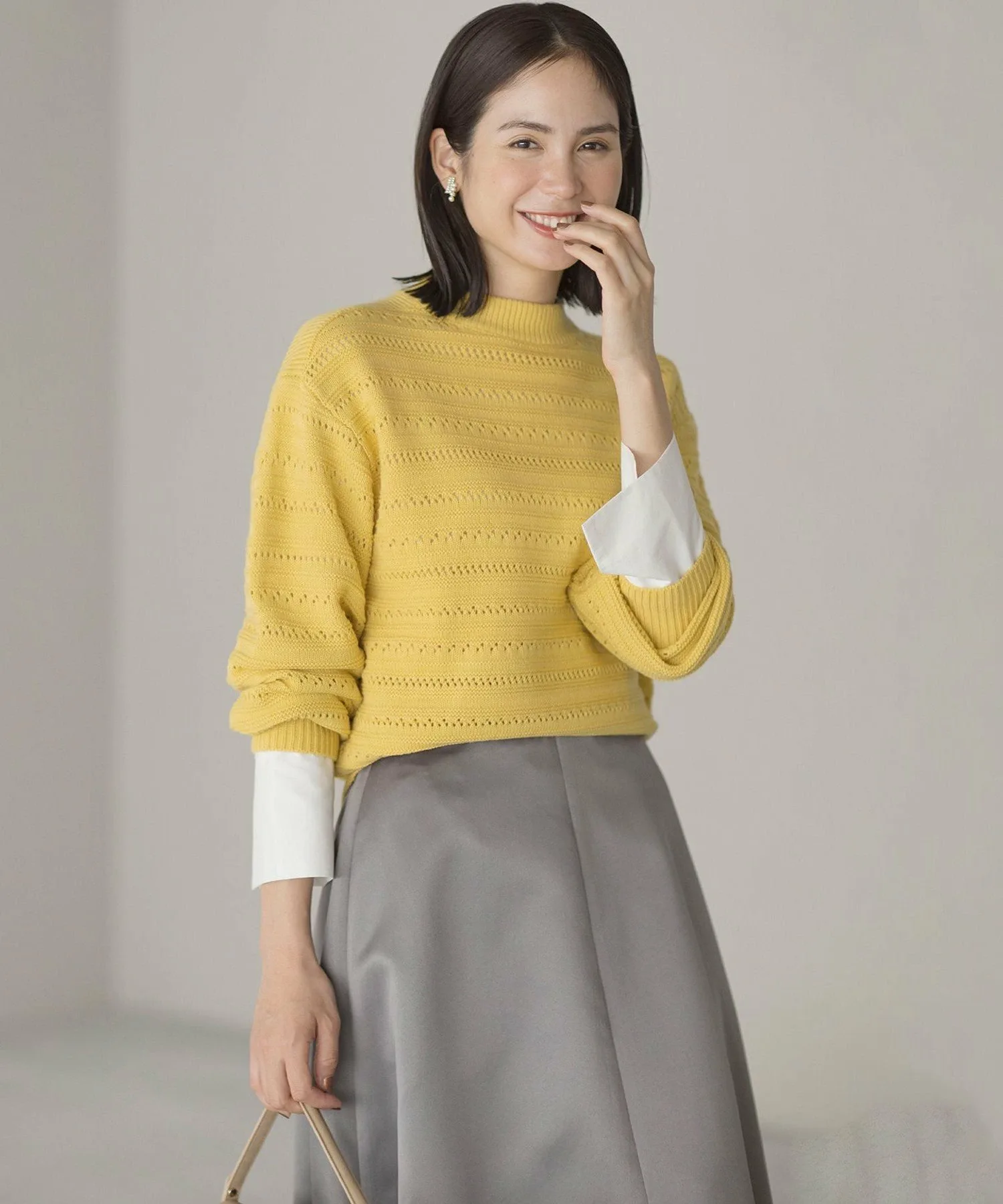 Дизайн: Этот свитер отличается изысканной нежностью благодаря кружевному узору по краю, сочетающему ажурную и платочную вязку. Круглый вырез горловины прошит двойным швом для объема, что придает ему женственный, но в то же время теплый вид. Плечи украшены ребристой вязкой, а длина достаточно компактна, чтобы легко сочетаться с брюками или юбками. Материал также привлекателен своей пригодностью для использования как зимой, так и весной. Этот свитер сам по себе обладает изысканной нежностью и отлично подходит в качестве нижнего слоя в течение всего сезона верхней одежды.