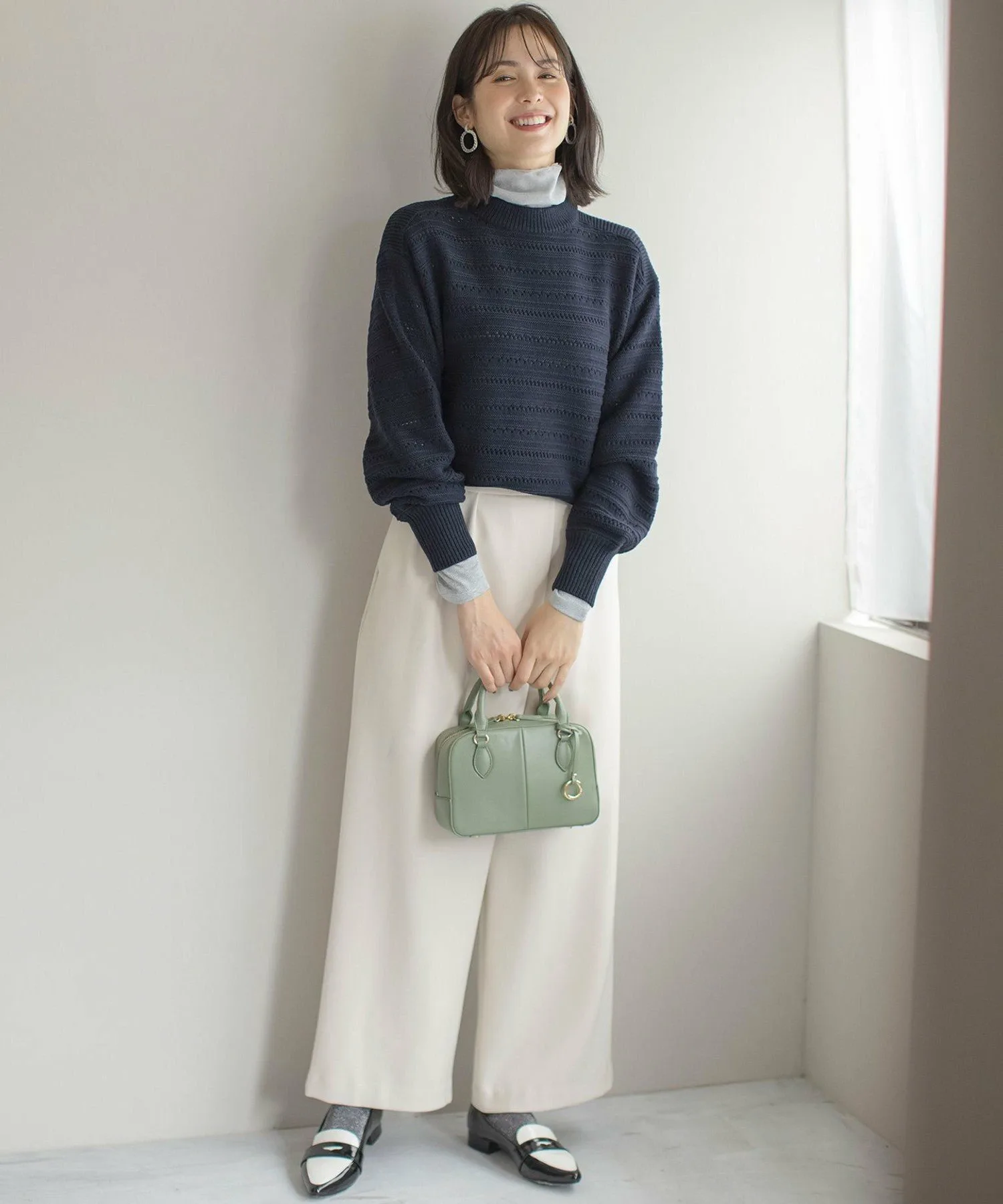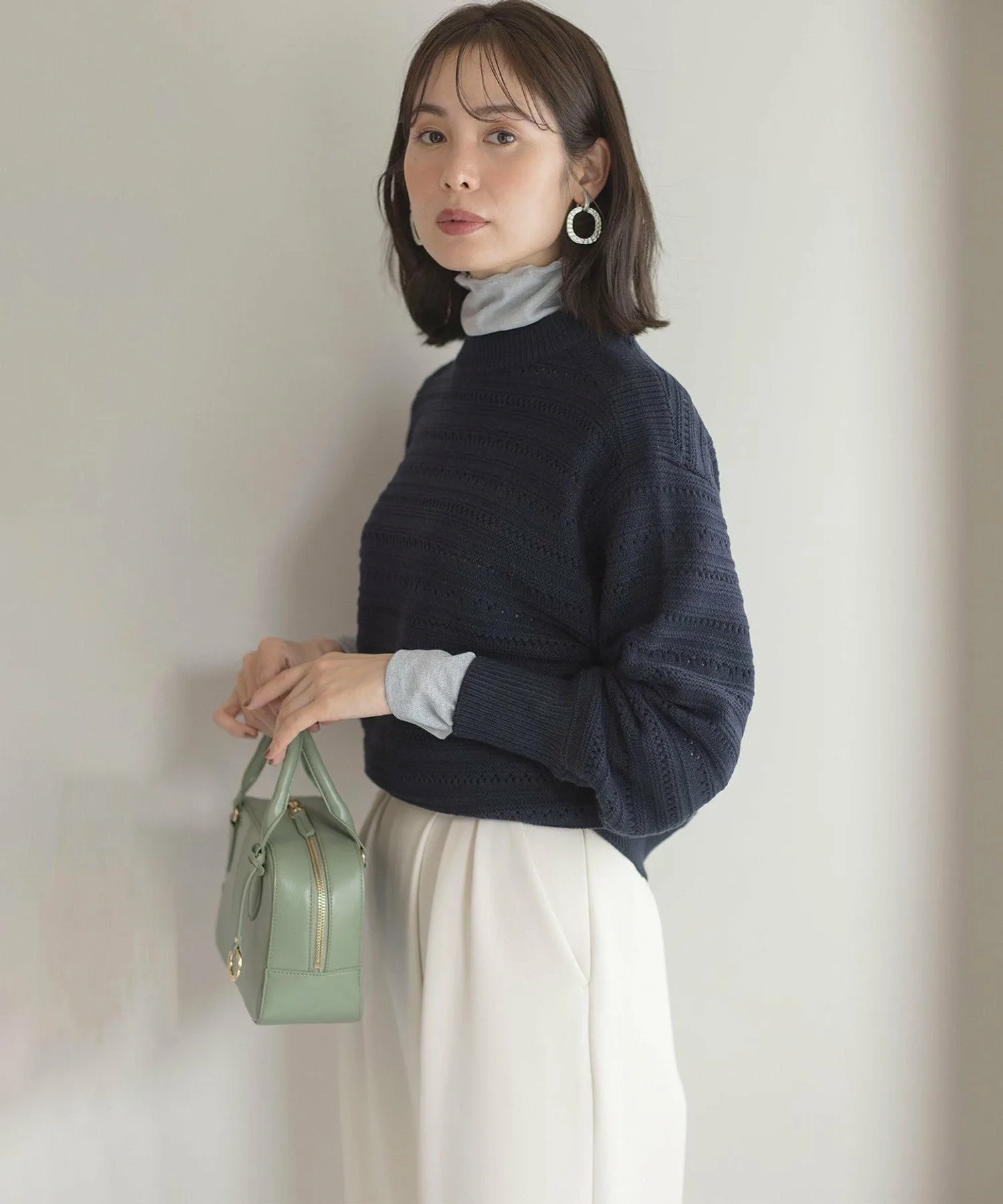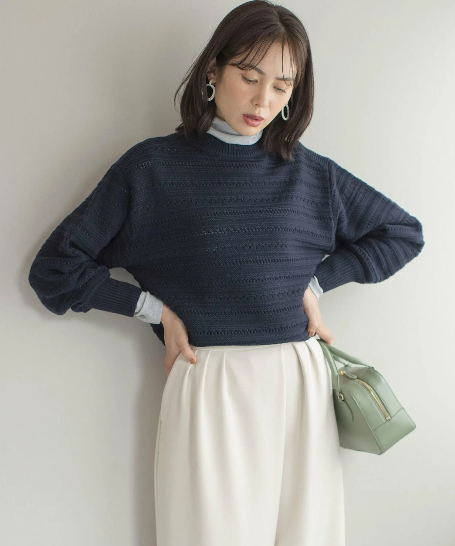 Дизайн: Этот свитер отличается изысканной нежностью благодаря кружевному узору по краю, сочетающему ажурную и платочную вязку. Круглый вырез горловины прошит двойным швом для объема, что придает ему женственный, но в то же время теплый вид. Плечи украшены ребристой вязкой, а длина достаточно компактна, чтобы легко сочетаться с брюками или юбками. Материал также привлекателен своей пригодностью для использования как зимой, так и весной. Этот свитер сам по себе обладает изысканной нежностью и отлично подходит в качестве нижнего слоя в течение всего сезона верхней одежды.