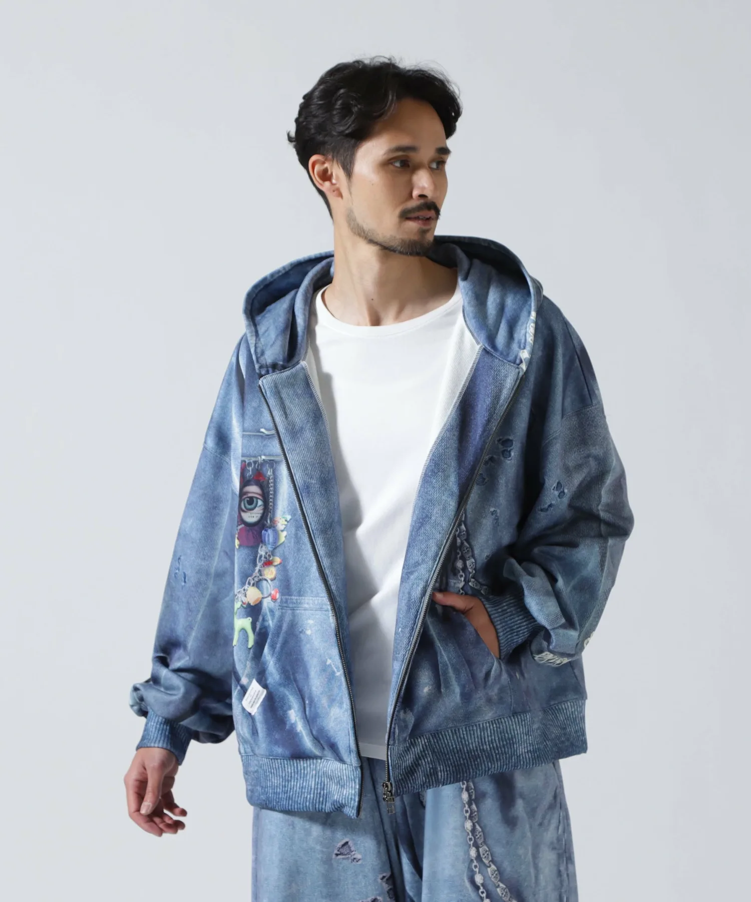 Оригинальная текстура этой винтажной толстовки 70-х годов дополнена уникальным графическим рисунком, создающим более реалистичное ощущение.