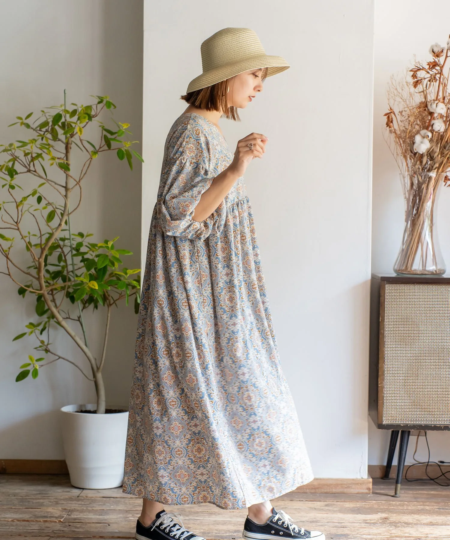 Поля шляпы закруглены внутрь, надежно закрывая лицо.