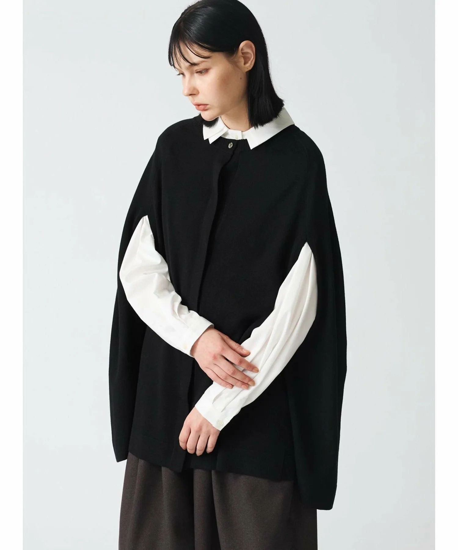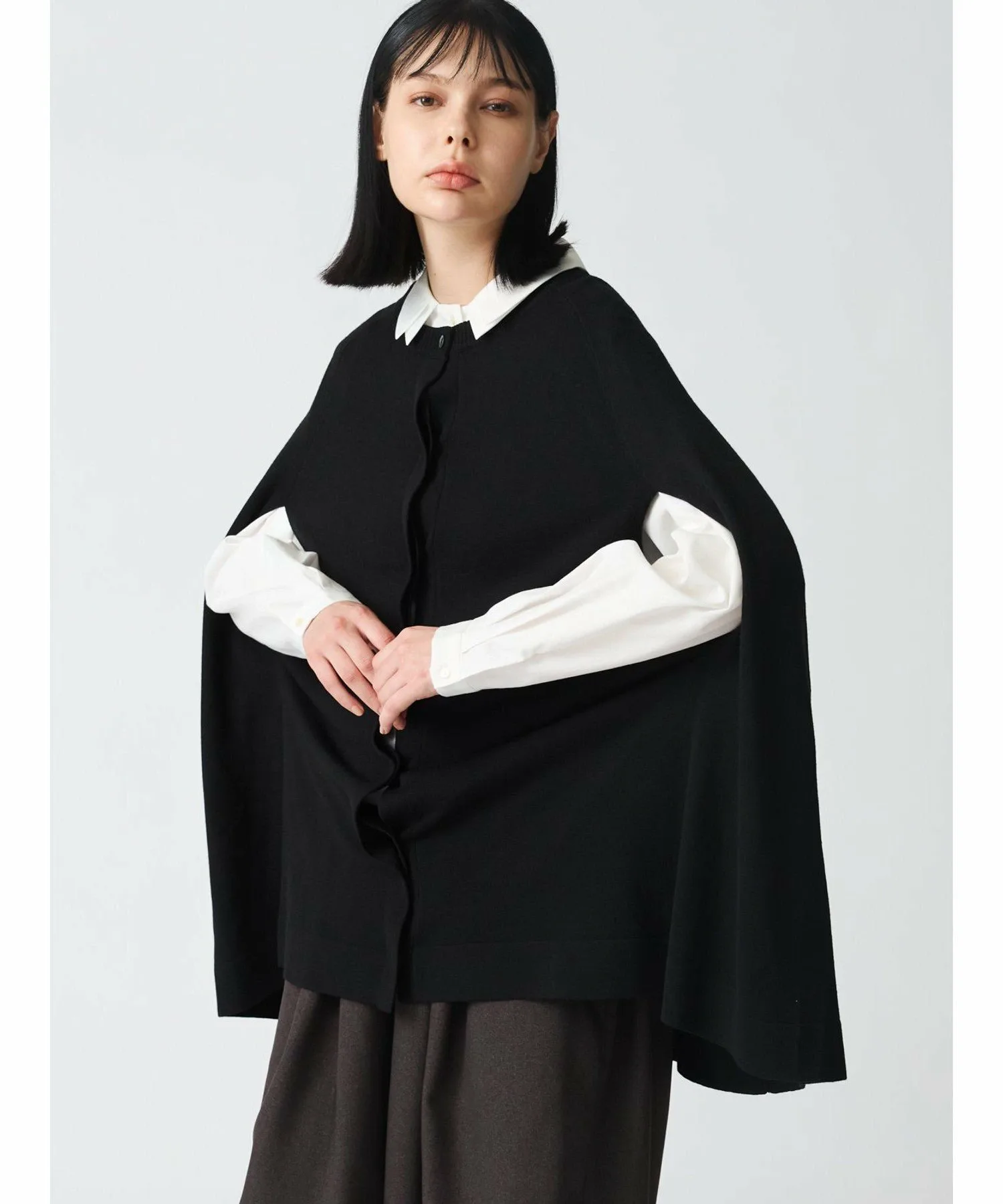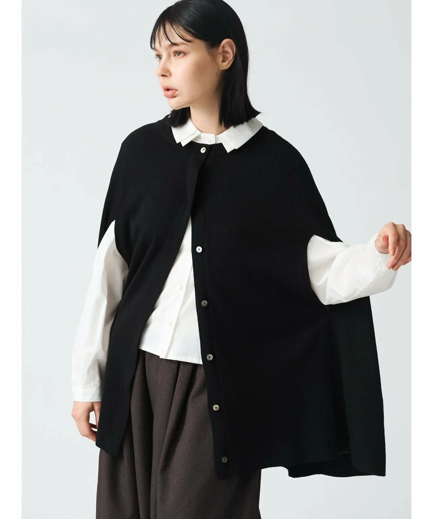 Этот популярный кардиган-туника с высокой вязкой — востребованная модель от mizuiroind. Длина увеличена по сравнению с предыдущей моделью. Это элегантное вязаное изделие выполнено из блестящей пряжи. Рукава легко продеваются и полностью открыты, что делает его удобным в ношении. Он также отлично смотрится с расстегнутыми передними пуговицами. Его легко носить под низ. Эта вещь излучает женственный стиль пончо.