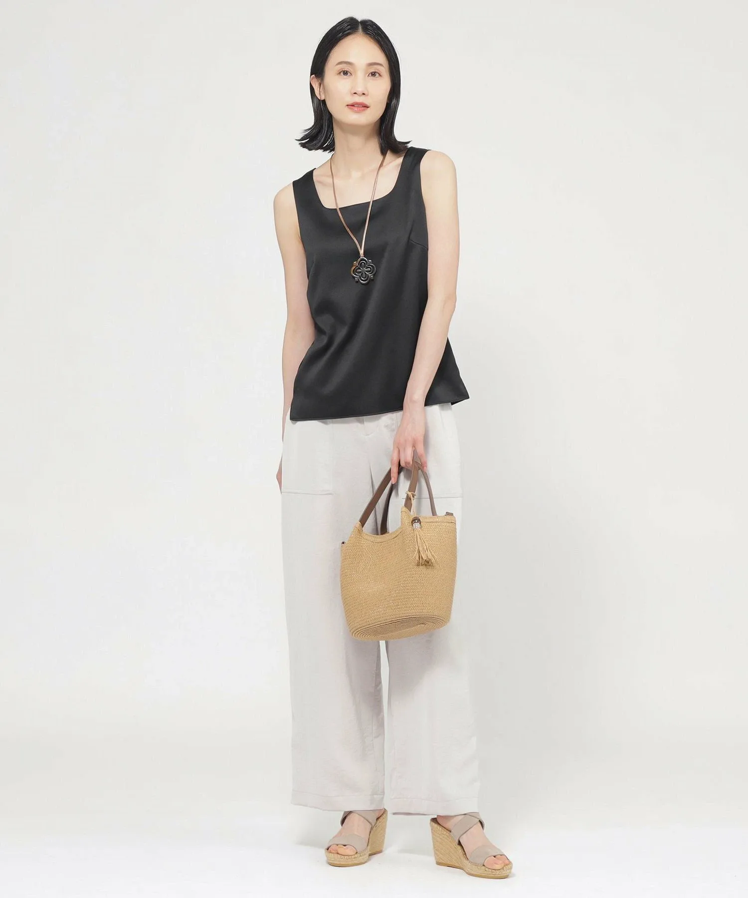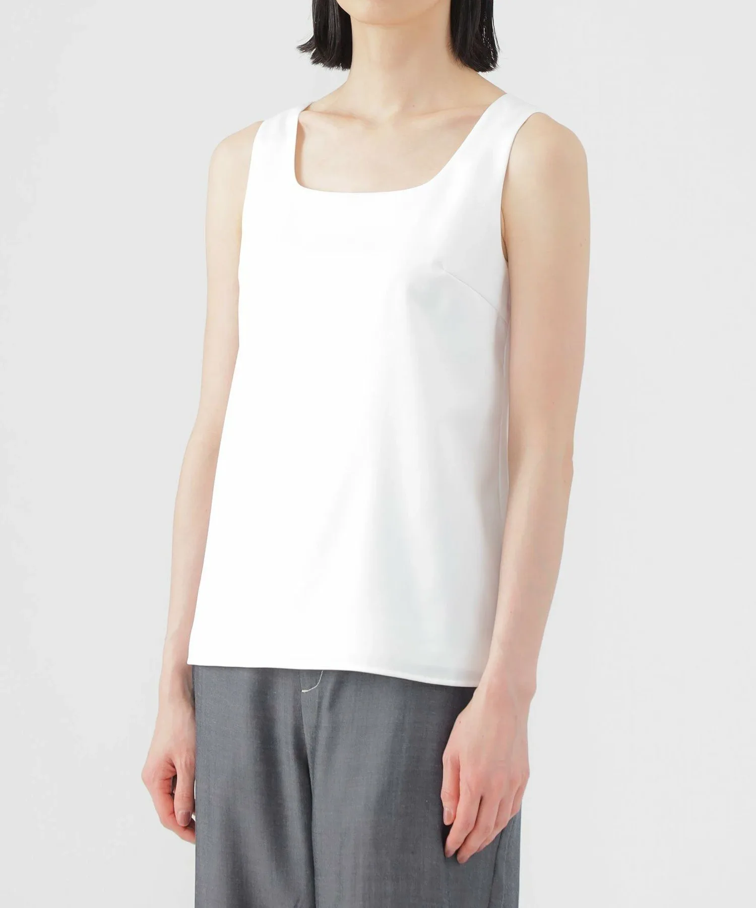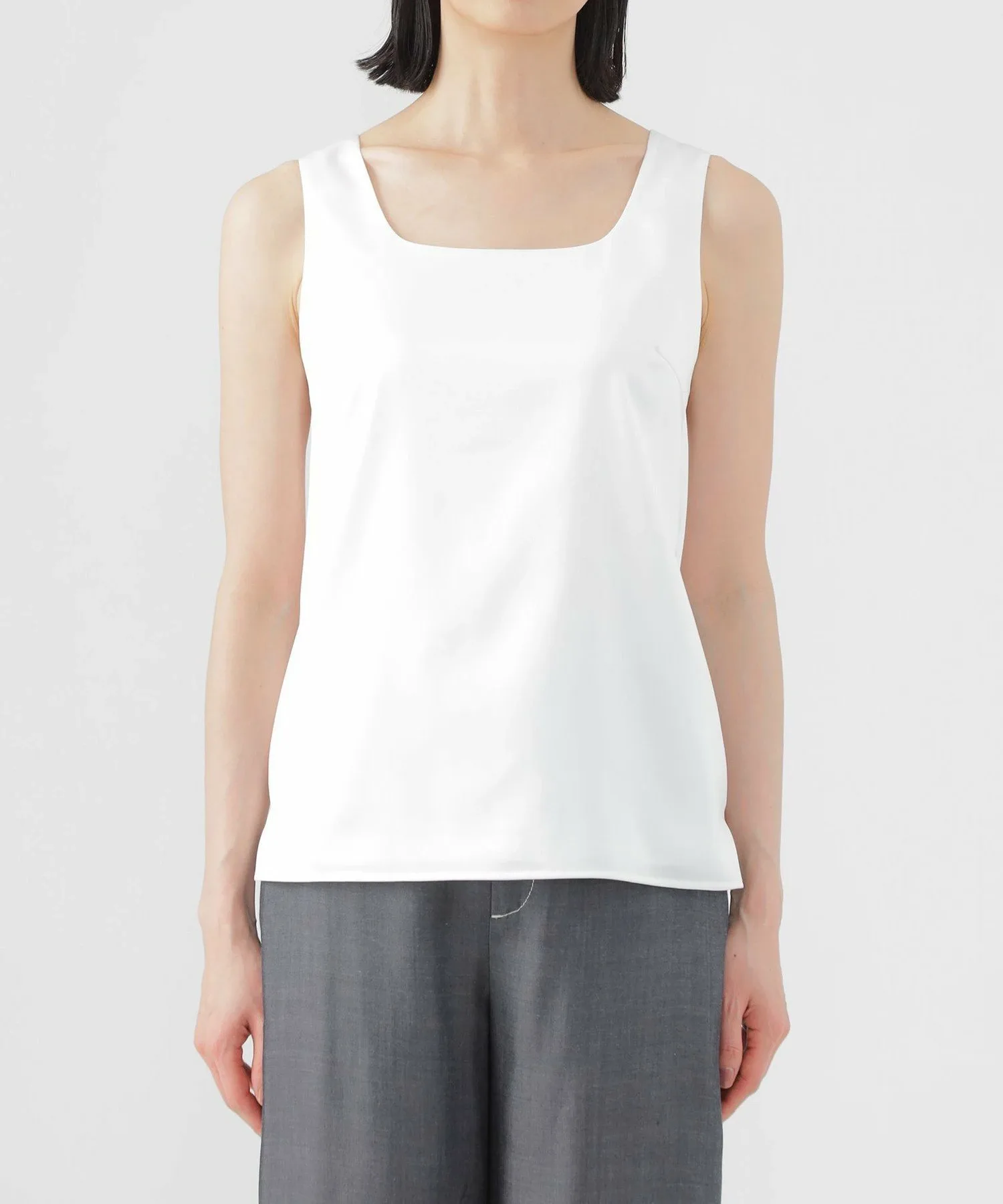 Эта майка с квадратным вырезом имеет атласную переднюю часть и гладкую ткань на спине. Передняя часть также отделана трикотажной подкладкой, а трикотажный материал, соприкасающийся с кожей, обеспечивает комфортную посадку. Эта универсальная вещь идеально подходит для всех сезонов, как на работе, так и вне ее.