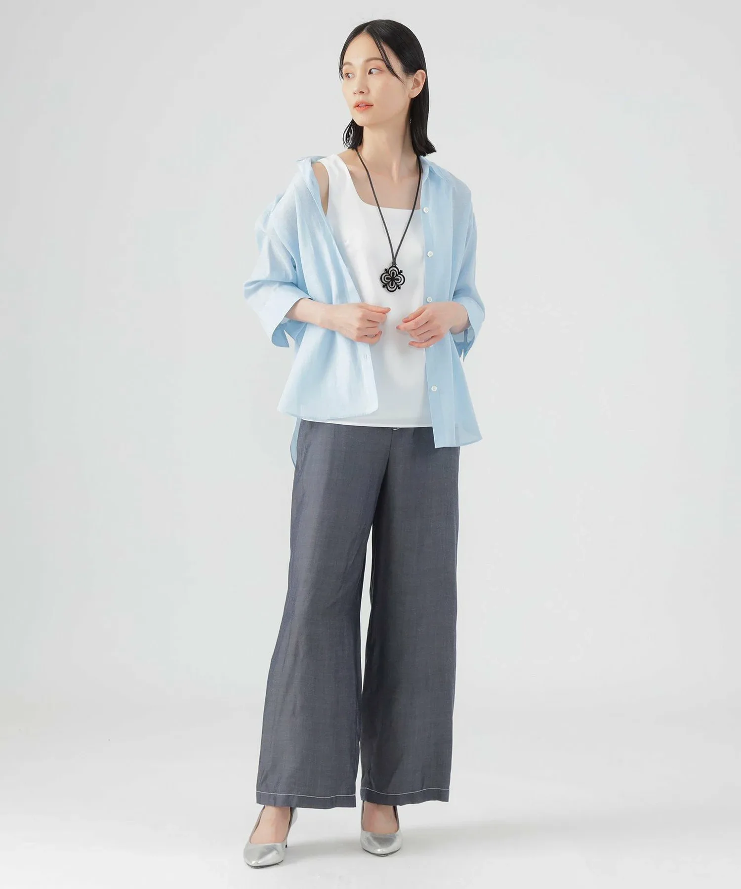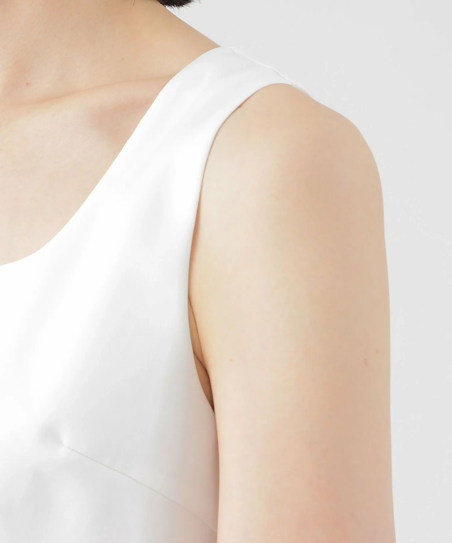 Передняя часть выполнена из атласа с плотной, объемной текстурой. Его тонкий, высококачественный блеск и эластичность делают его удобным в ношении. Спинка выполнена из трикотажной ткани, связанной из смеси волокна лиоцелла Tencel и хлопка. Мягкость и гладкая драпировка подчеркивают дизайн. Волокно лиоцелла TENCEL — это экологически чистый материал, изготовленный из древесины и целлюлозы, полученных из сертифицированных, контролируемых источников. TENCEL и TENCEL являются товарными знаками Lenzing AG.
