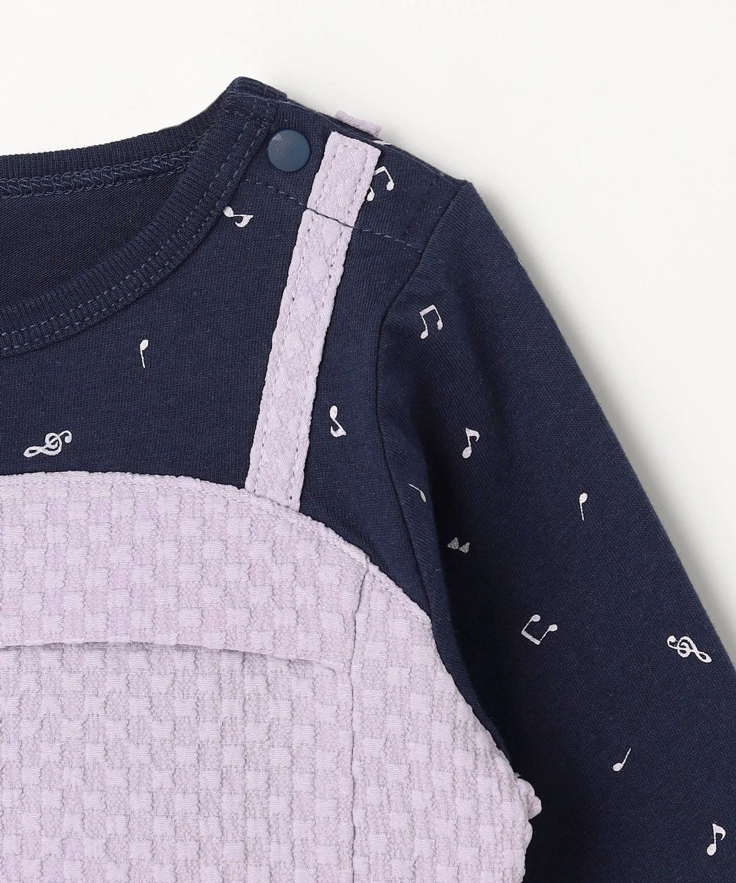 Дизайн Этот многослойный топ состоит из сшитого вручную топа, украшенного маленькими музыкальными нотками, и мягко струящейся майки.