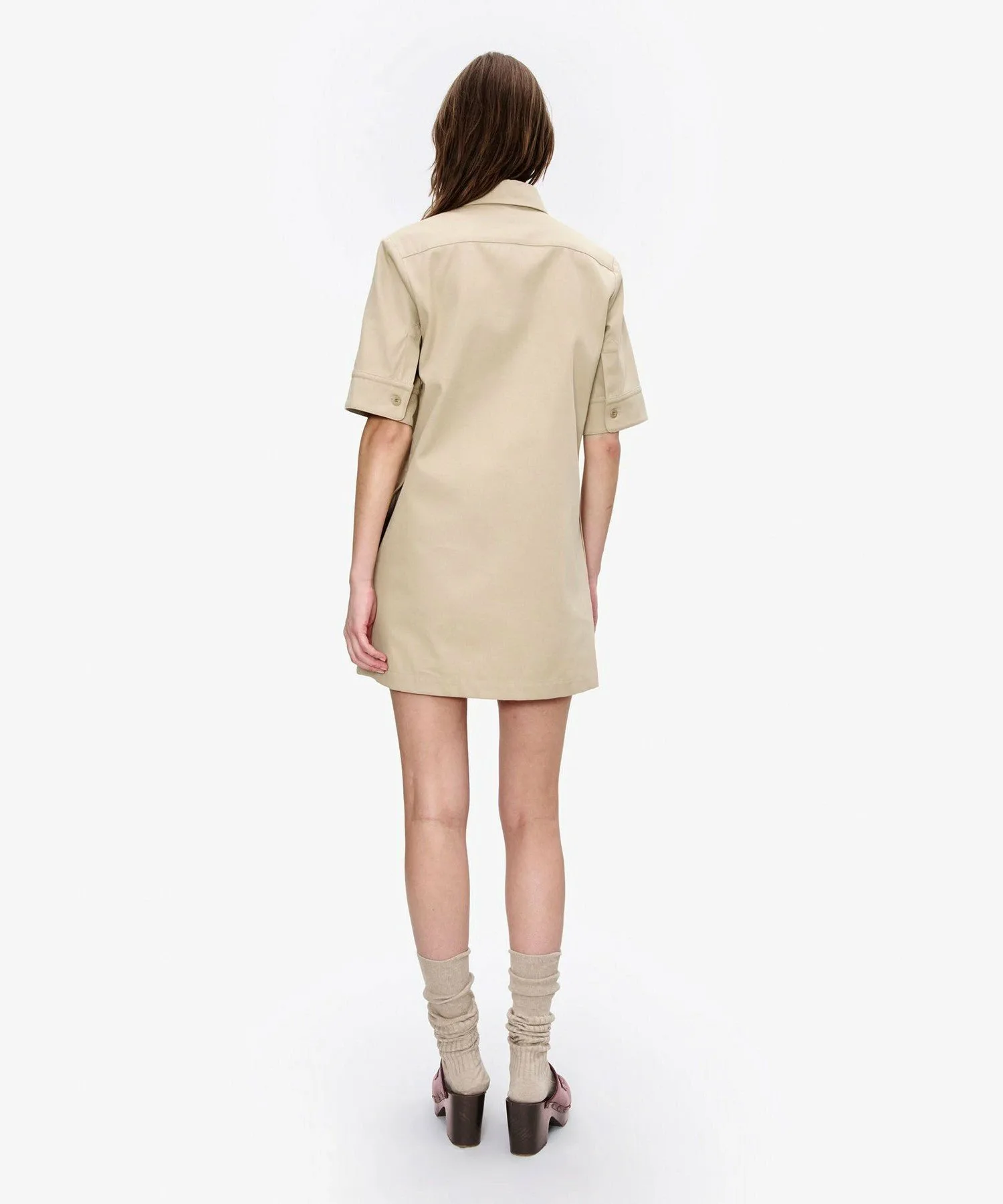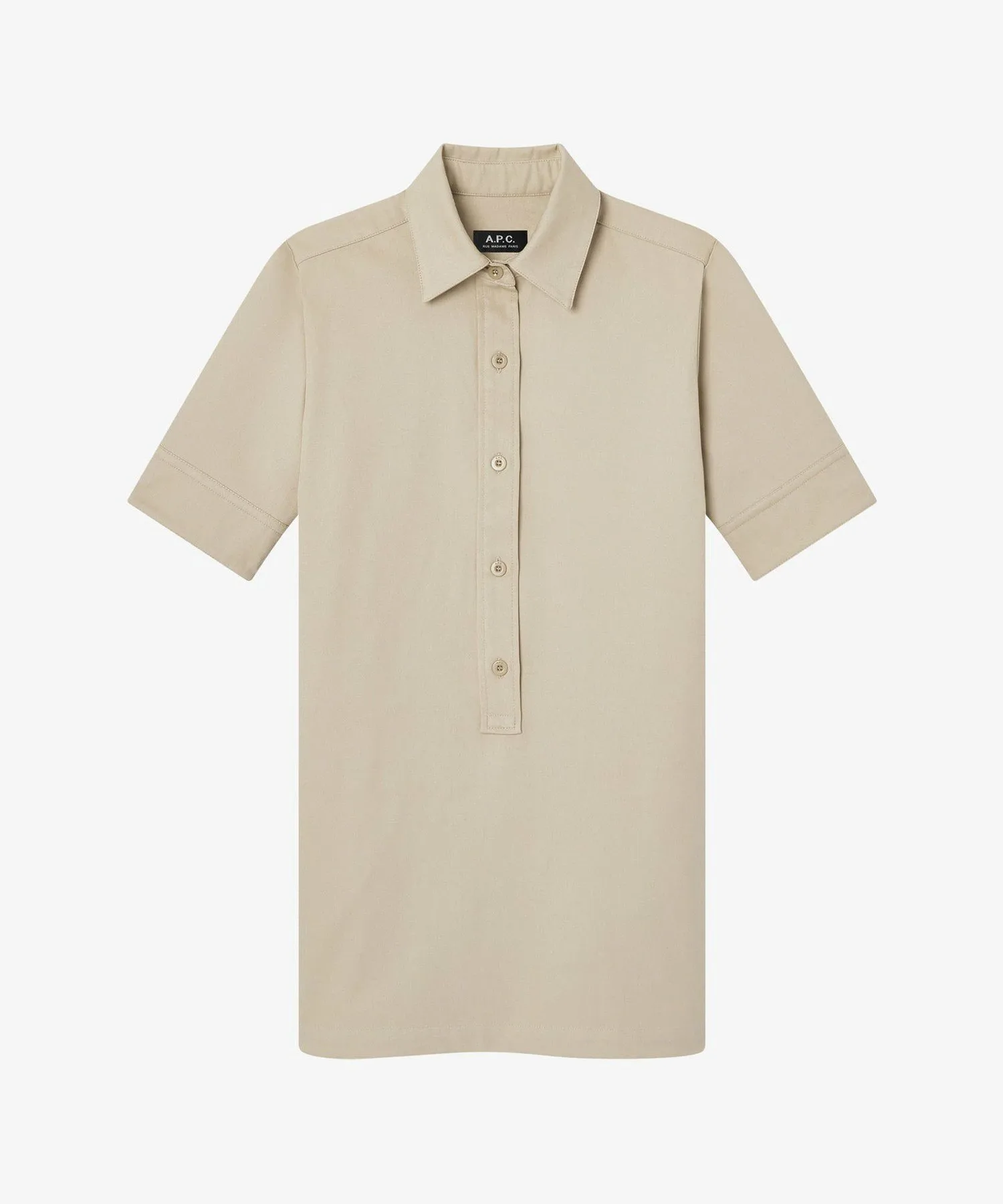 Бежевое платье из хлопкового габардина.