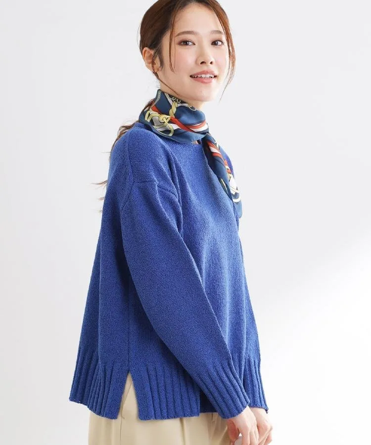 Этот длинный трикотажный топ, изготовленный из пряжи с текстурированной поверхностью, рекомендуется для сочетания с брюками, которые подчеркивают нюансы материала.