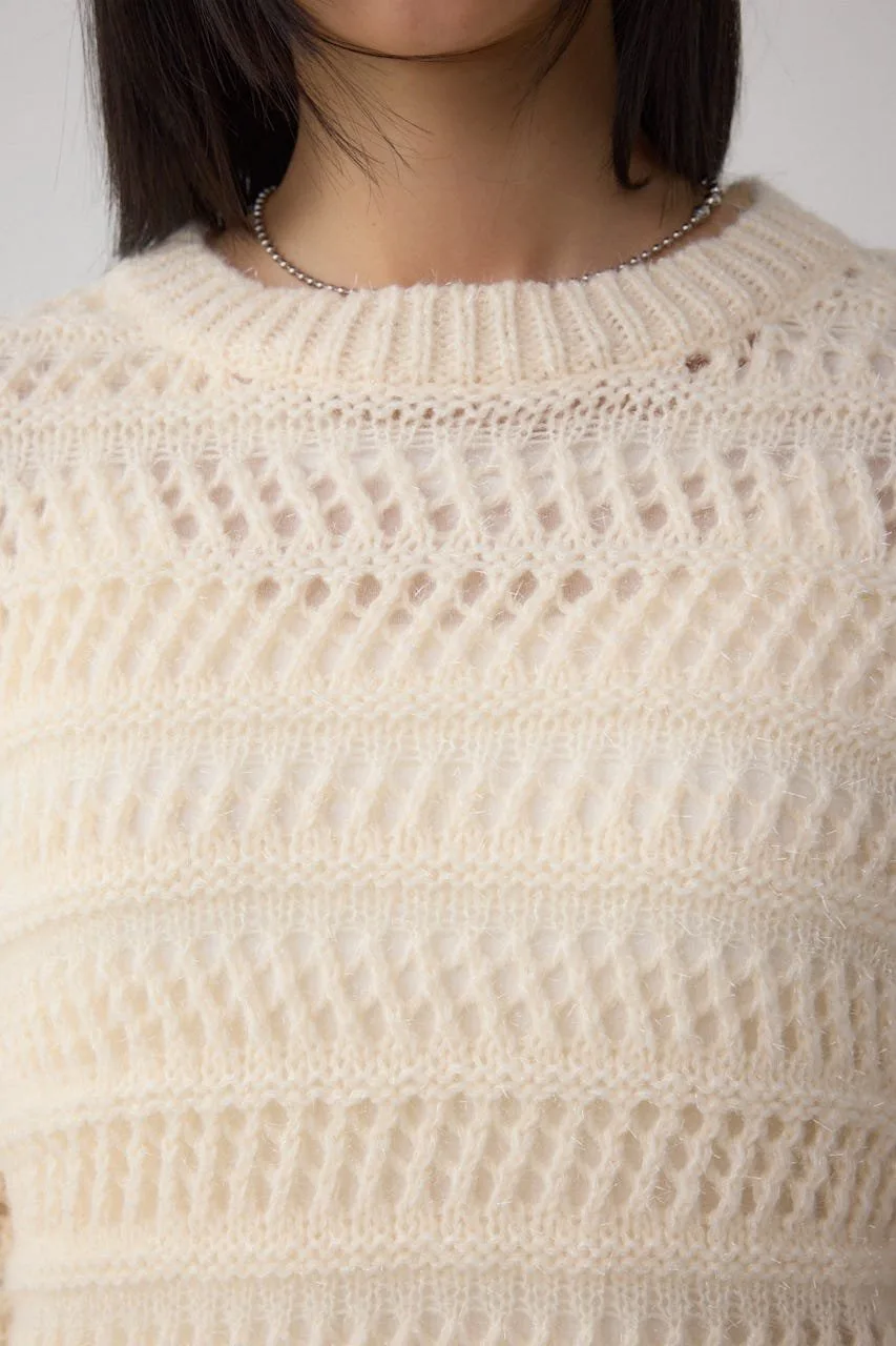 Этот трикотажный топ украшен эффектной сетчатой каймой.