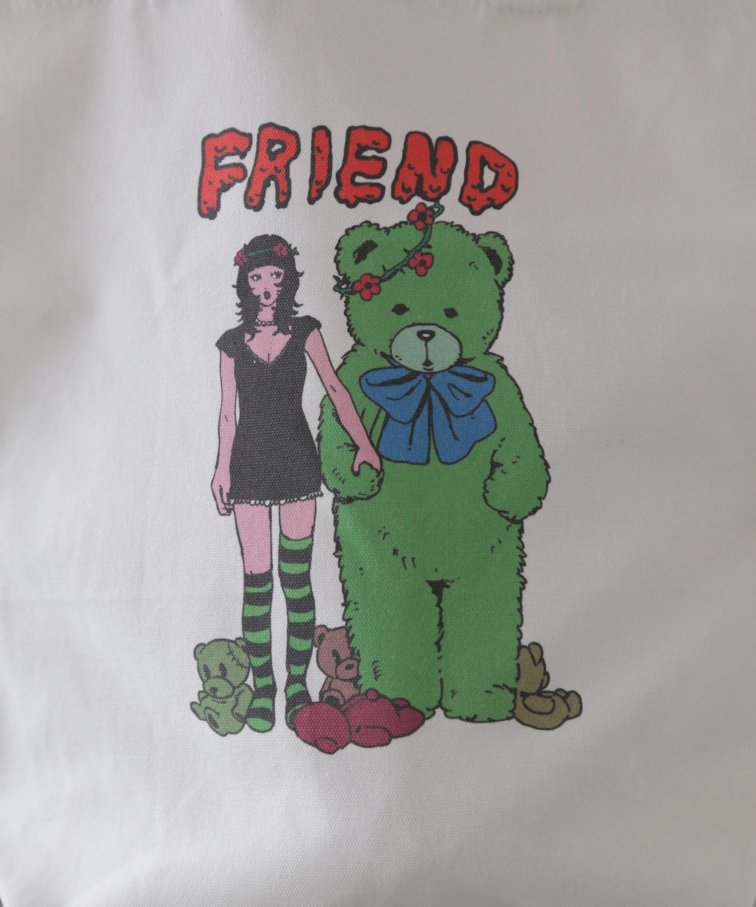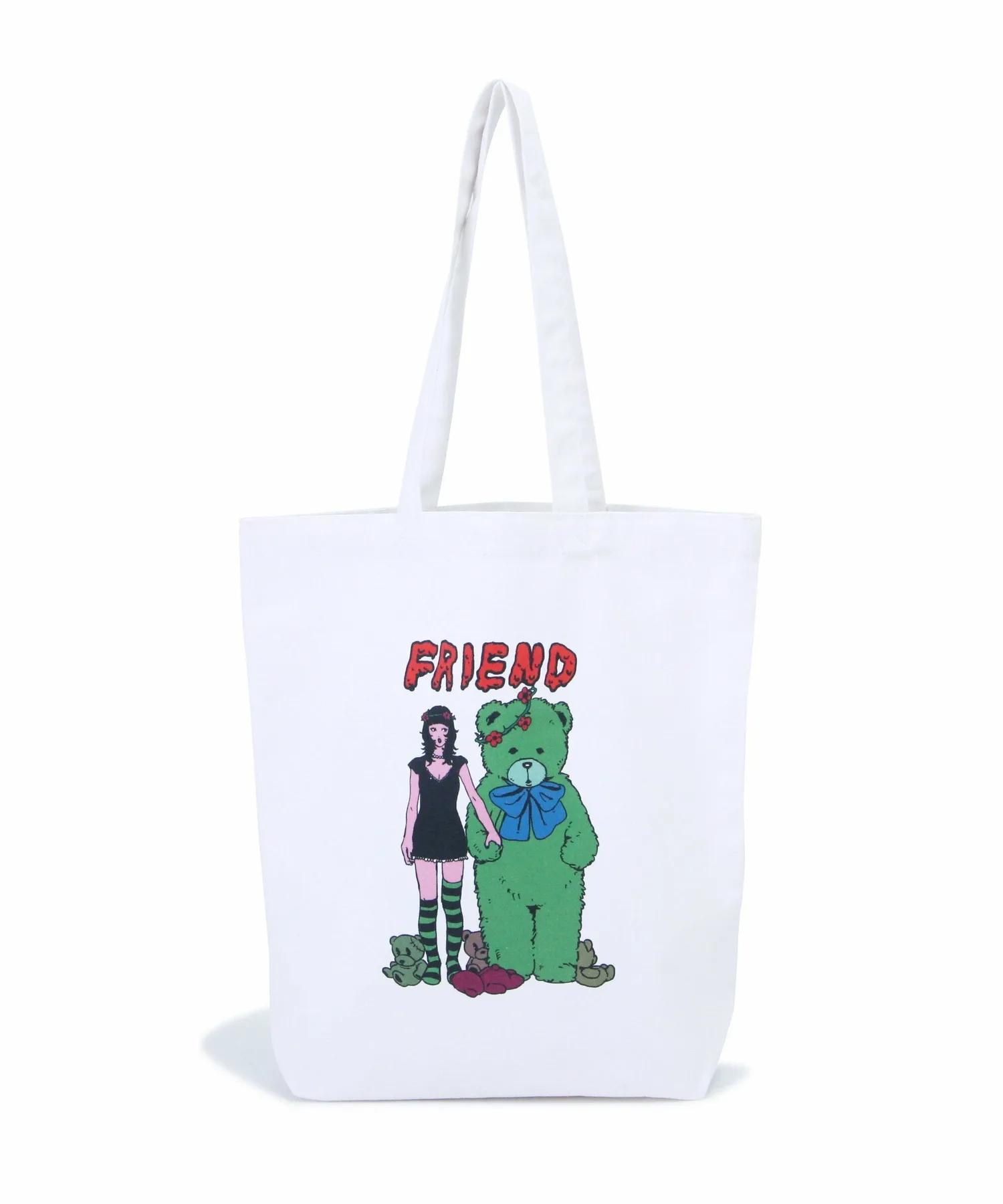 Это серия, созданная по специальному заказу совместно с иллюстратором Фурукадо. Эта сумка-шоппер "Друзья" украшена принтом с изображением девочки и медведя, нарисованных Фурукадо.