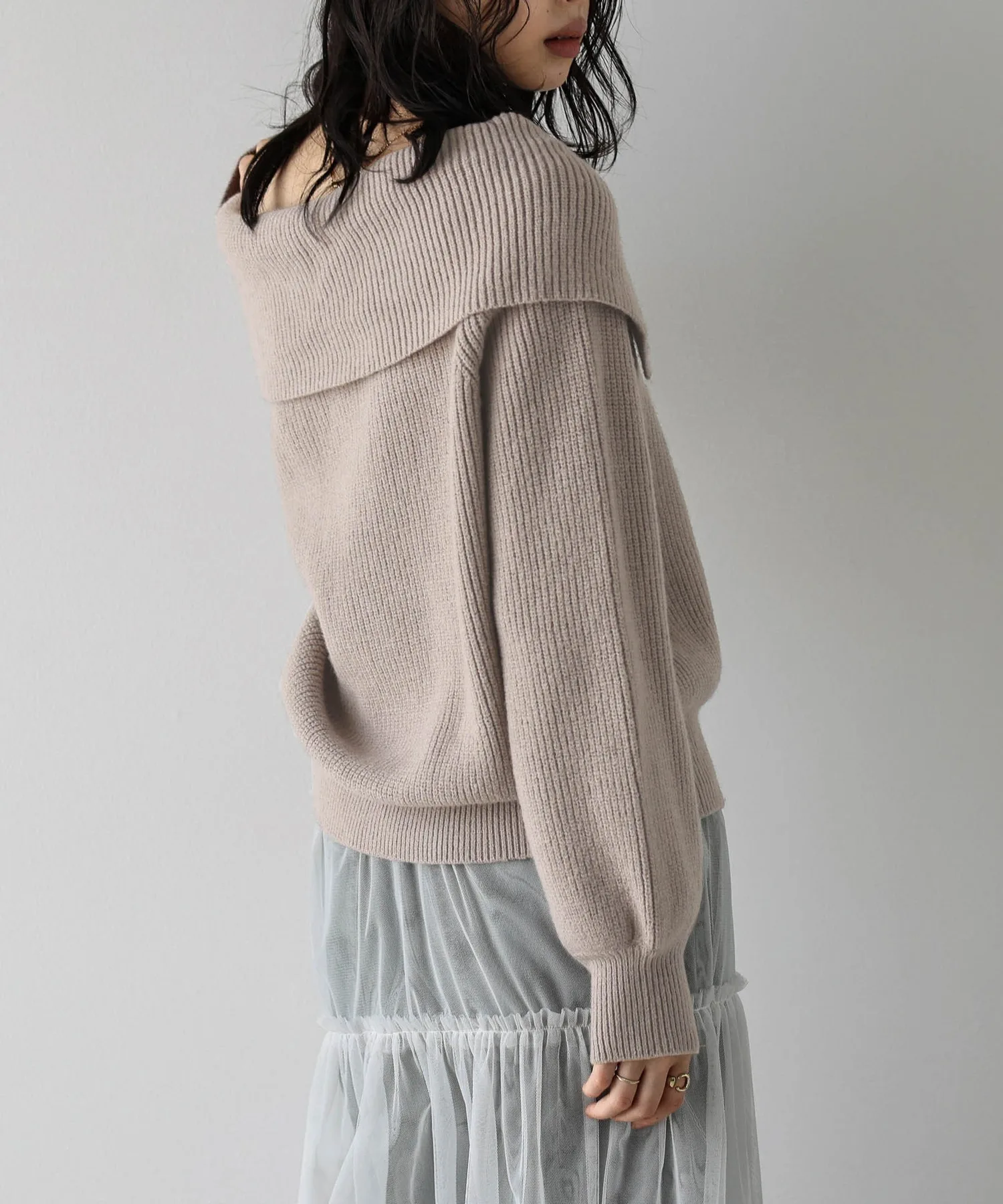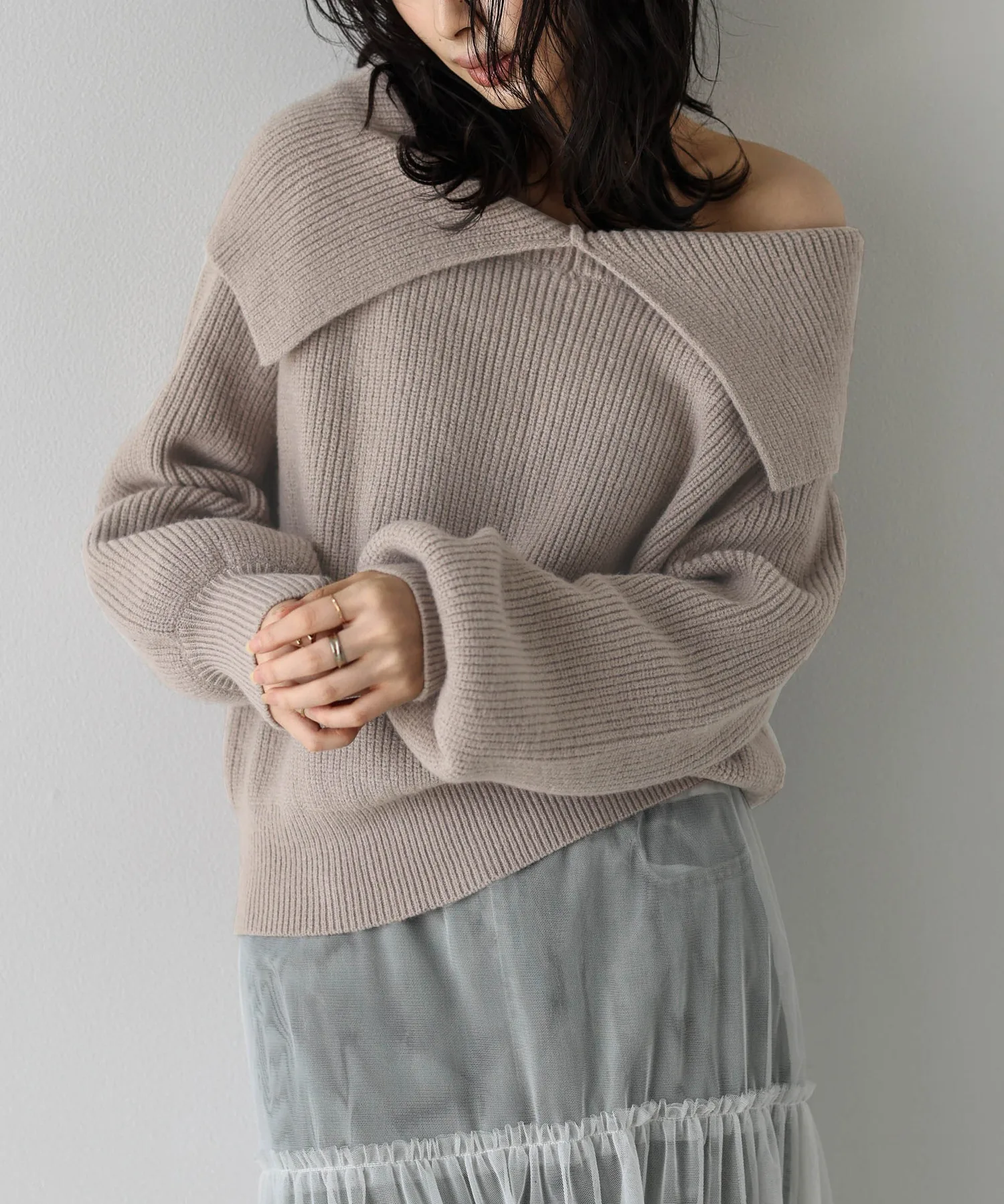 Вязаное изделие с воротником-накидкой, создающее расслабленный, взрослый образ.