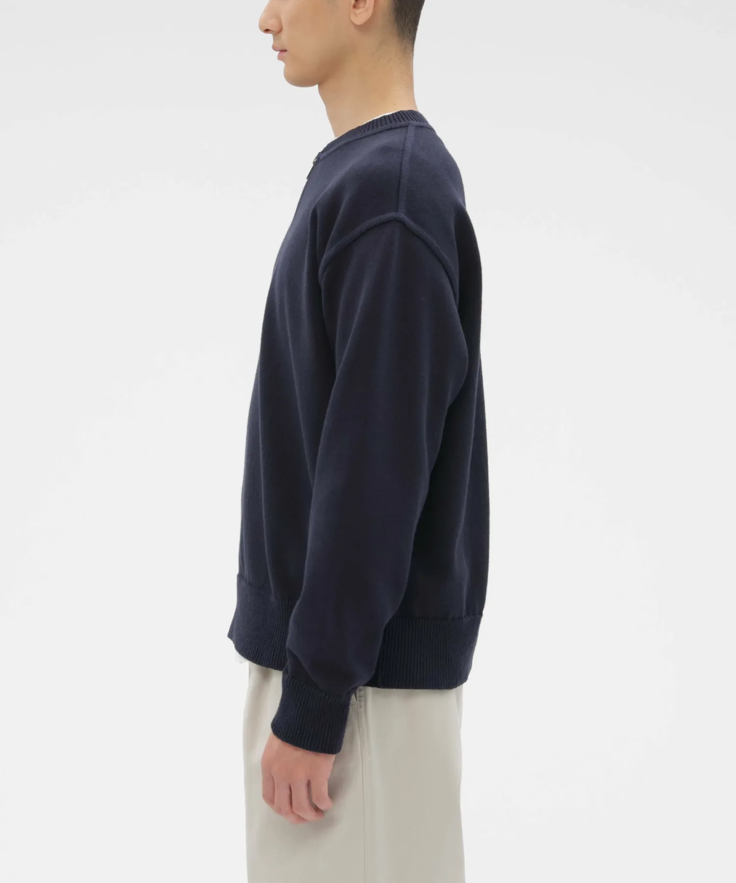 Особый трикотаж, созданный в результате нового сотрудничества с Yonetomi Seni, давним производителем трикотажной одежды из Ямагаты. Изготовленный из хлопка с лицевой стороны и переработанной полиэстерной пряжи с изнаночной, этот трикотаж с максимально плотным плетением создает материал, который одновременно сухой и прозрачный, но при этом легкий. Несмотря на среднюю плотность, он обладает плотной текстурой и спортивным видом.