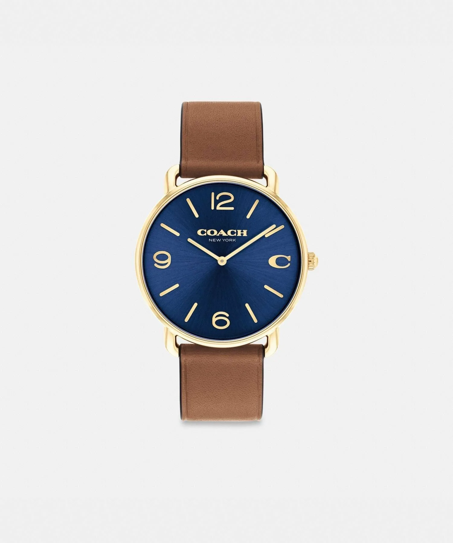 Чистые линии и современный минималистичный стиль определяют часы Elliott. Эти по-настоящему универсальные классические часы идеально подходят как для будней, так и для выходных. Они имеют круглый корпус золотистого цвета и кожаный ремешок. Циферблат украшен сочетанием цифр и штриховых меток, а также фирменным окошком даты в форме буквы «C» на отметке «3 часа».