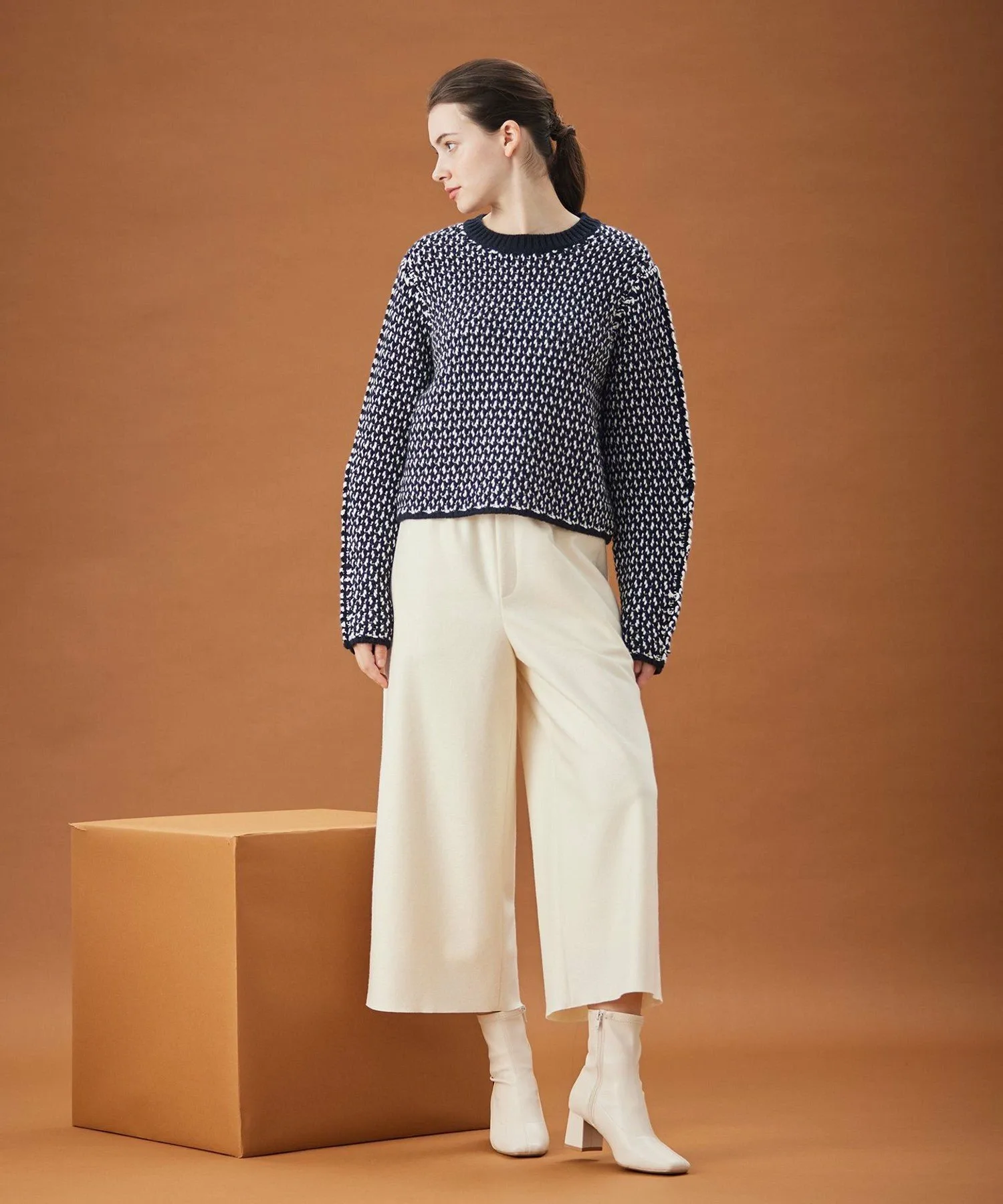 Эти укороченные широкие брюки имеют эластичный пояс. Длина создает стройный, обтекаемый силуэт в области щиколоток, и их можно сочетать как с кроссовками, так и с туфлями на каблуках, что делает их универсальным элементом гардероба.