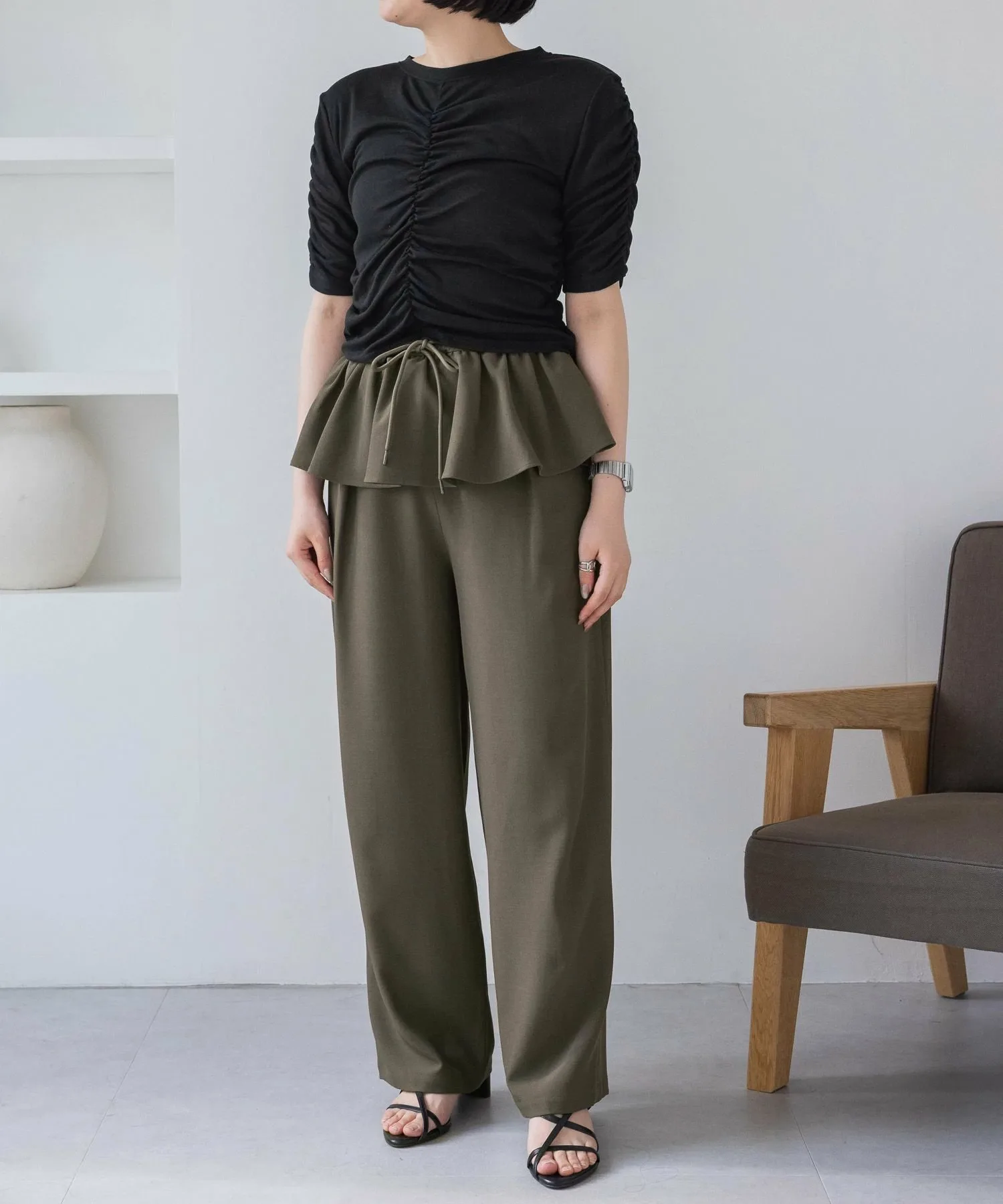 Эти брюки выглядят изысканно благодаря дизайну с оборками, которые добавляют женственности.