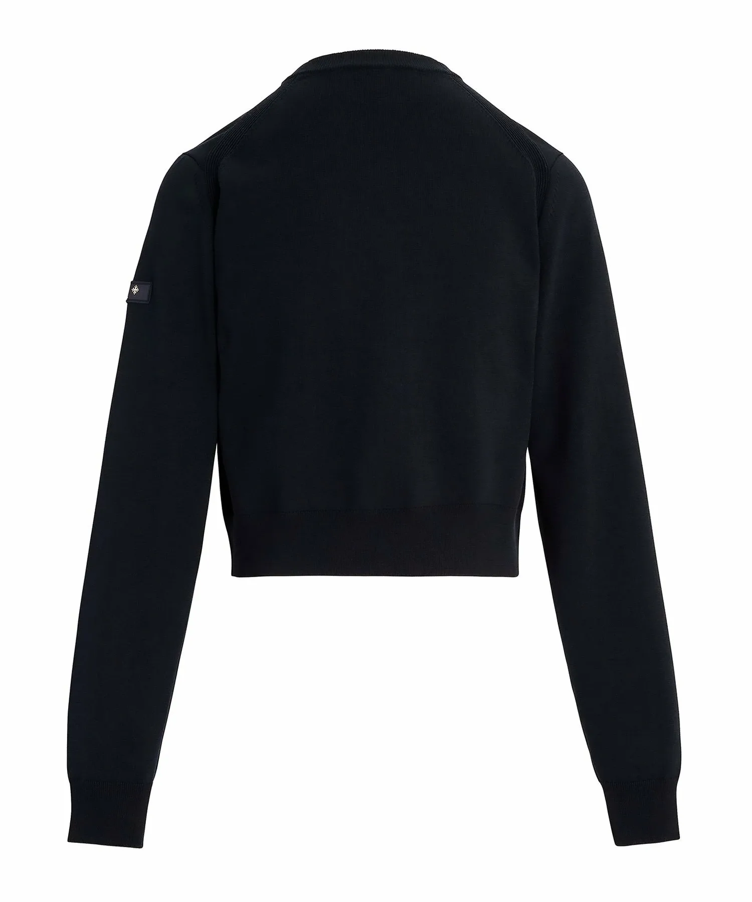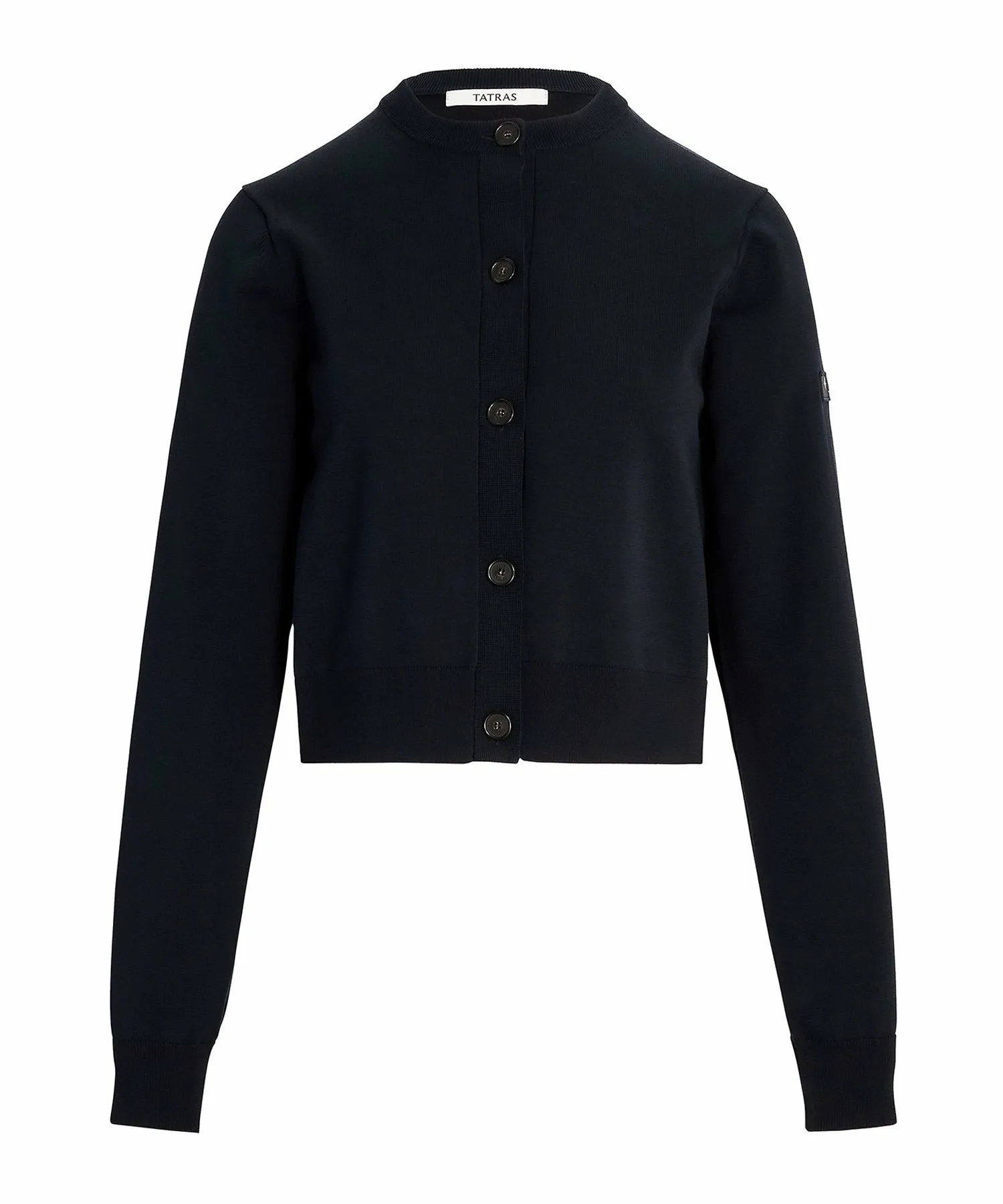 Кардиган с круглым вырезом, изготовленный из плотной хлопковой смеси.