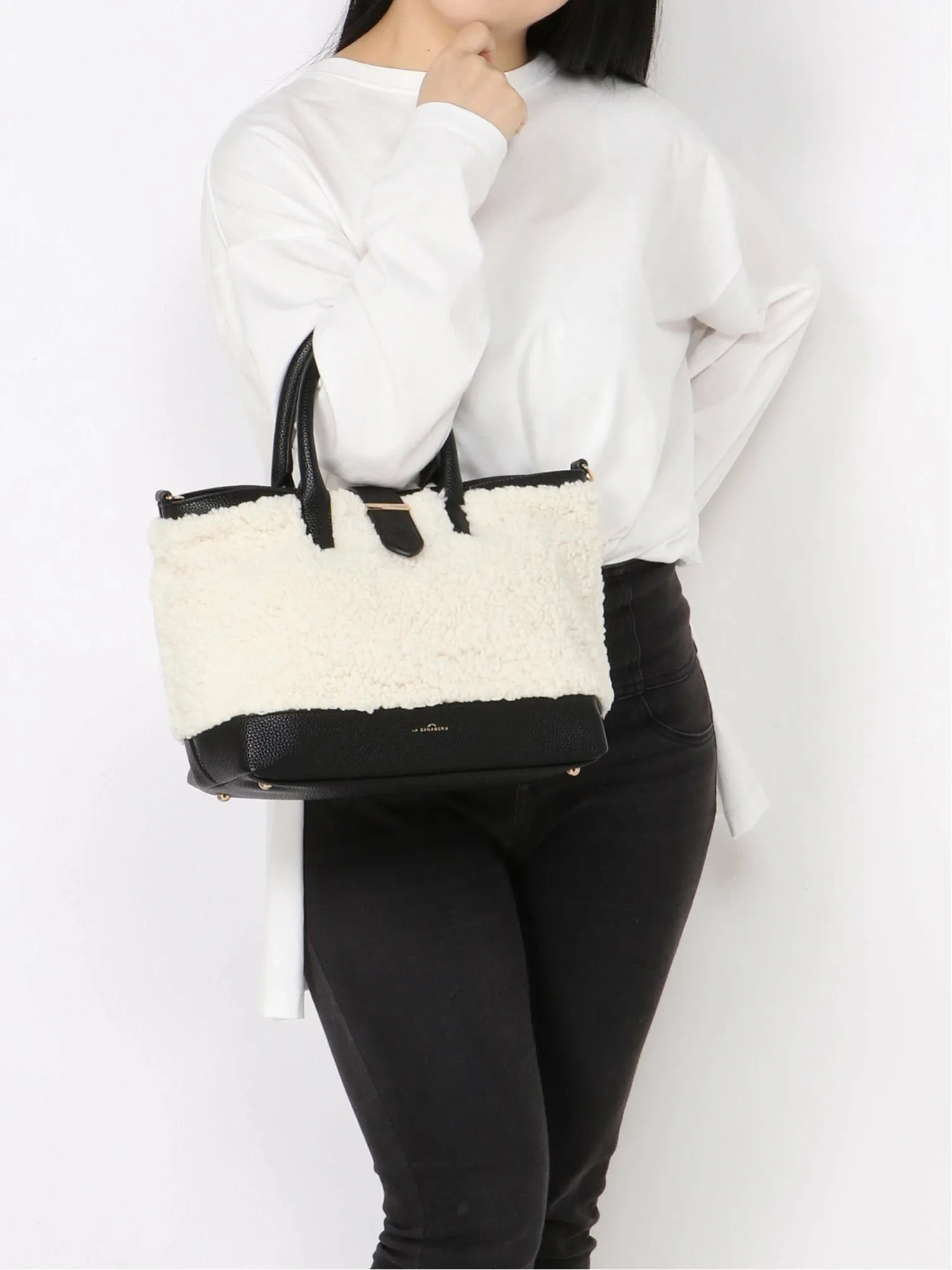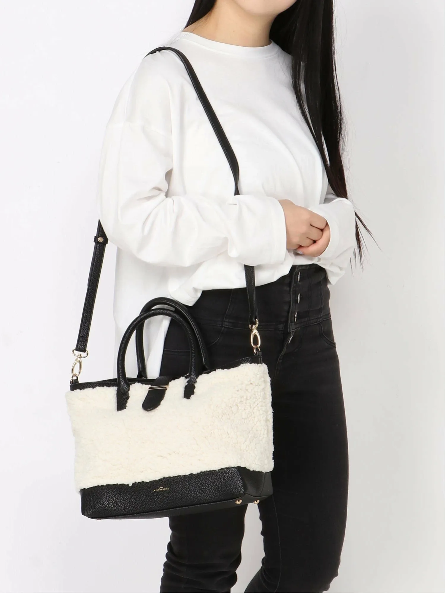 Эта сумка-тоут создает ощущение уюта и тепла благодаря пушистому материалу «боа». Застежка на ремешке с металлическими элементами обеспечивает удобный доступ к вашим вещам. Ее можно носить как с повседневной, так и с элегантной и женственной одеждой, что делает ее универсальным аксессуаром, который можно использовать в самых разных ситуациях.