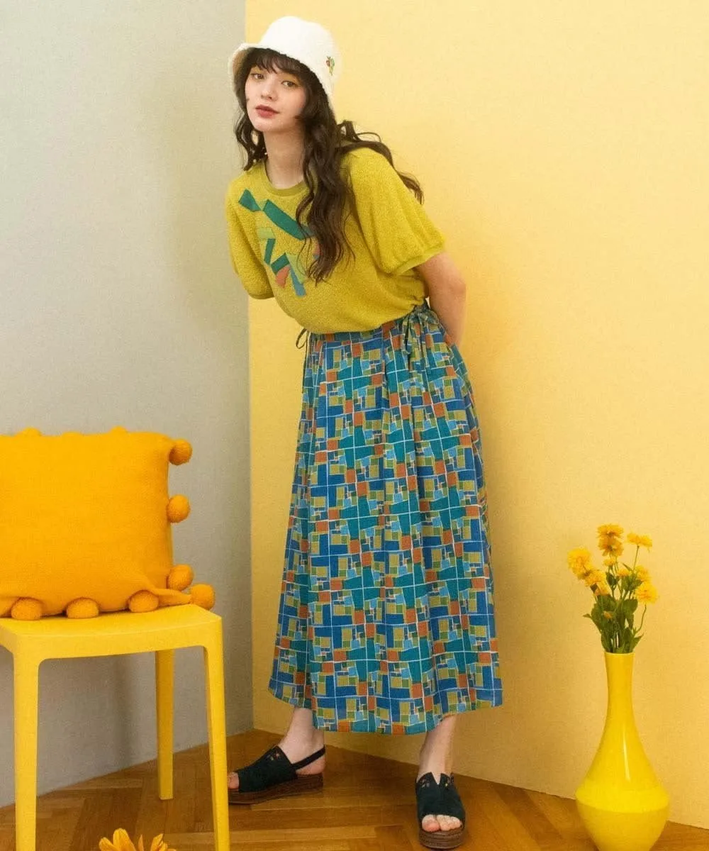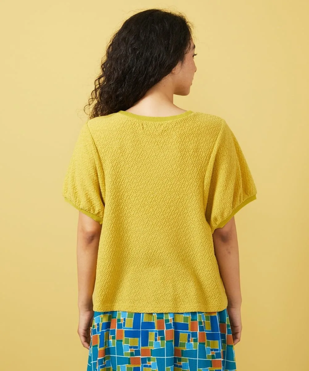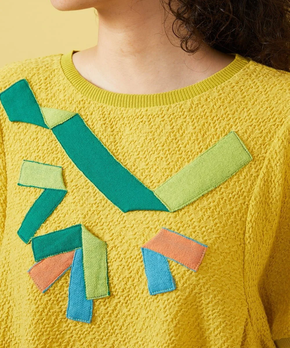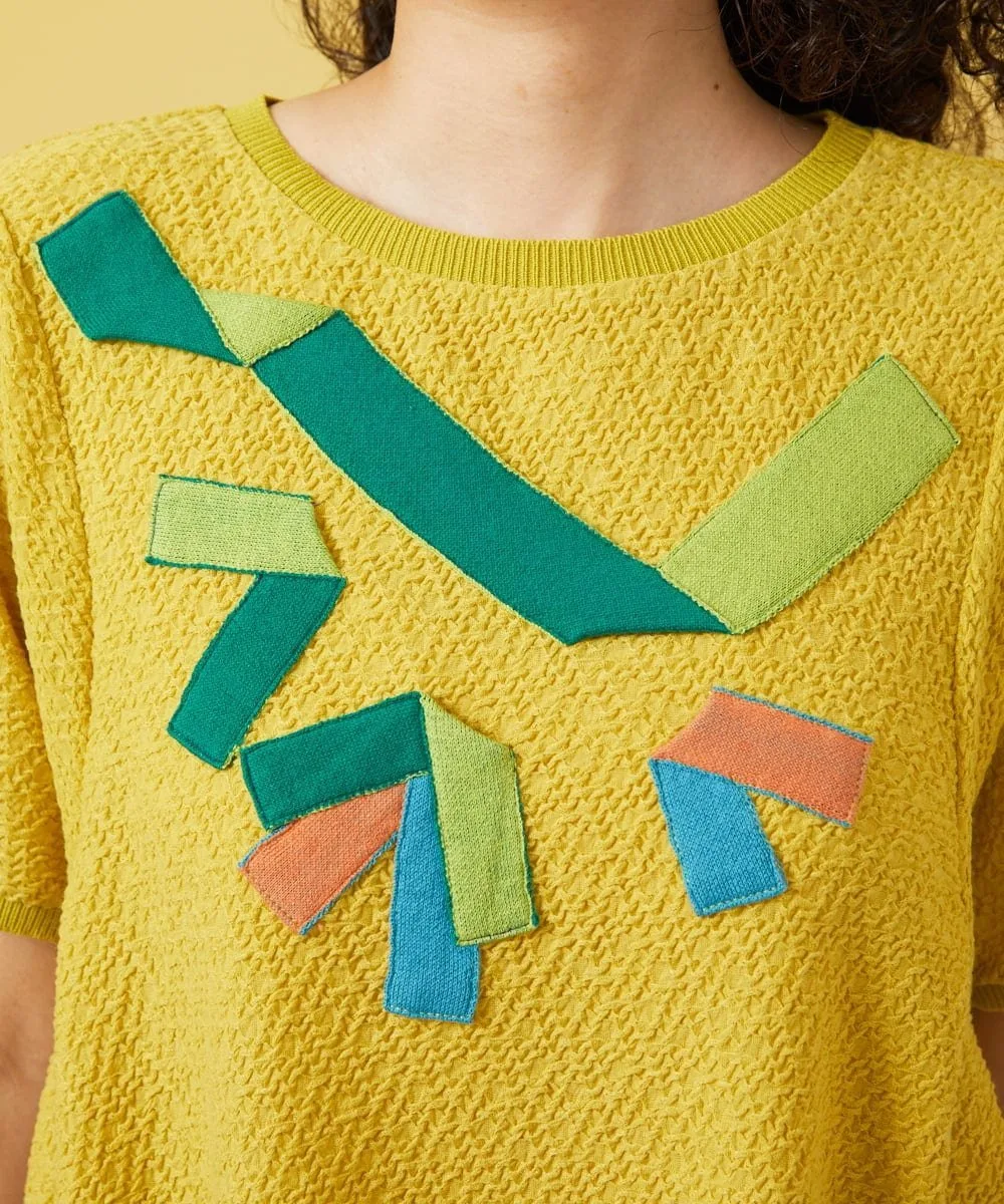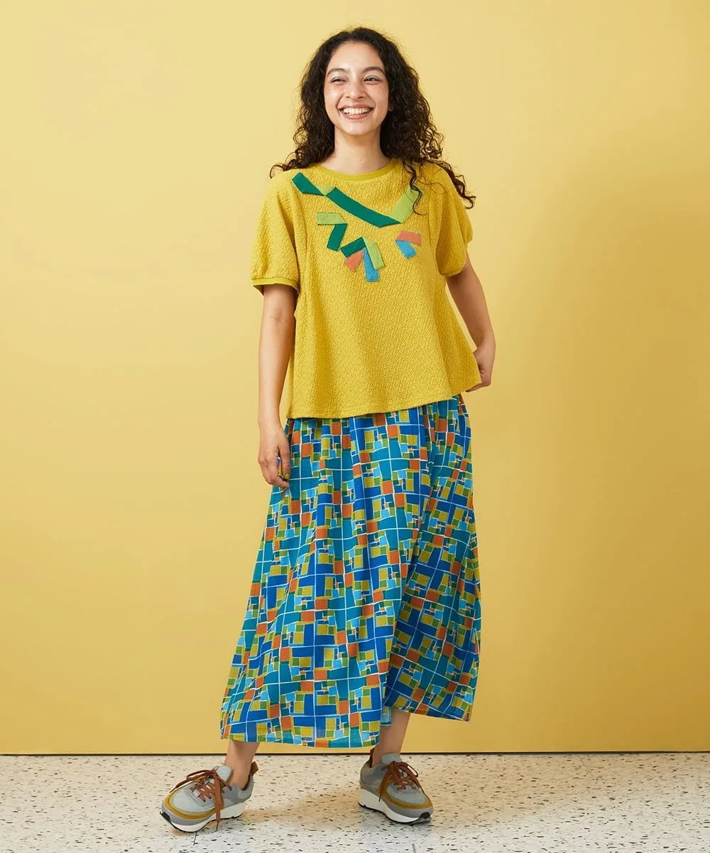 Ослепительно яркий крой. Вдохновлен темой «солнечного желтого». Свободный силуэт удобен даже в жаркие дни. В области груди присутствует трикотажный элемент в цветовой гамме, характерной для HOKOMOMORA, создающий уникальный дизайн. Мягкие рукава-фонарики придают ему зрелый и милый вид. Его можно носить как блузку, что делает его центральным элементом любого образа. Этот тщательно сшитый крой — наш лучший выбор в этом сезоне.