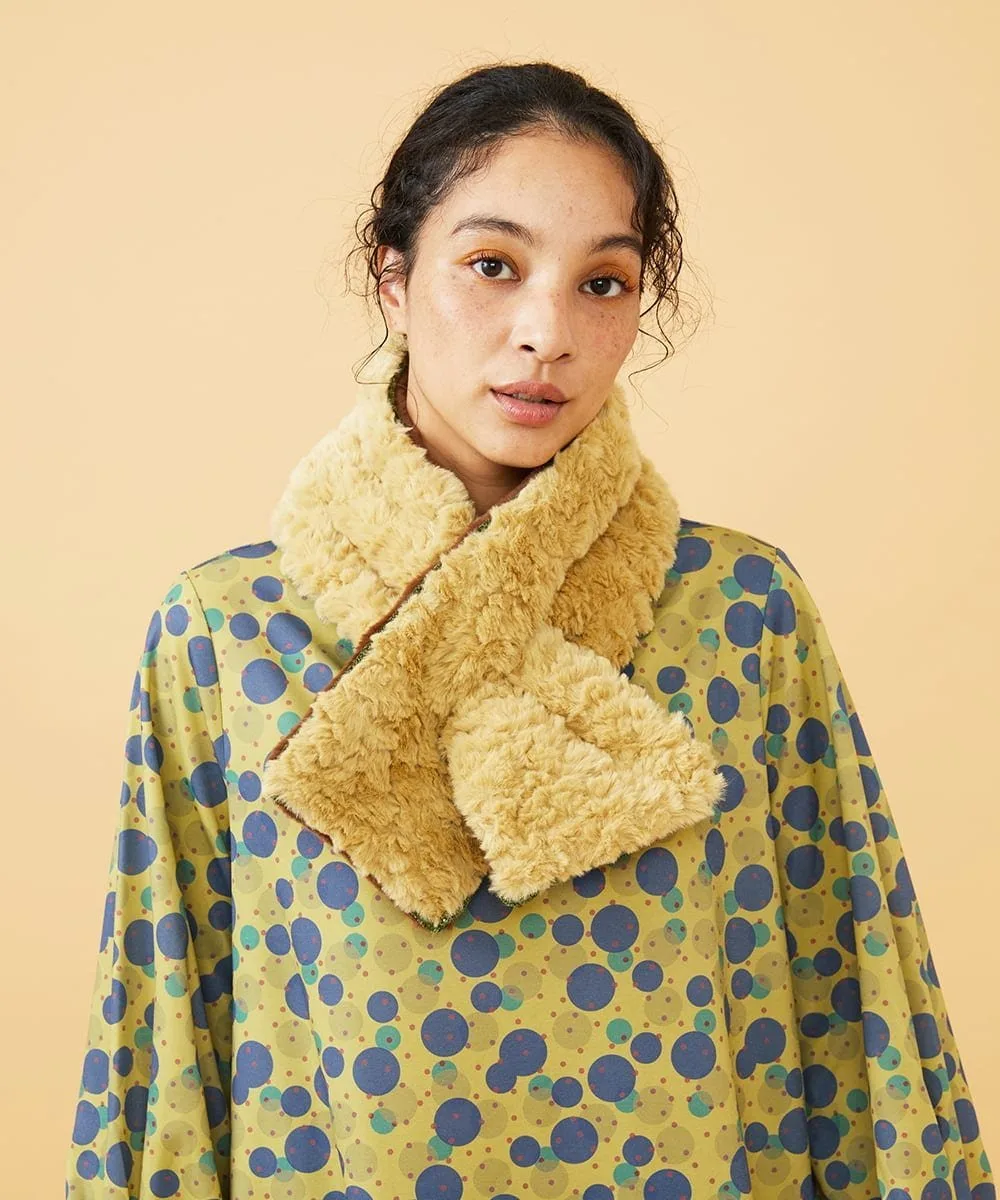 Этот накидка легко вставляется в шею и позволяет создавать различные прически. Она изготовлена из выразительного длинноворсового искусственного меха, цветовая гамма которого придает ей гладкую текстуру. Накидка двусторонняя, с разными материалами спереди и сзади. Компактный размер и оптимальная ширина, полностью облегающая шею, делают ее отличным дополнением к любой прическе. Отделка кантом подчеркивает контраст с задней частью, делая ее уникальным изделием от HOKOMOMORA.