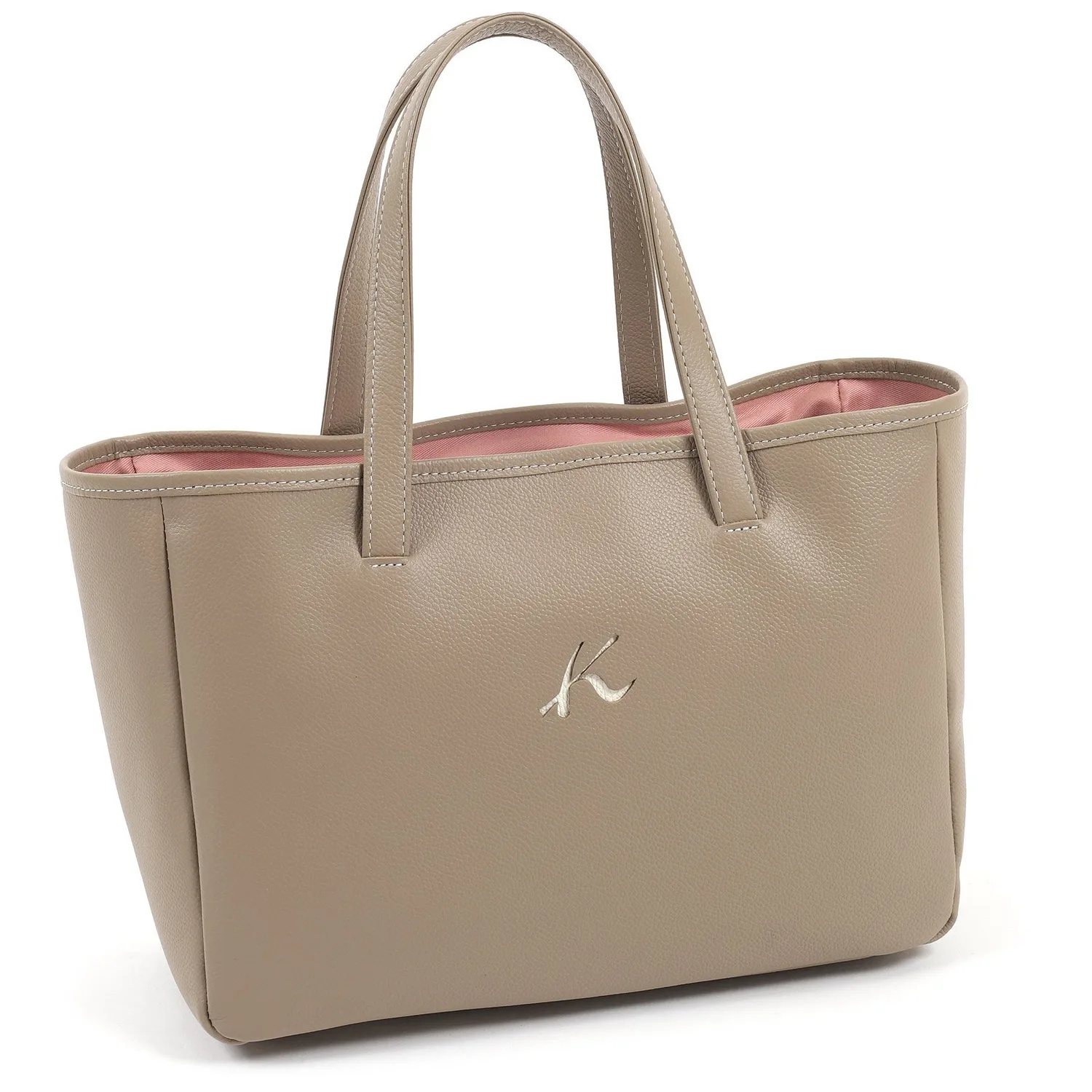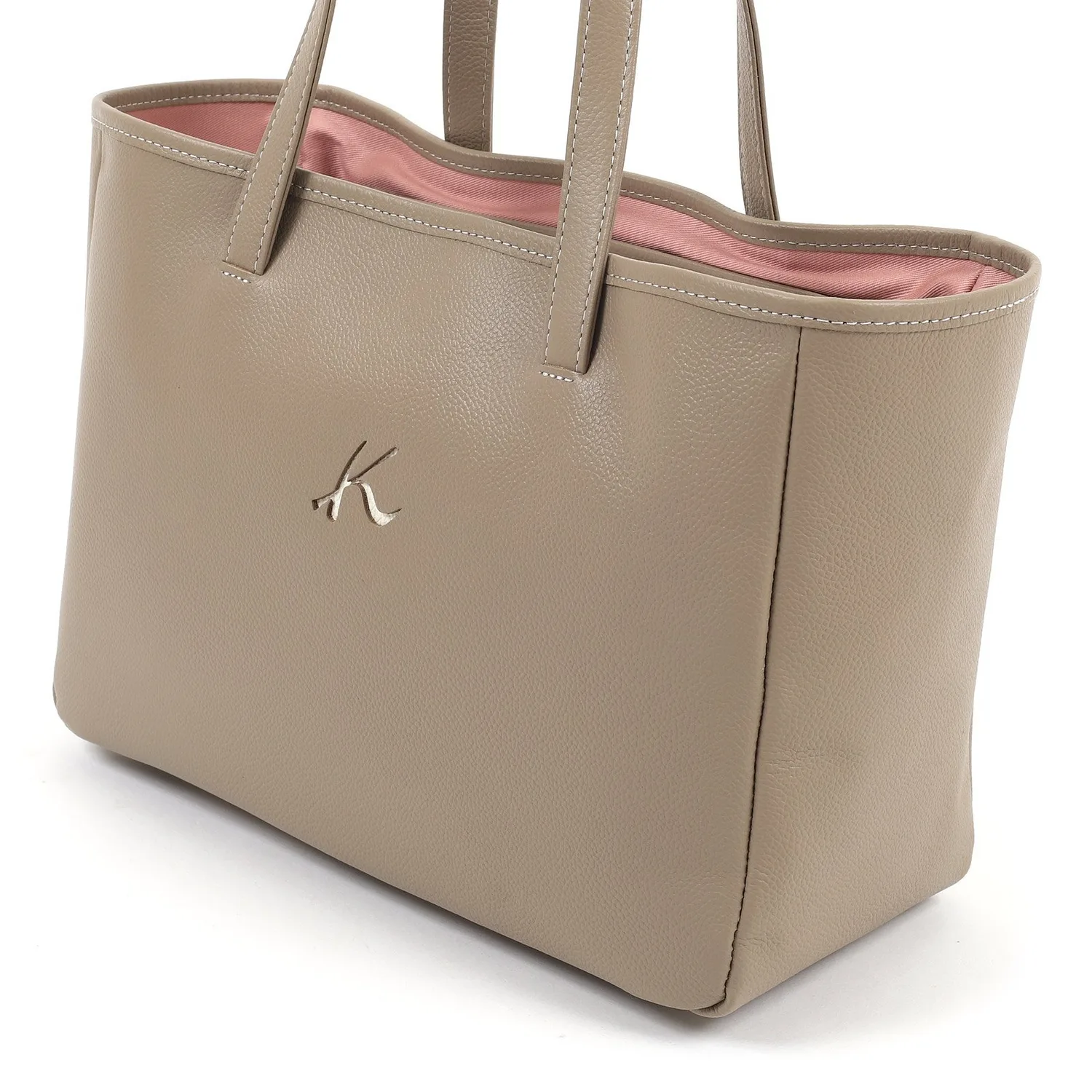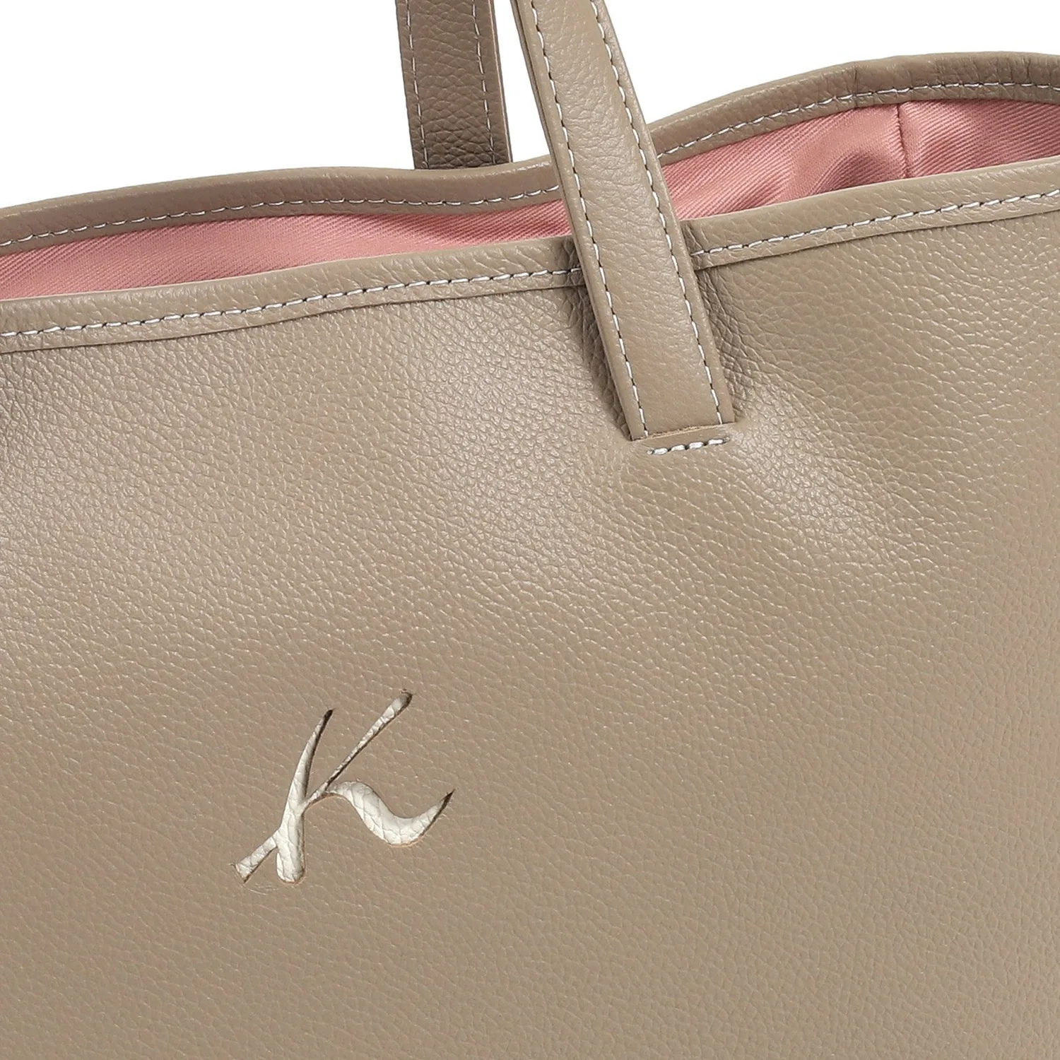 Простая сумочка с логотипом K в качестве центрального элемента. Сочетание цветов корпуса и ручек добавляет акцент. Используется тисненая термоусадочная пленка, благодаря чему царапины менее заметны, что является приятным дополнением. Также имеется множество внутренних карманов, что делает ее подходящей для повседневного использования.