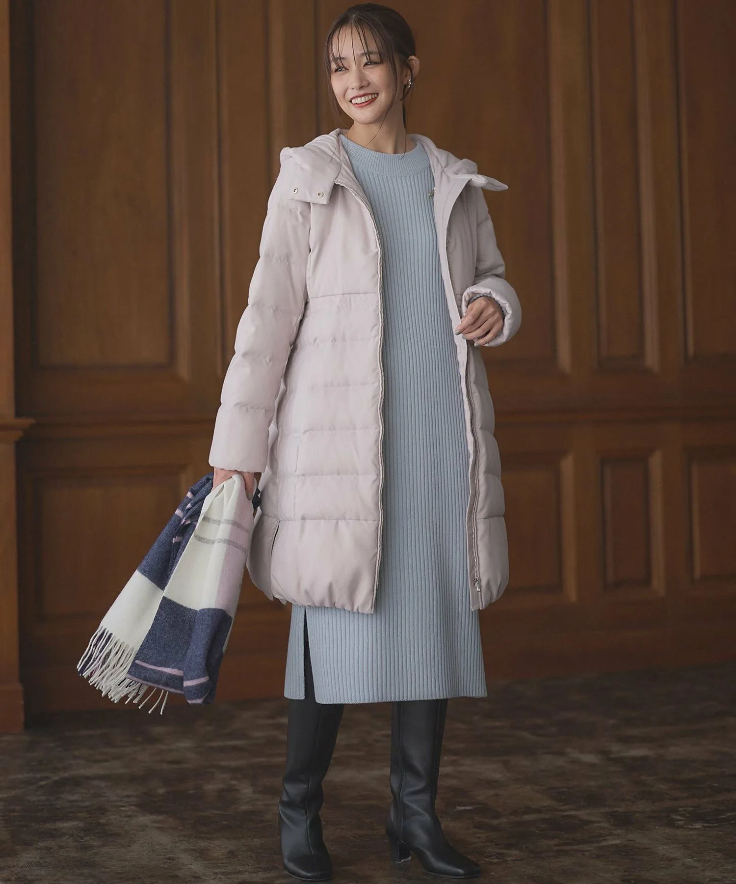Дизайн: Это длинное пуховое пальто отличается красивым силуэтом, плавно изгибающимся к талии. Верхняя часть не имеет швов, что создает плоский силуэт и придает пальто расслабленный, сдержанный вид. Горизонтальные швы, начинающиеся чуть выше талии и доходящие до низа, сужаются к талии, создавая стройнящий, привлекательный силуэт. Длина комфортно закрывает бедра, обеспечивая исключительное тепло. Расстегивание боковой молнии, как разрез, позволяет создать обтекаемый силуэт поверх расклешенной юбки и обеспечивает свободу движений. Это пальто разработано с учетом как эстетики, так и функциональности. Трехмерный капюшон, обволакивающий лицо, создает эффект стройности. Простой дизайн свидетельствует о внимании к деталям. Легкость сочетания с другими элементами гардероба также является привлекательным преимуществом.