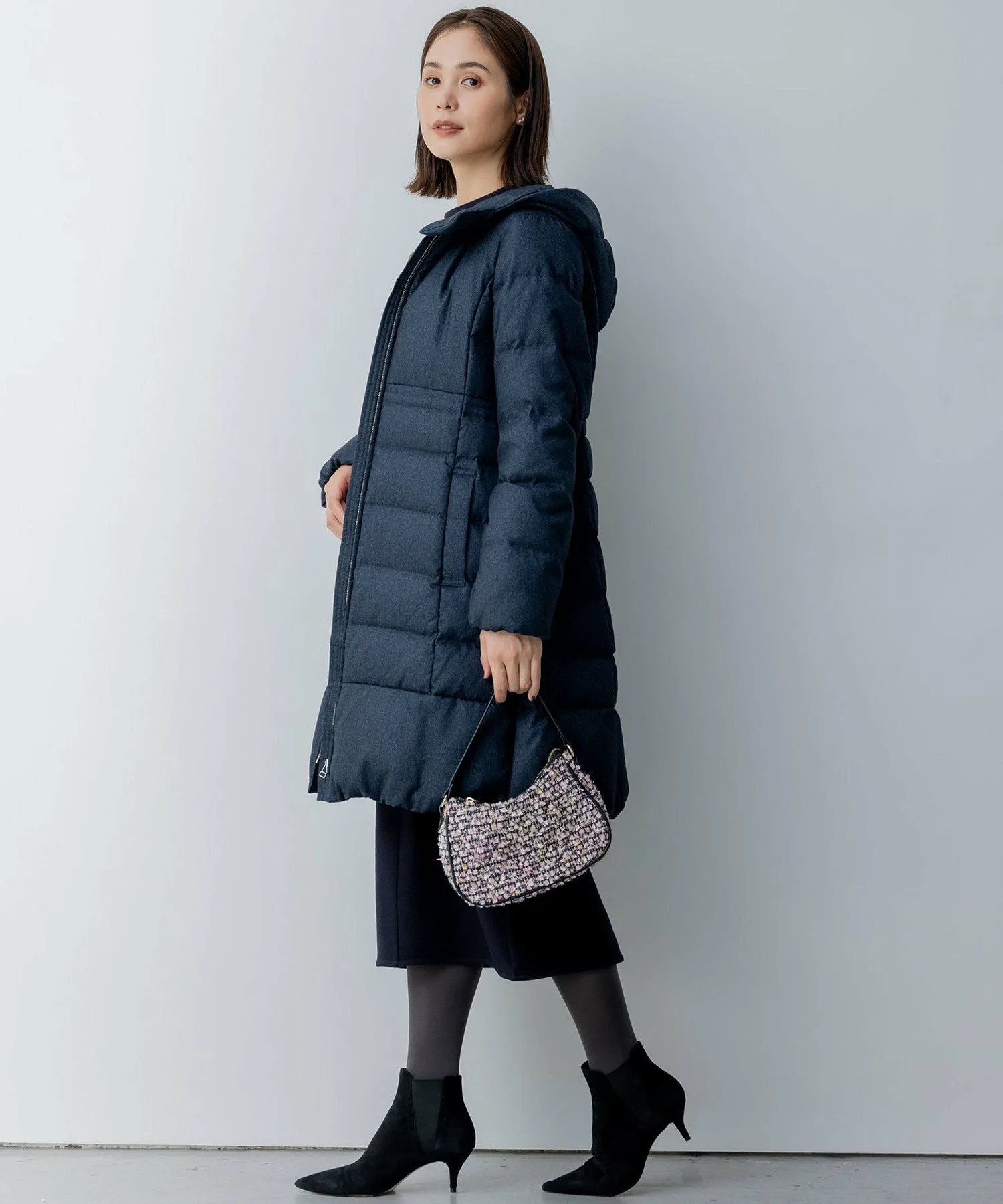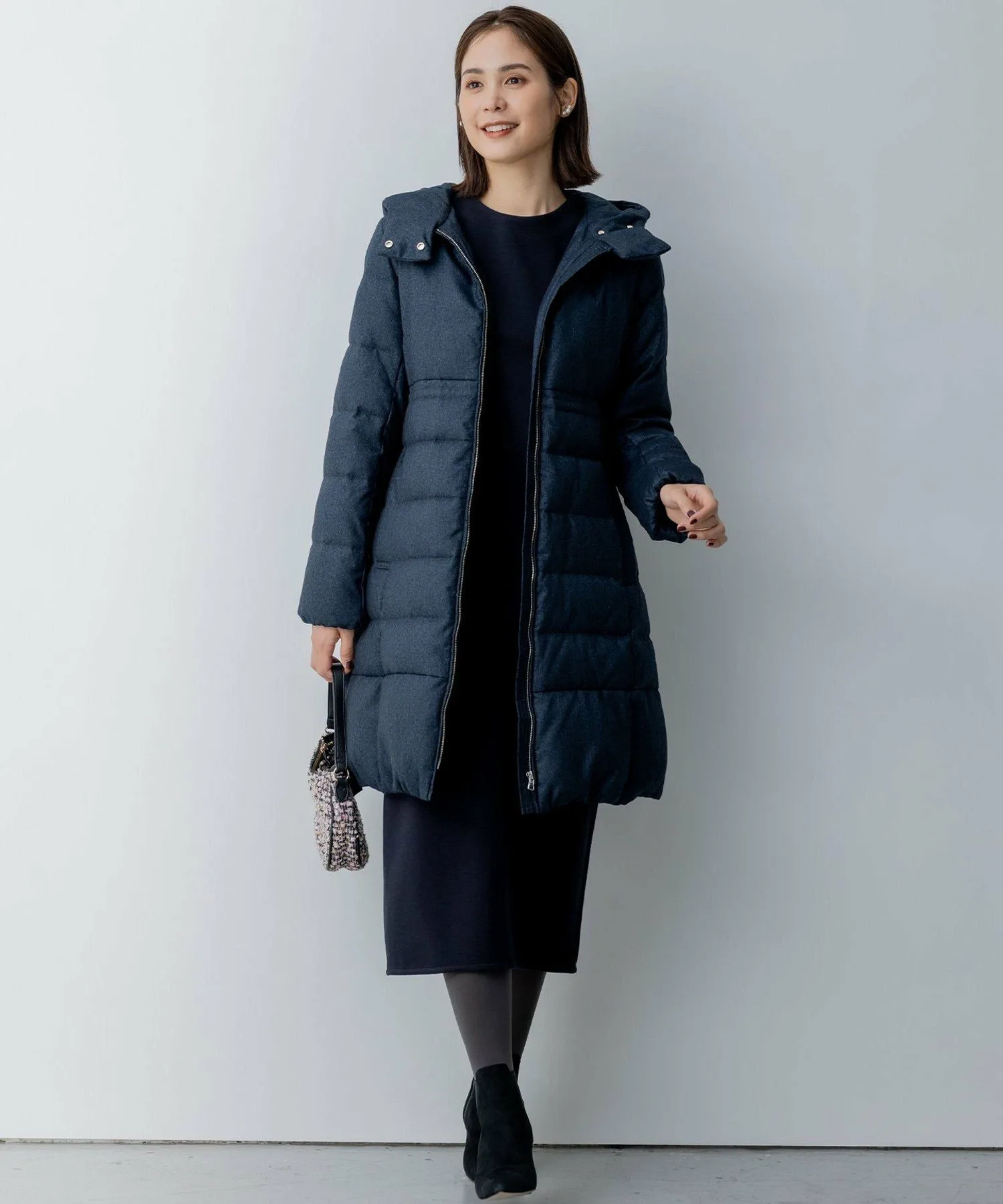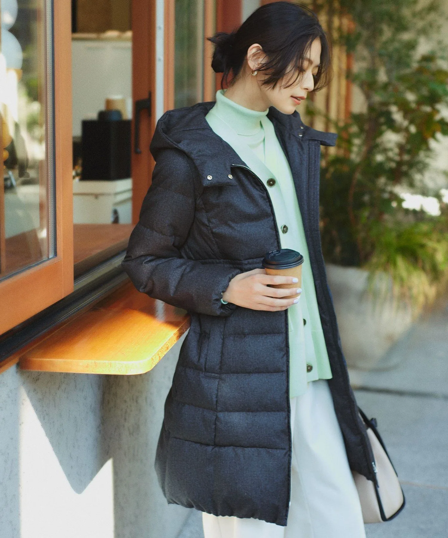 Дизайн: Это длинное пуховое пальто отличается красивым силуэтом, плавно изгибающимся к талии. Верхняя часть не имеет швов, что создает плоский силуэт и придает пальто расслабленный, сдержанный вид. Горизонтальные швы, начинающиеся чуть выше талии и доходящие до низа, сужаются к талии, создавая стройнящий, привлекательный силуэт. Длина комфортно закрывает бедра, обеспечивая исключительное тепло. Расстегивание боковой молнии, как разрез, позволяет создать обтекаемый силуэт поверх расклешенной юбки и обеспечивает свободу движений. Это пальто разработано с учетом как эстетики, так и функциональности. Трехмерный капюшон, обволакивающий лицо, создает эффект стройности. Простой дизайн свидетельствует о внимании к деталям. Легкость сочетания с другими элементами гардероба также является привлекательным преимуществом.