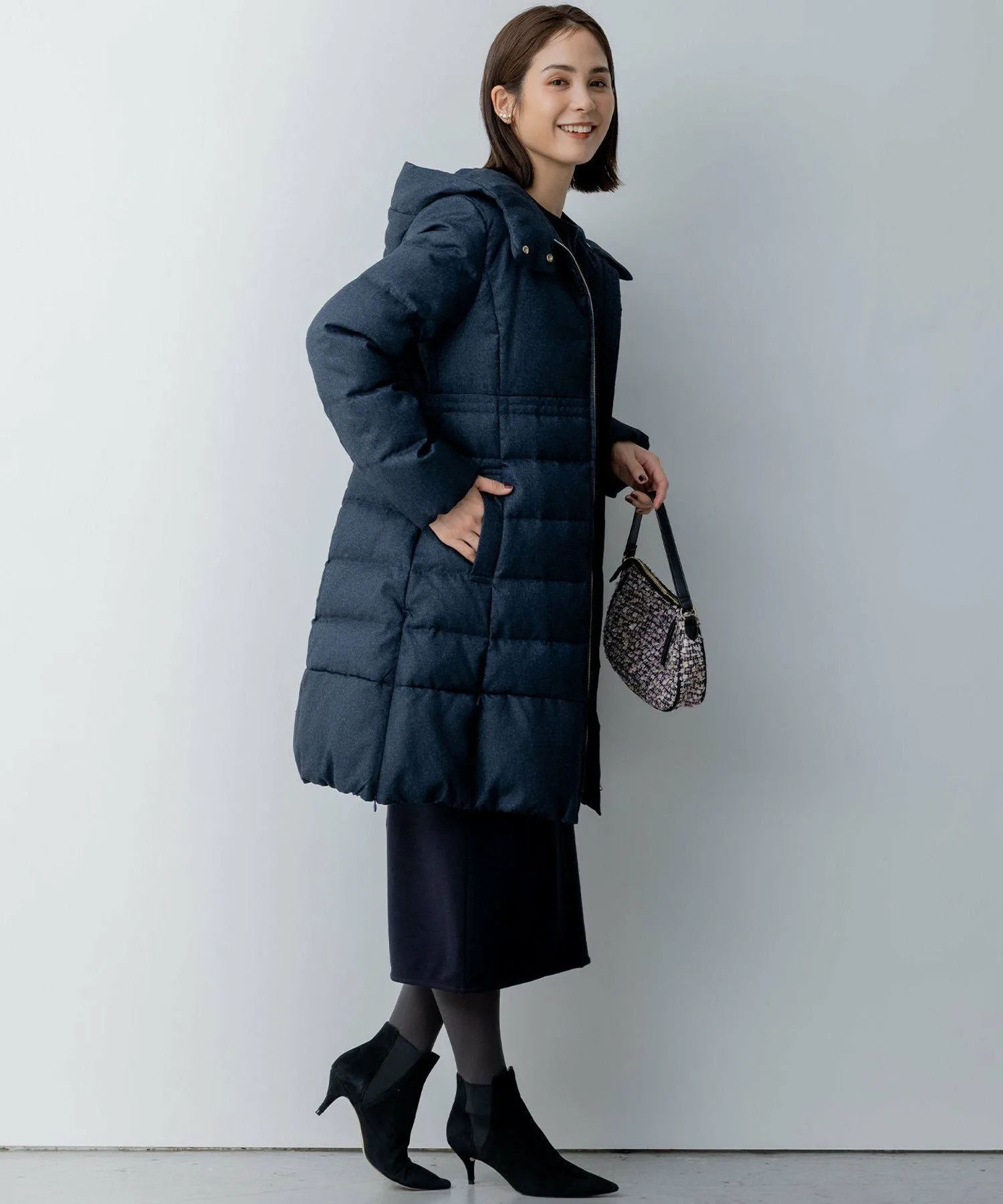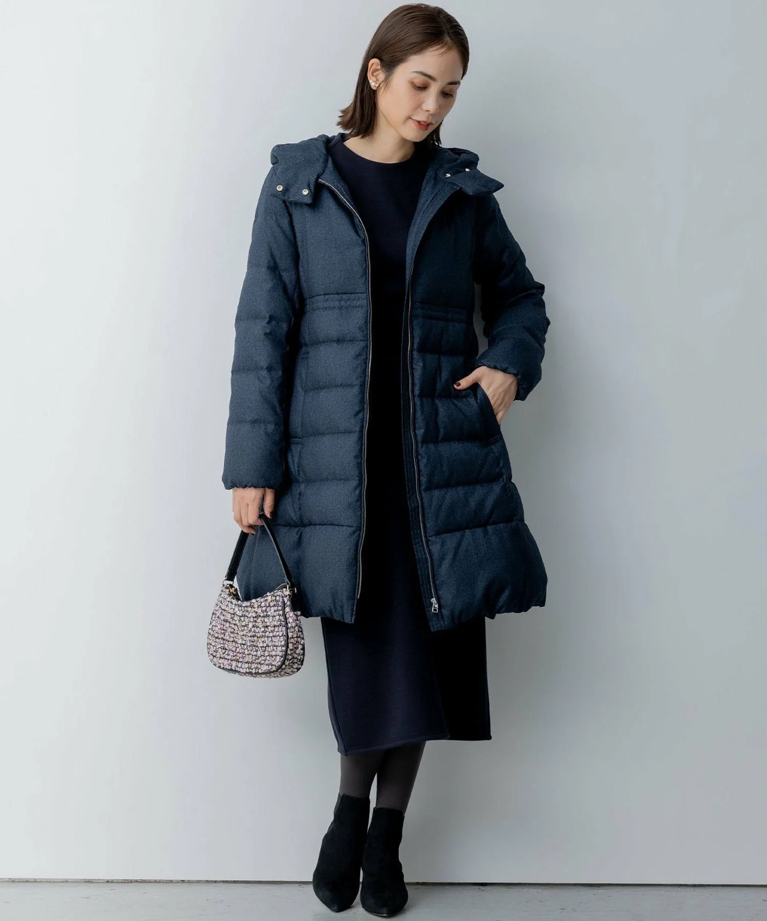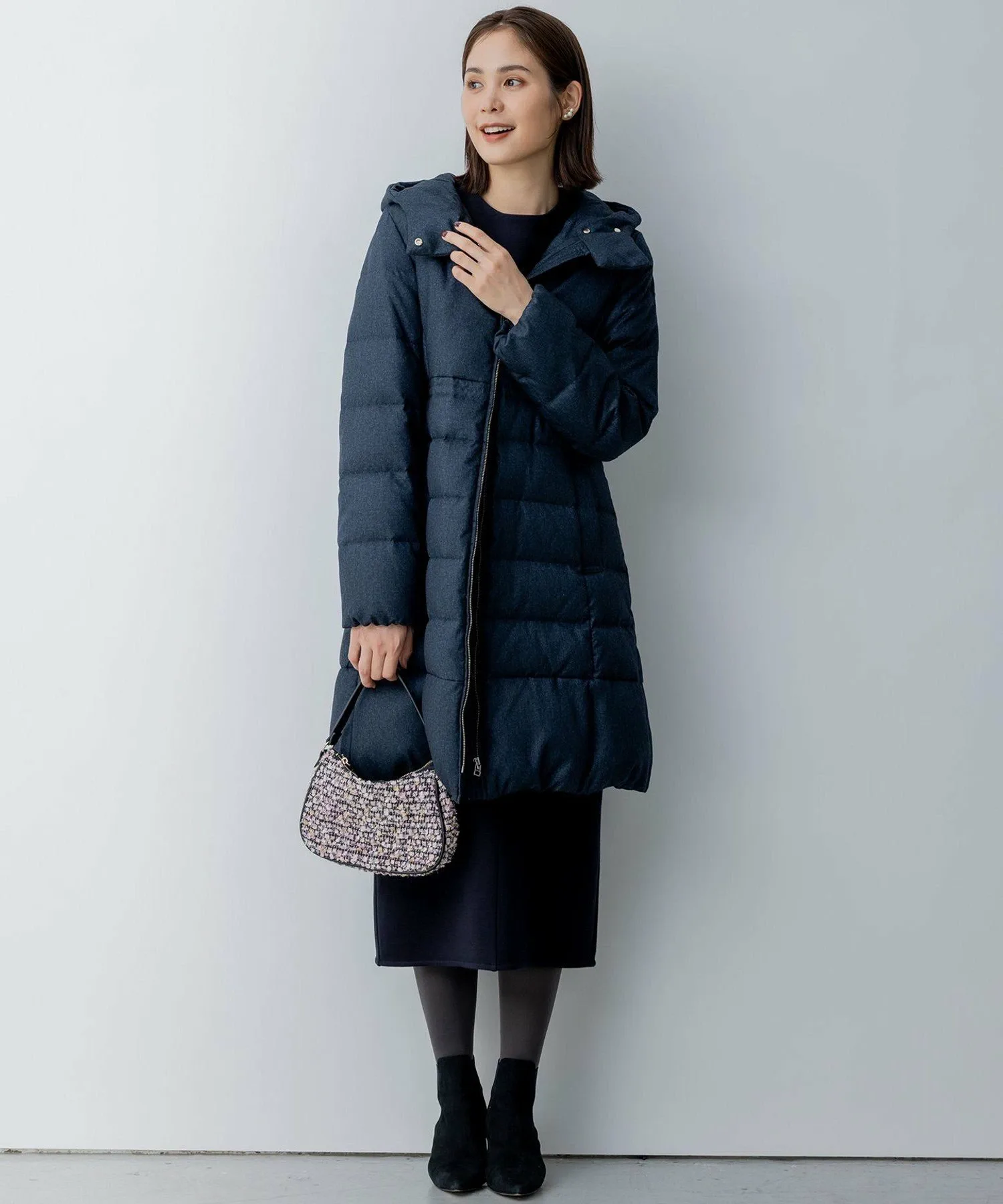 Дизайн: Это длинное пуховое пальто отличается красивым силуэтом, плавно изгибающимся к талии. Верхняя часть не имеет швов, что создает плоский силуэт и придает пальто расслабленный, сдержанный вид. Горизонтальные швы, начинающиеся чуть выше талии и доходящие до низа, сужаются к талии, создавая стройнящий, привлекательный силуэт. Длина комфортно закрывает бедра, обеспечивая исключительное тепло. Расстегивание боковой молнии, как разрез, позволяет создать обтекаемый силуэт поверх расклешенной юбки и обеспечивает свободу движений. Это пальто разработано с учетом как эстетики, так и функциональности. Трехмерный капюшон, обволакивающий лицо, создает эффект стройности. Простой дизайн свидетельствует о внимании к деталям. Легкость сочетания с другими элементами гардероба также является привлекательным преимуществом.