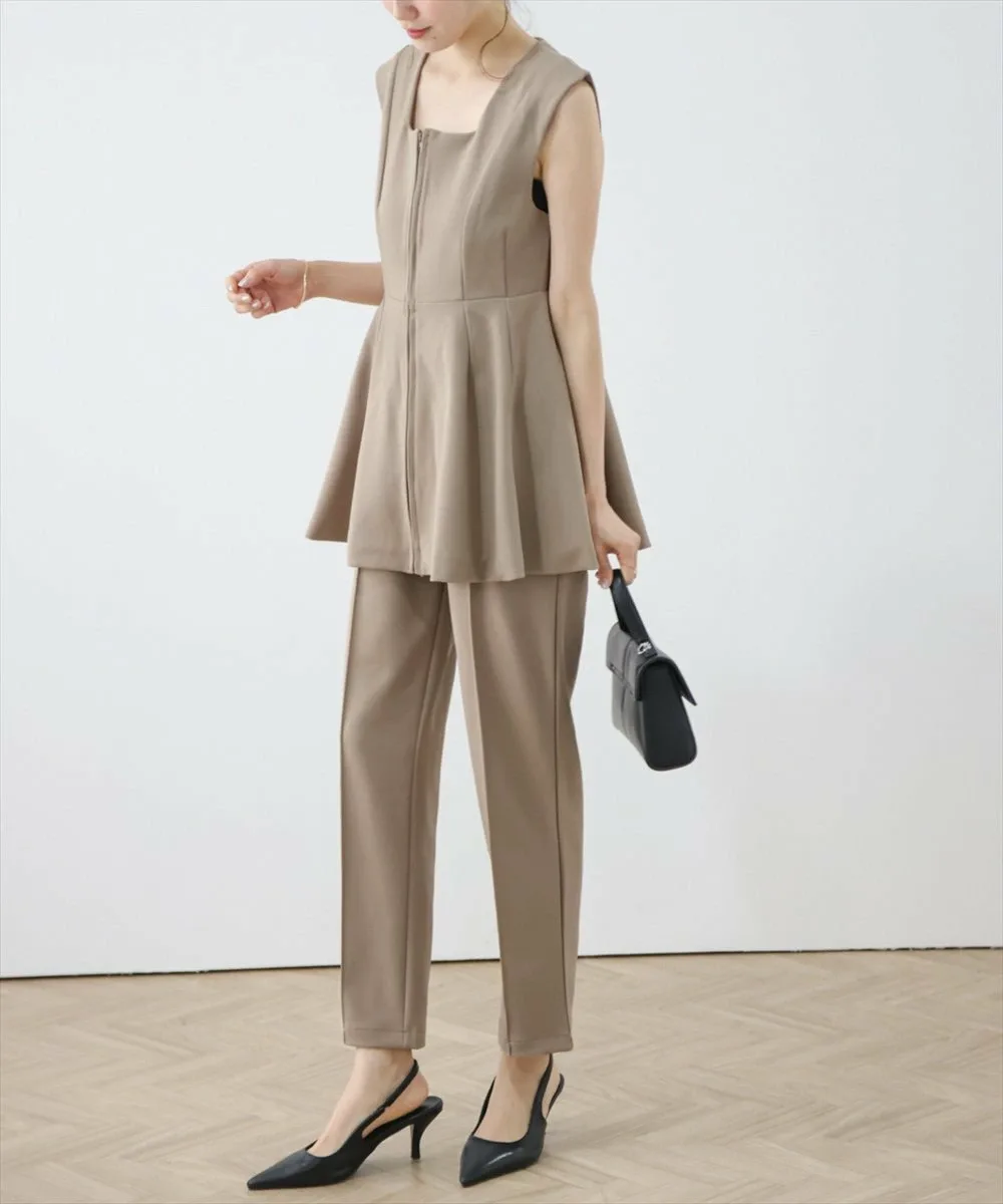 Этот комплект из баски и брюк сочетает в себе модный и аккуратный вид.