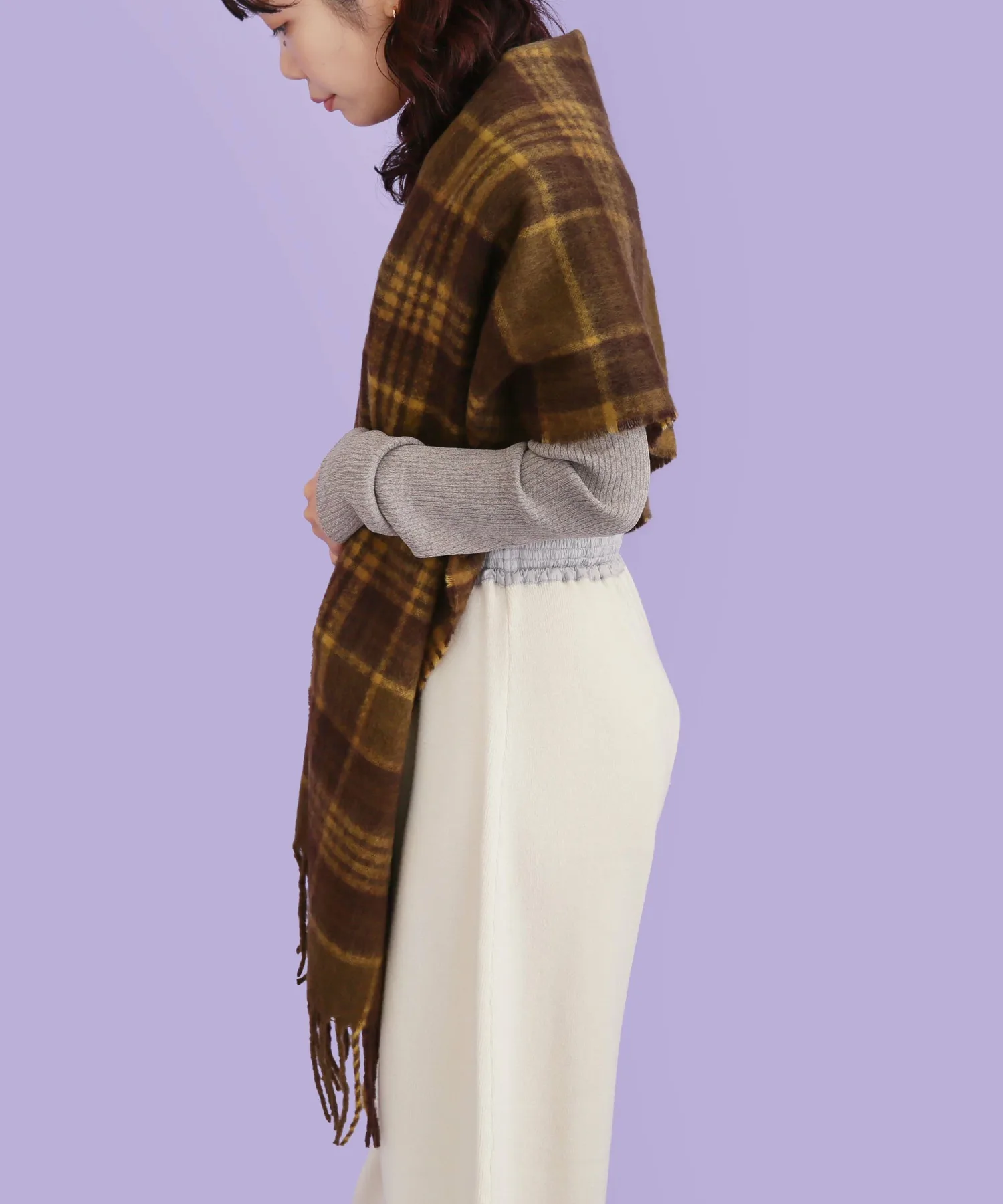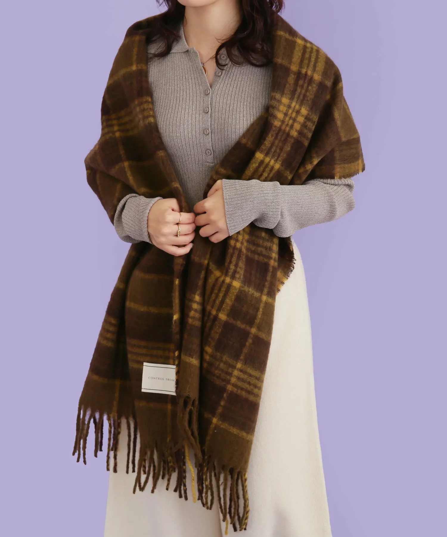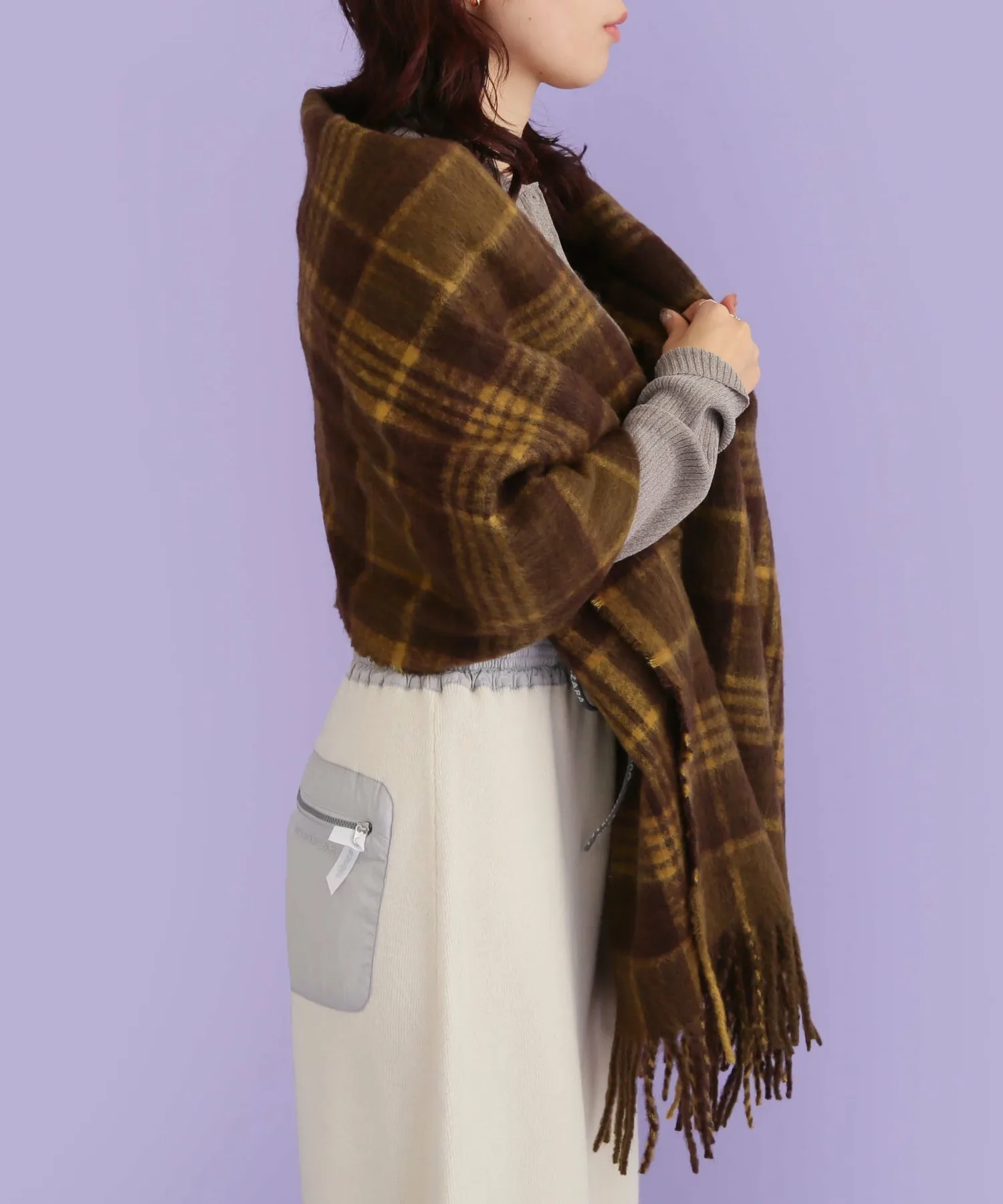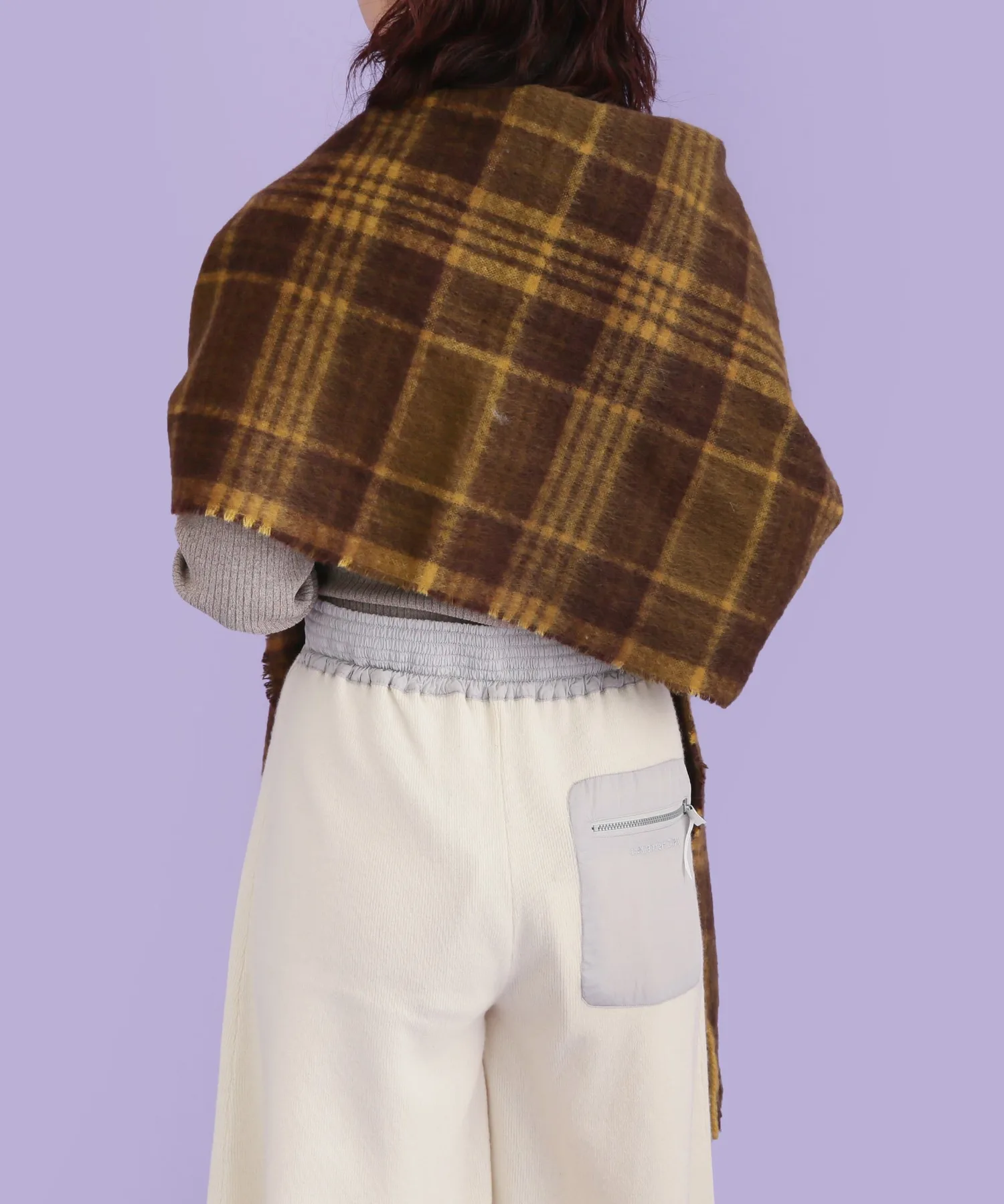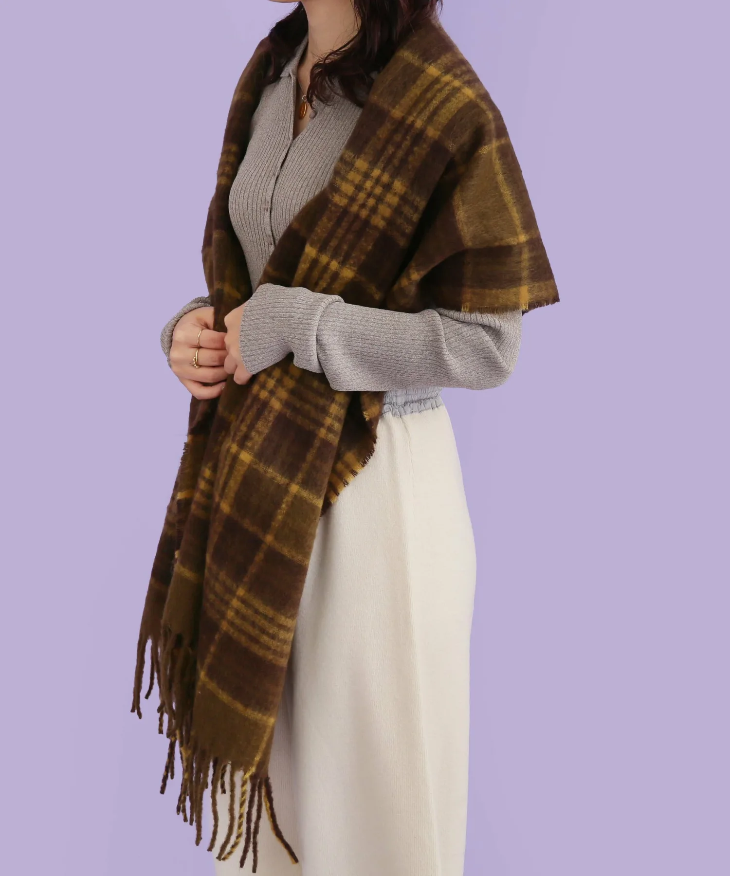 Большой пушистый клетчатый шарф с приятной текстурой.