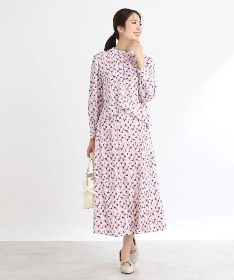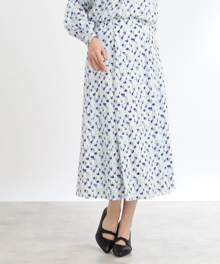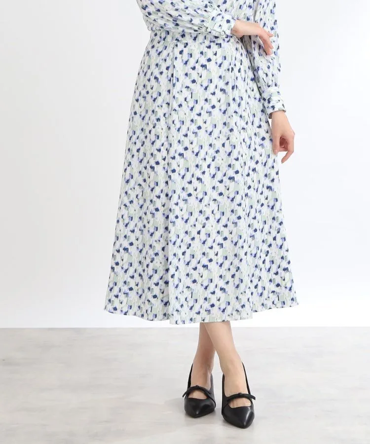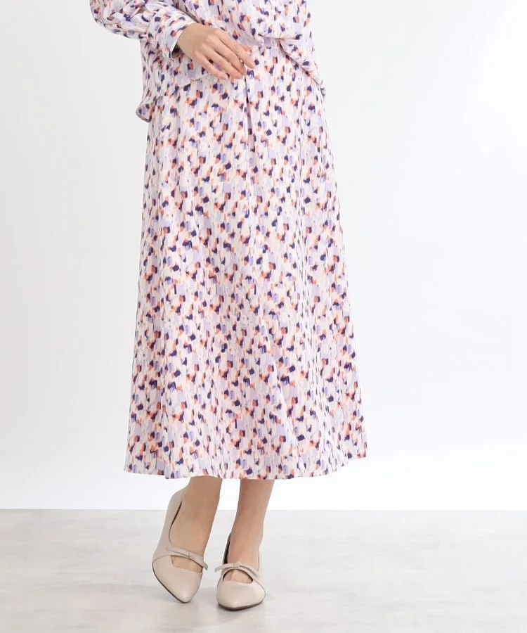 Эта юбка с принтом отличается мягким, абстрактным рисунком в нежных, весенних тонах.