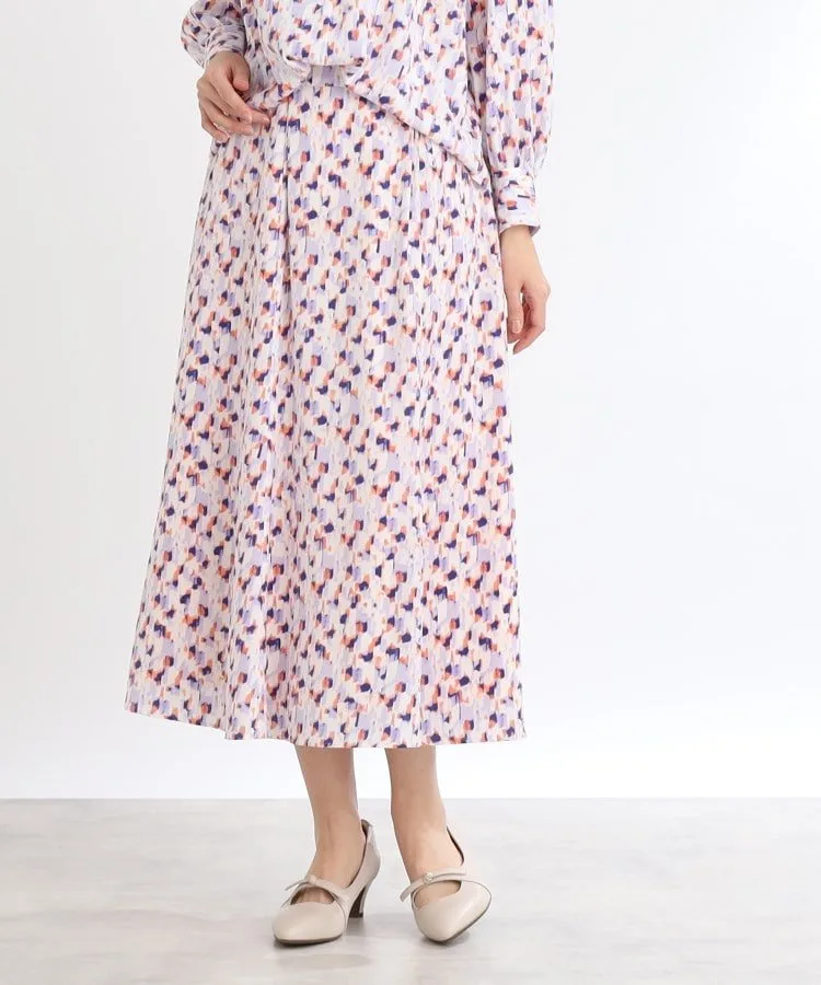 Эта юбка с принтом отличается мягким, абстрактным рисунком в нежных, весенних тонах.