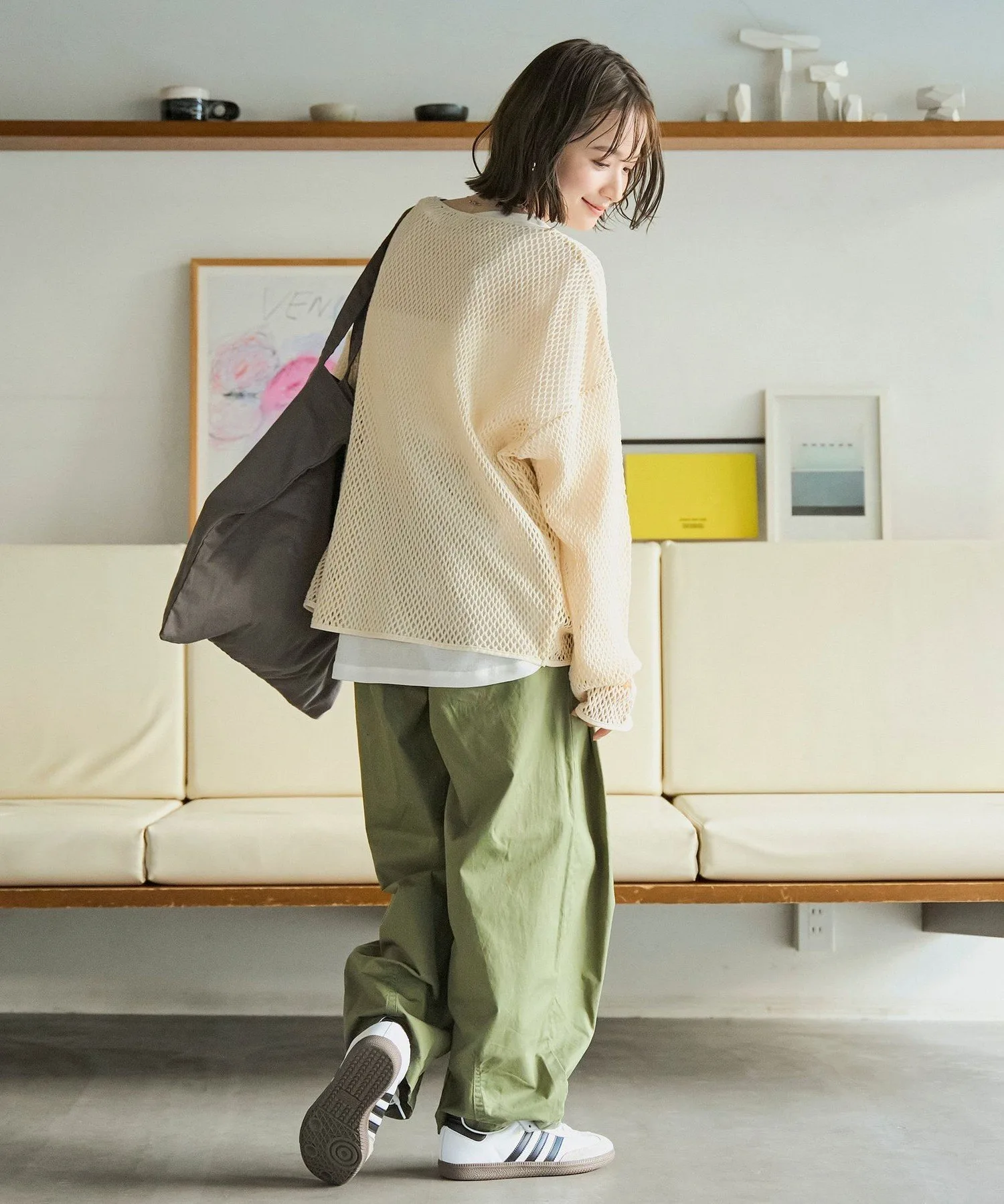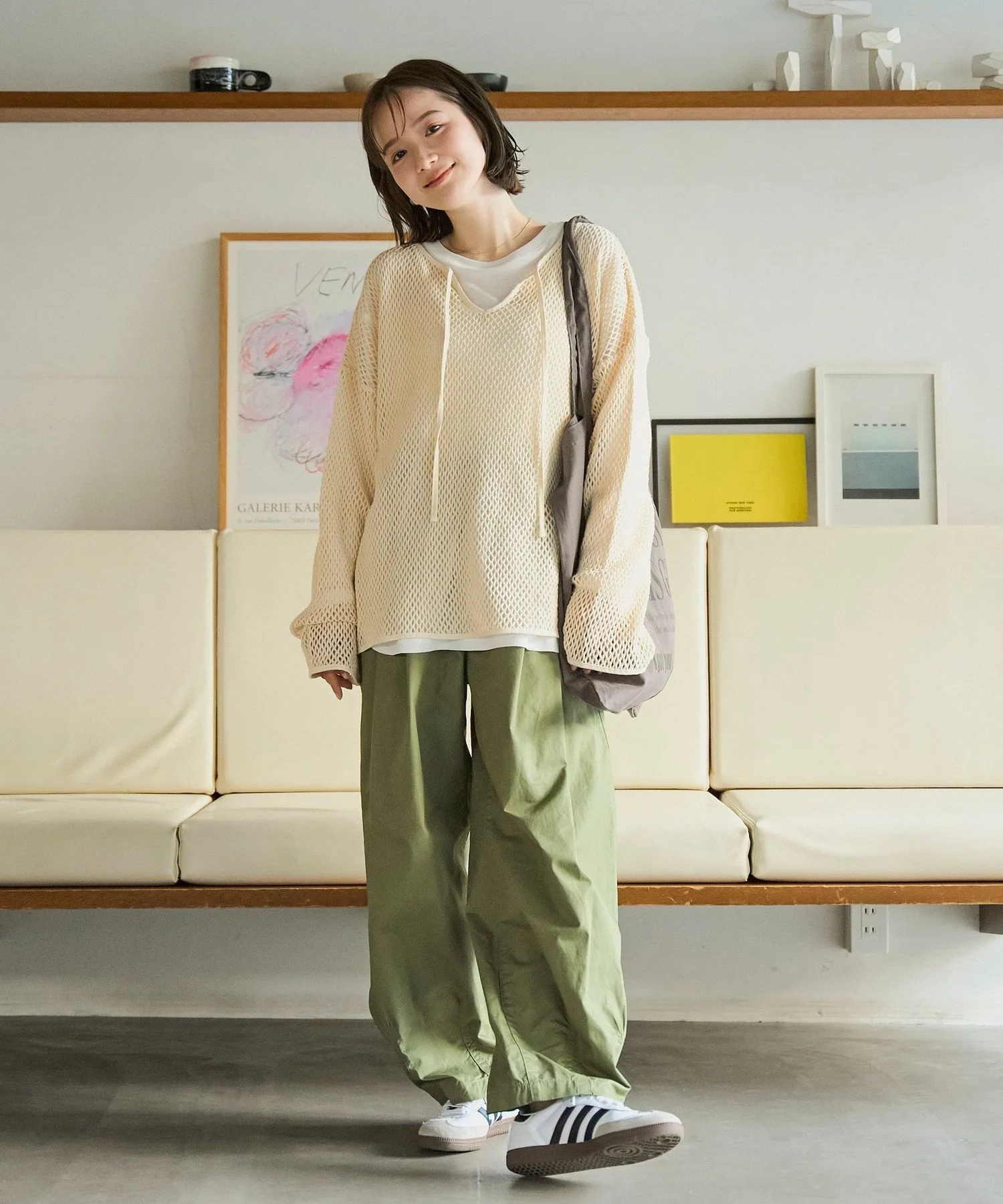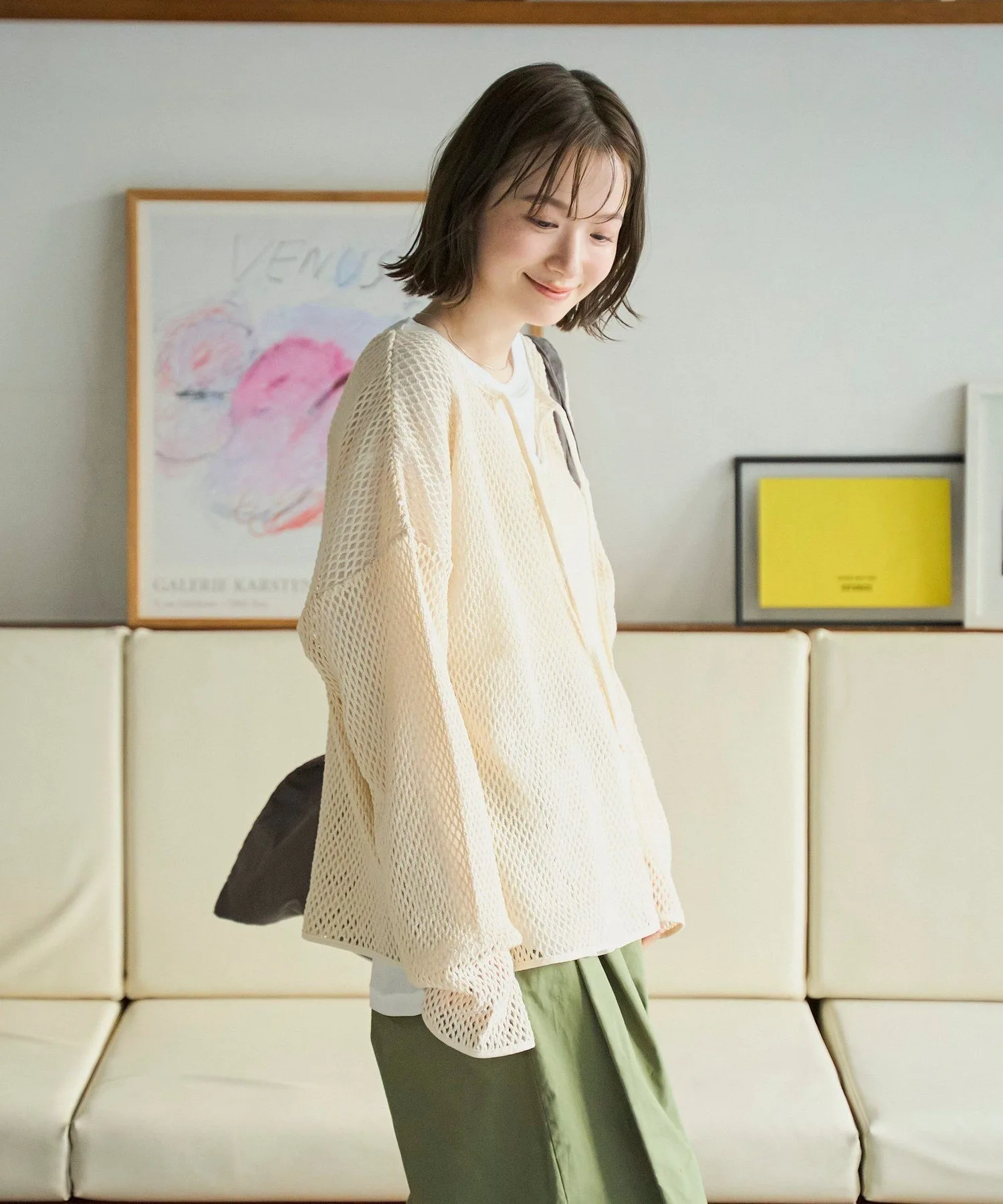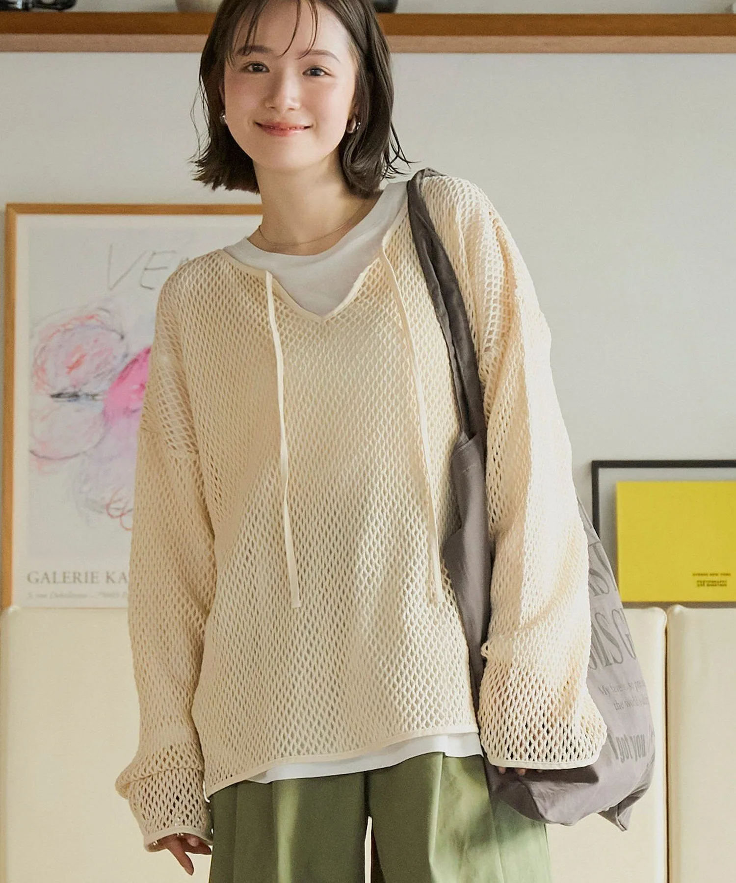 Этот пуловер выполнен из плотной сетки, что позволяет создавать разнообразные многослойные образы.