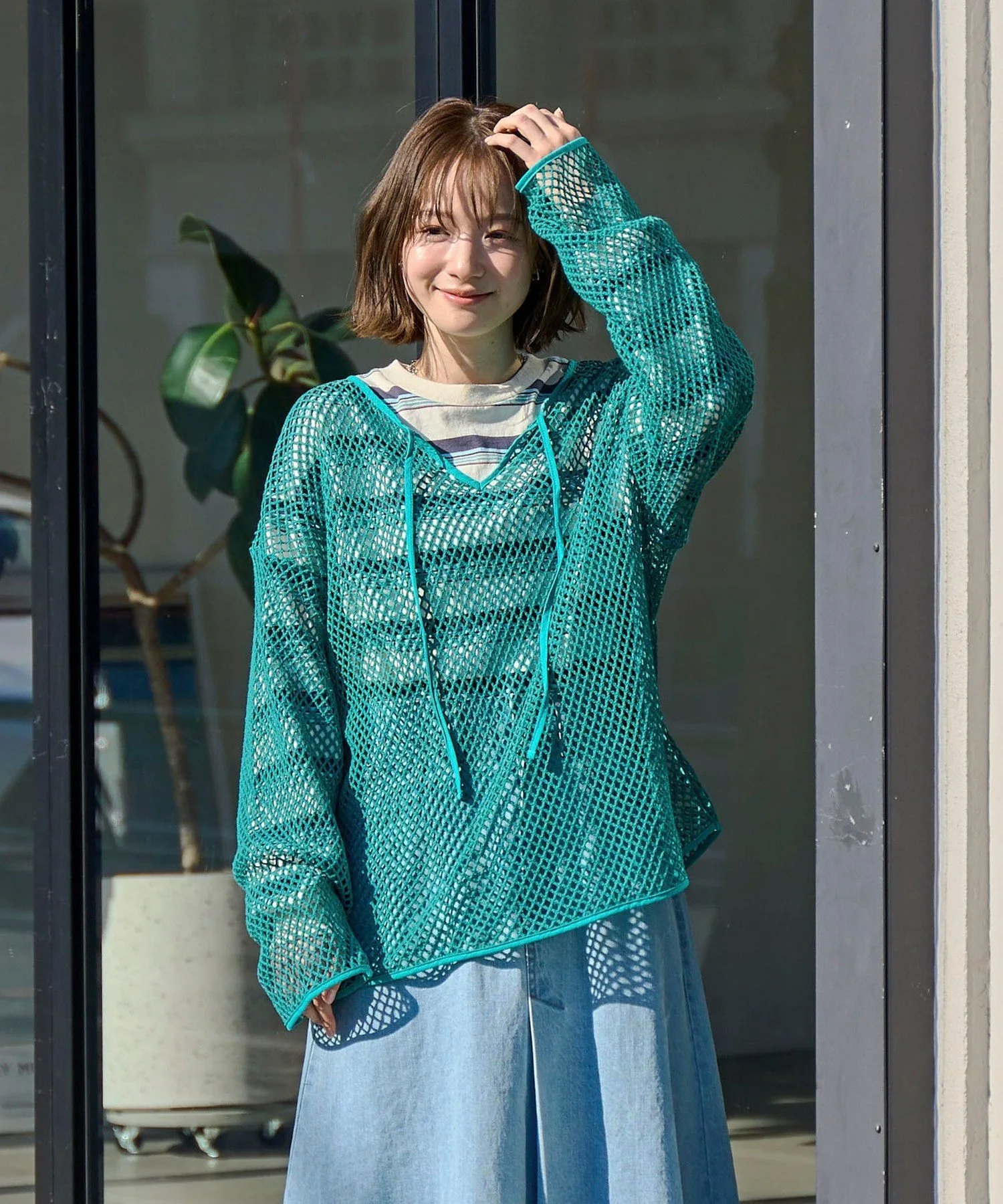 Пуловер из плотной сетчатой ткани, который дополнит ваш образ благодаря возможности многослойности.