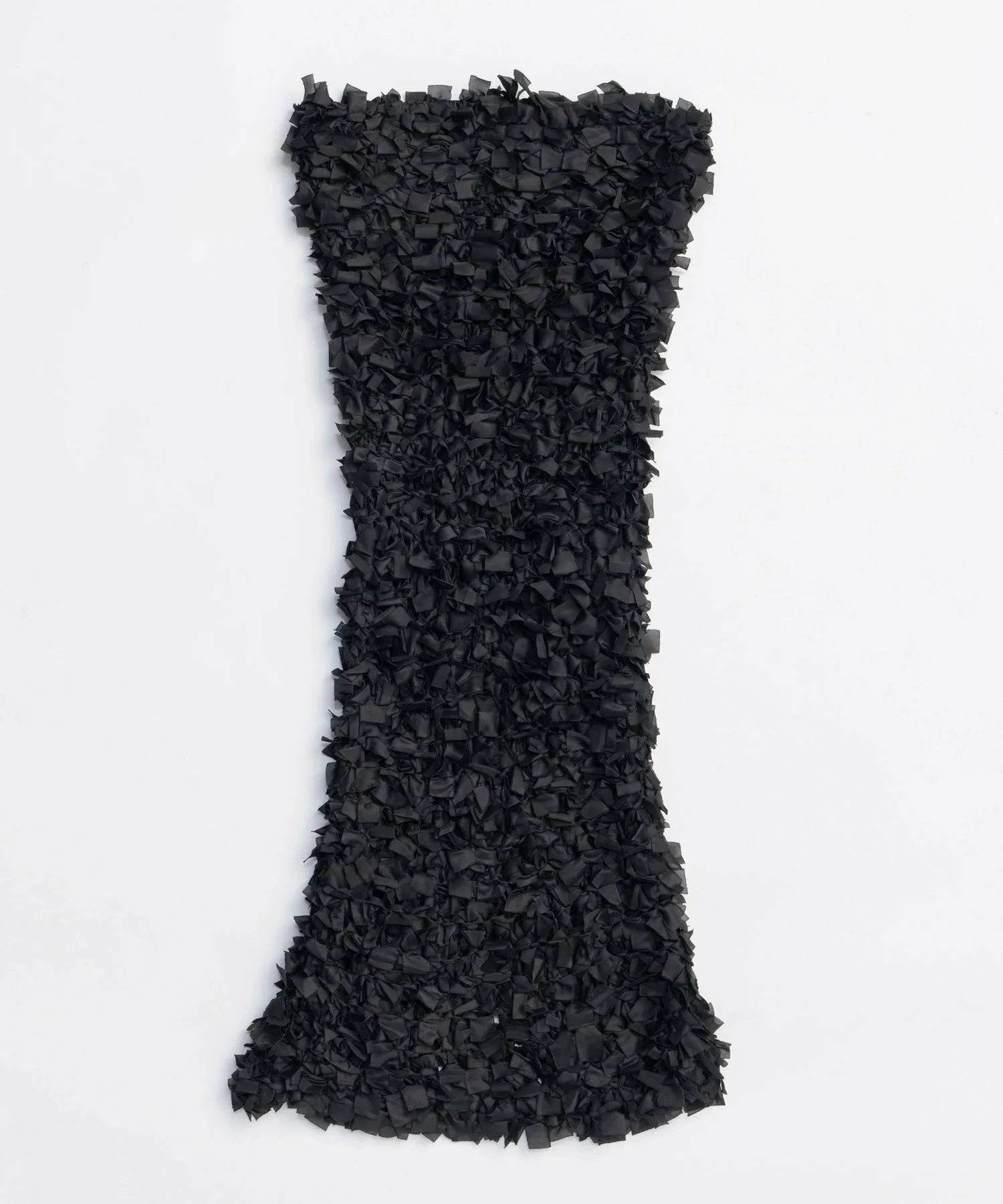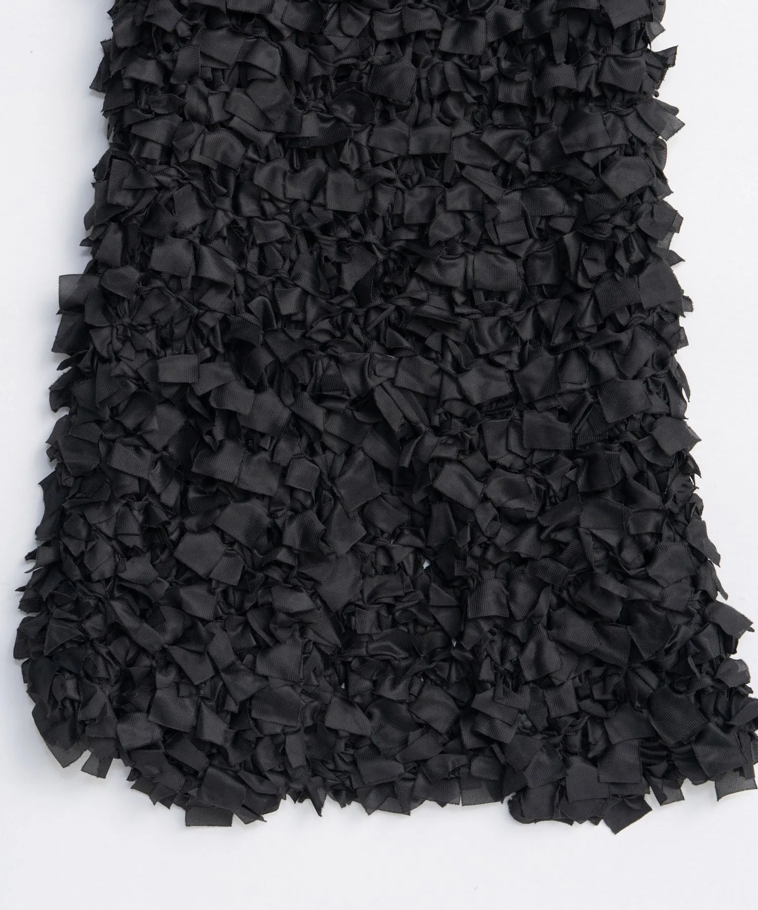 Этот трикотаж изготовлен с большой тщательностью и вниманием к деталям: ткань разделена на полосы и связана вручную по одной.