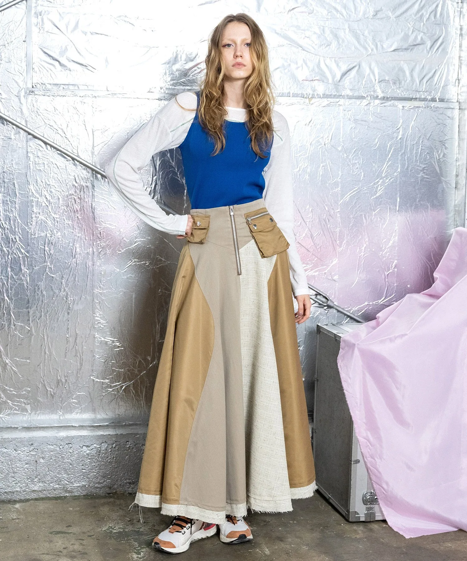 Длинная юбка-солнце, сшитая из того же материала, что и жакет.