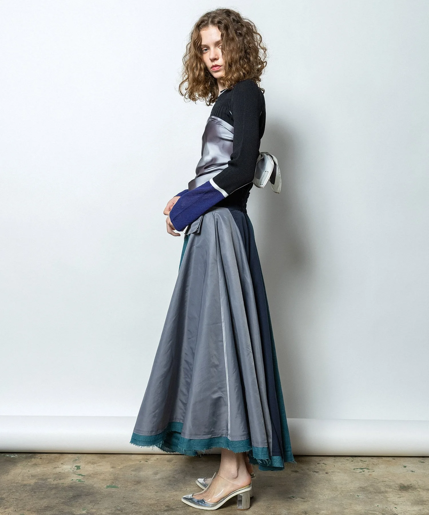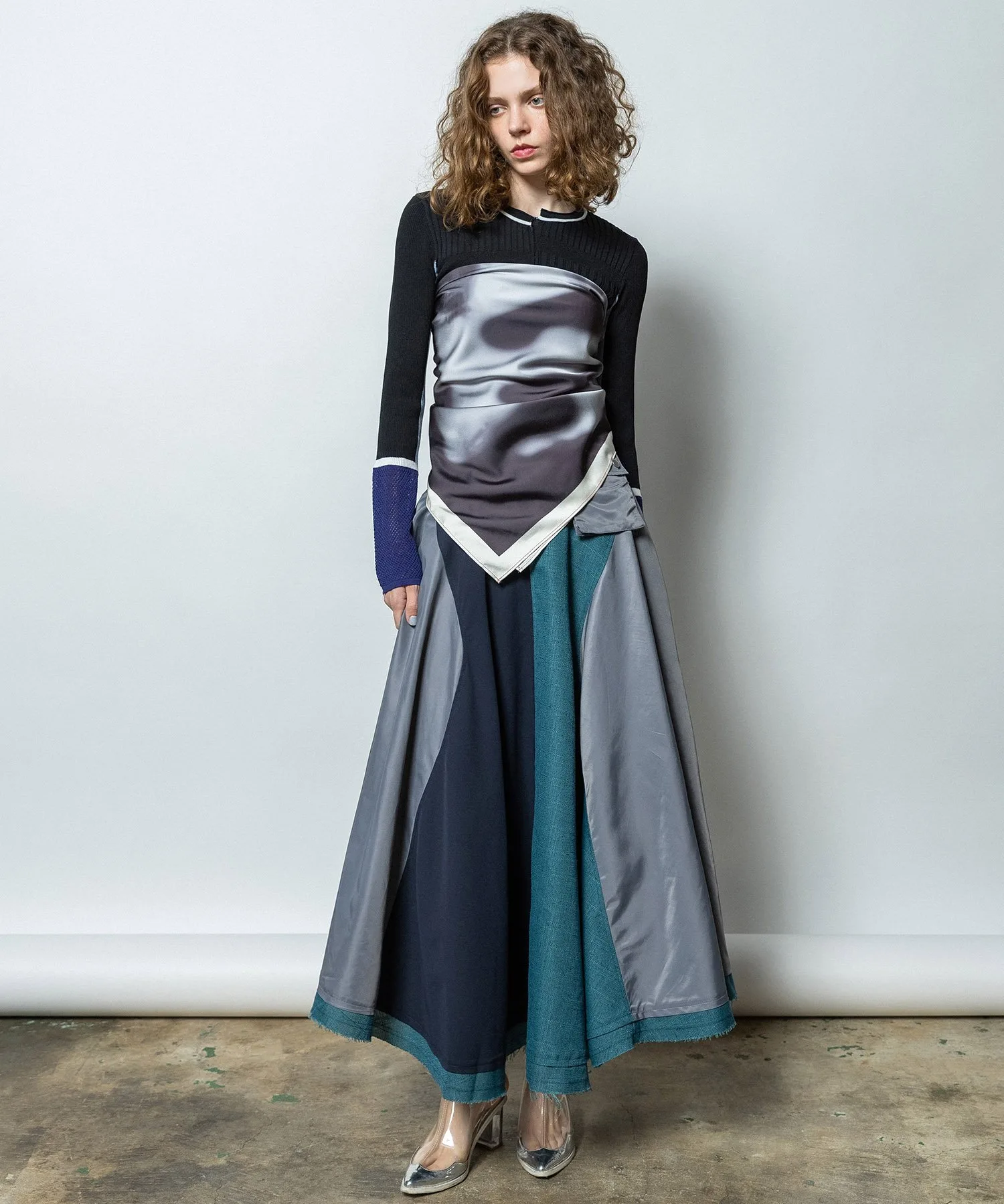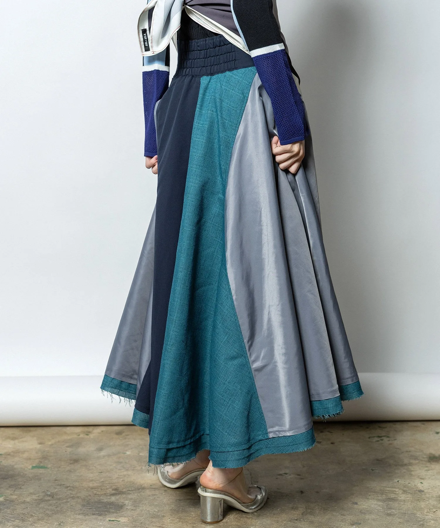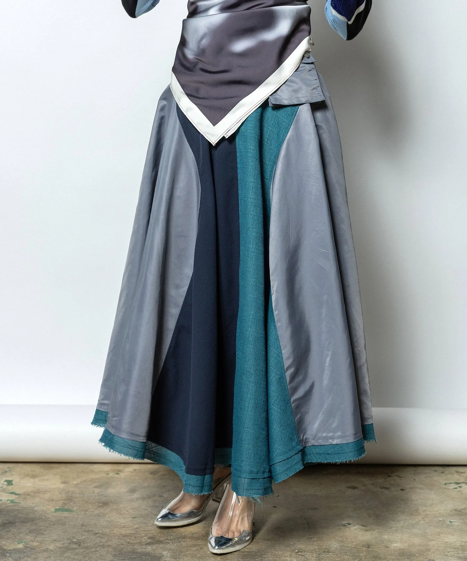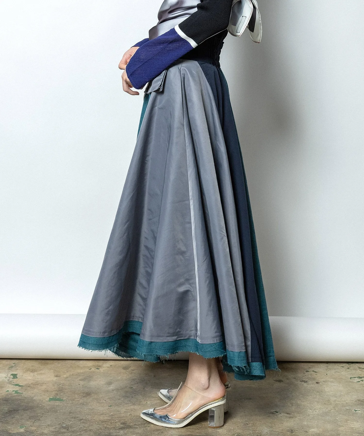 Длинная юбка-солнце из трех материалов