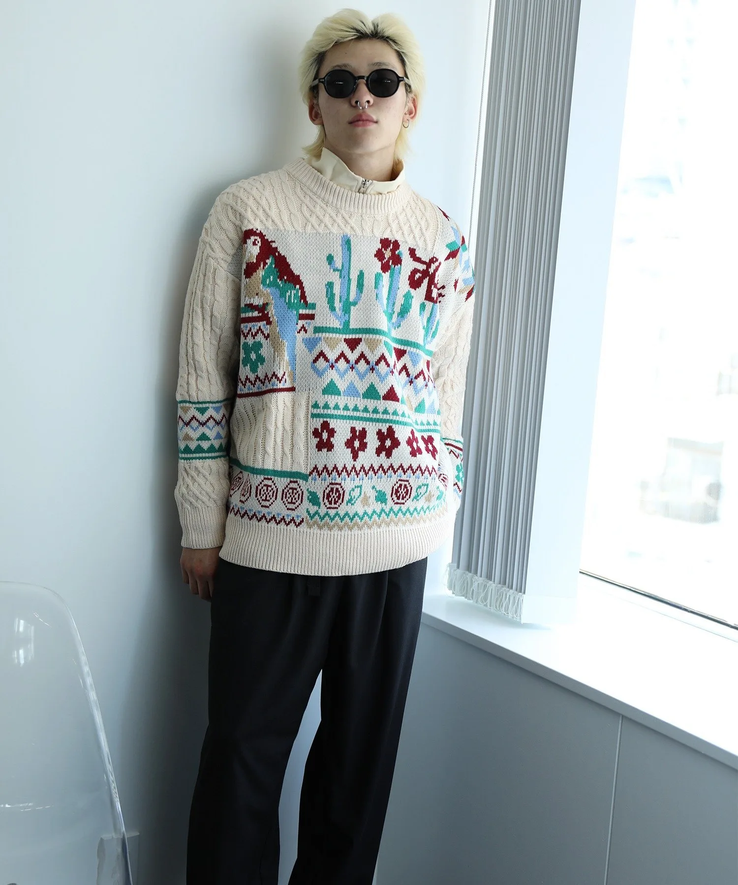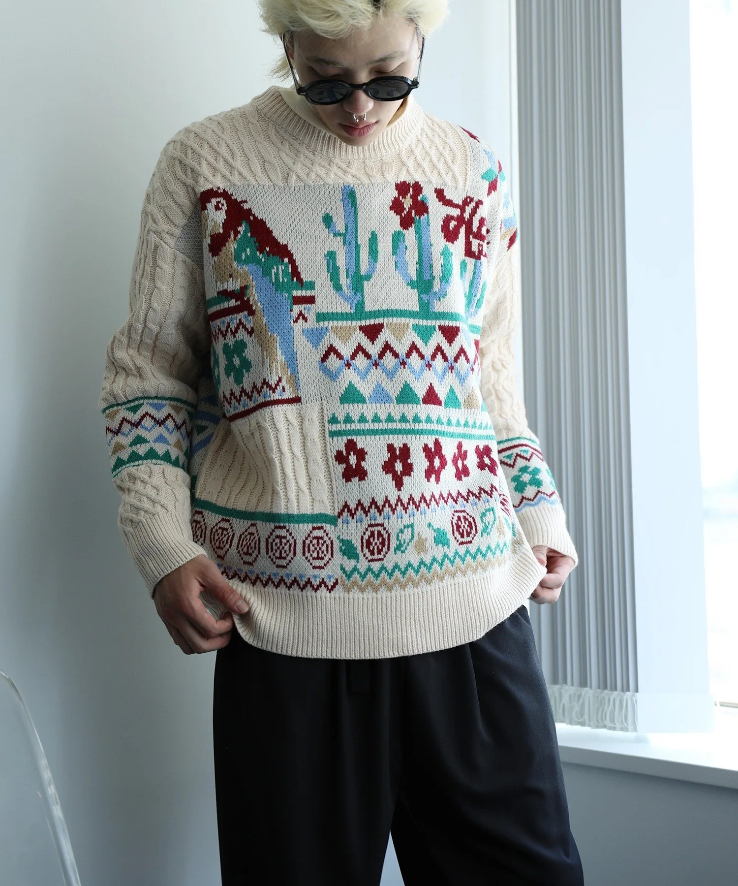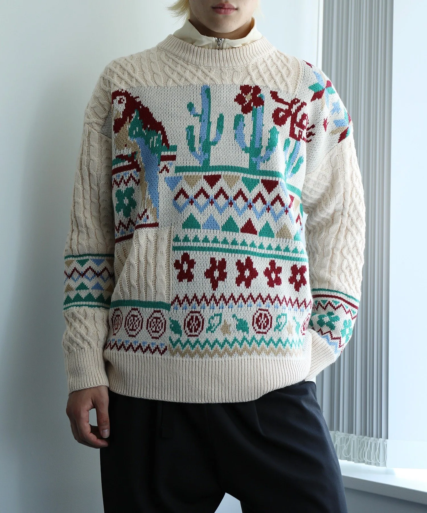 Классический лоскутный трикотаж с характерной отделкой, достигаемой за счет сочетания трехмерной вязки с различными узорами.