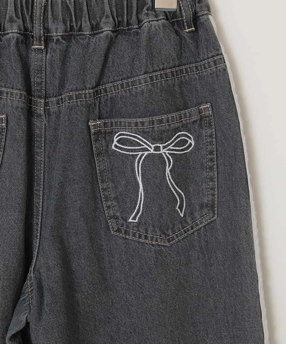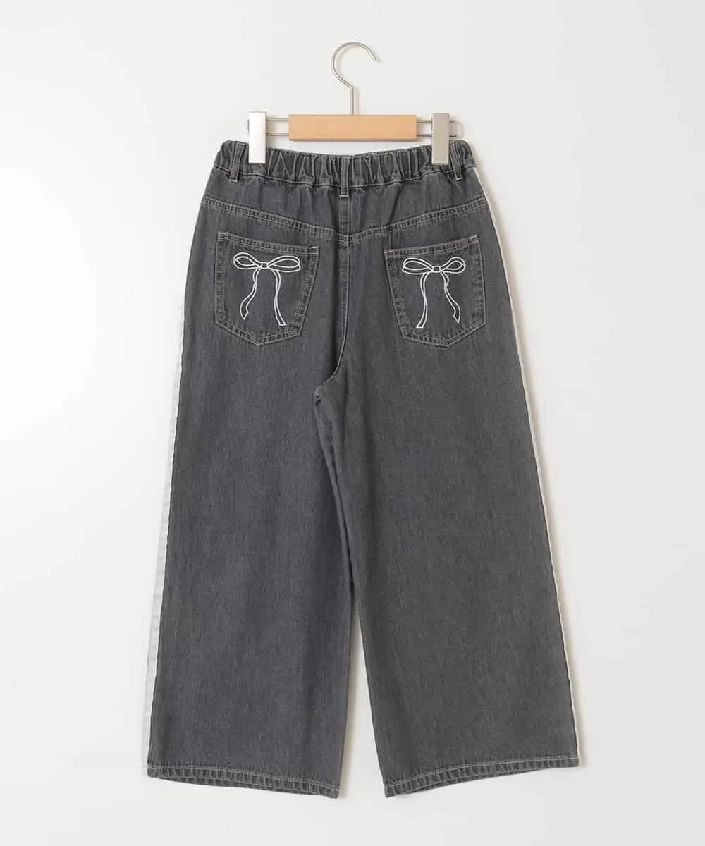 ・Эти модные джинсовые брюки украшены кружевом, лентами и стразами.
