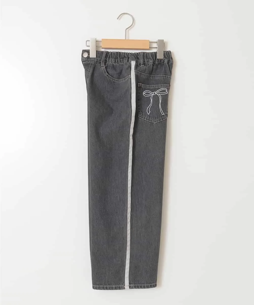・Черный... Нежный и пикантный стиль с линиями с обеих сторон и вышивкой лентой на заднем кармане!