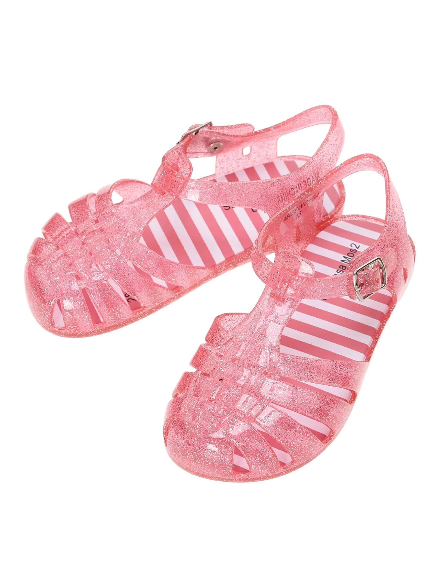 Эти сандалии из ПВХ покрыты множеством сверкающих блесток.