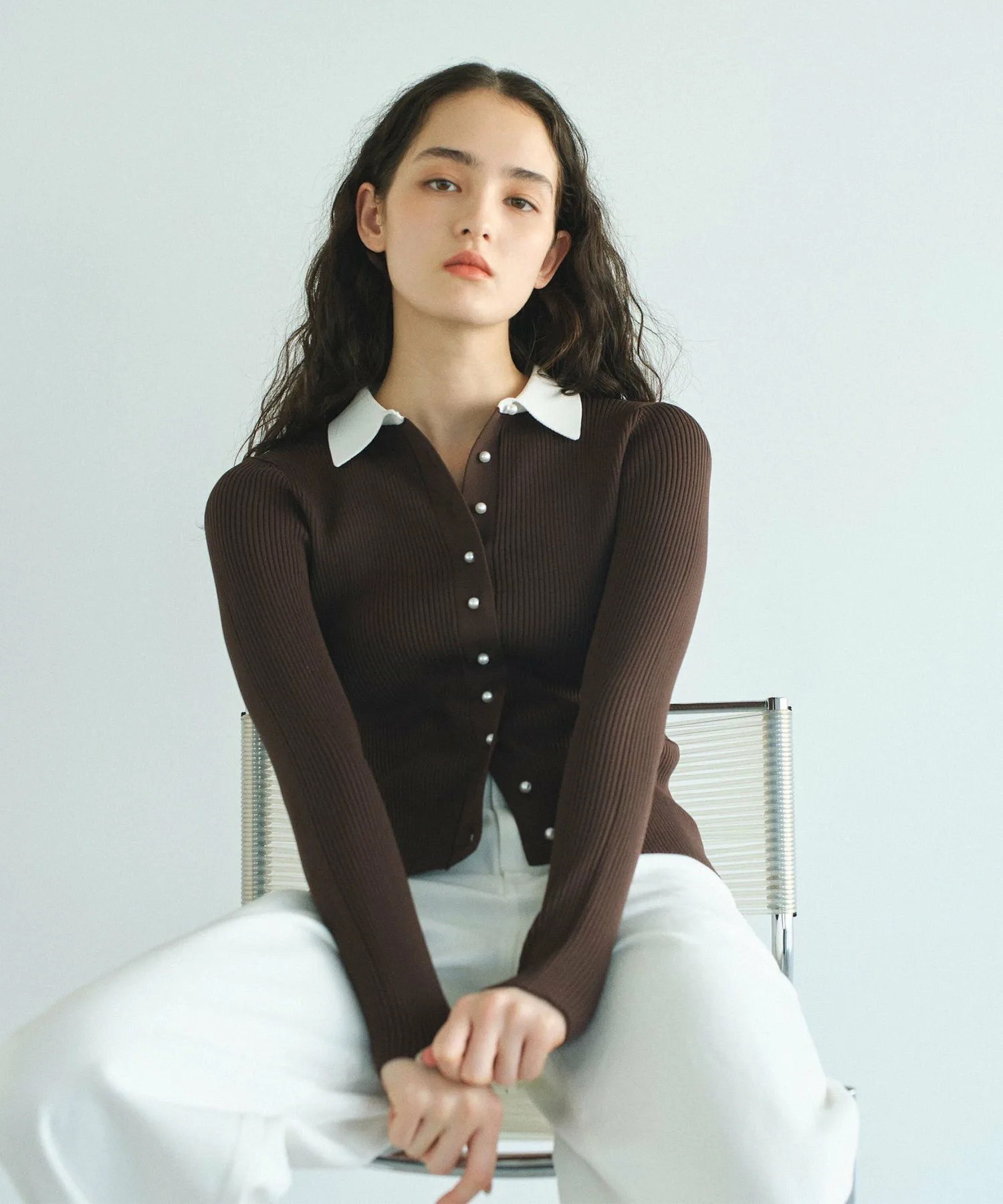 Этот ребристый вязаный кардиган выполнен в базовом цвете, который легко сочетается с другой одеждой, и имеет белый воротник для изысканного вида. Воротник также вязаный, поэтому он приятен на ощупь и не создает ощущения громоздкости, что делает его невероятно удобным в ношении! Жемчужные пуговицы добавляют элегантности, но для создания повседневного образа рекомендуется также сочетать его с джинсами.