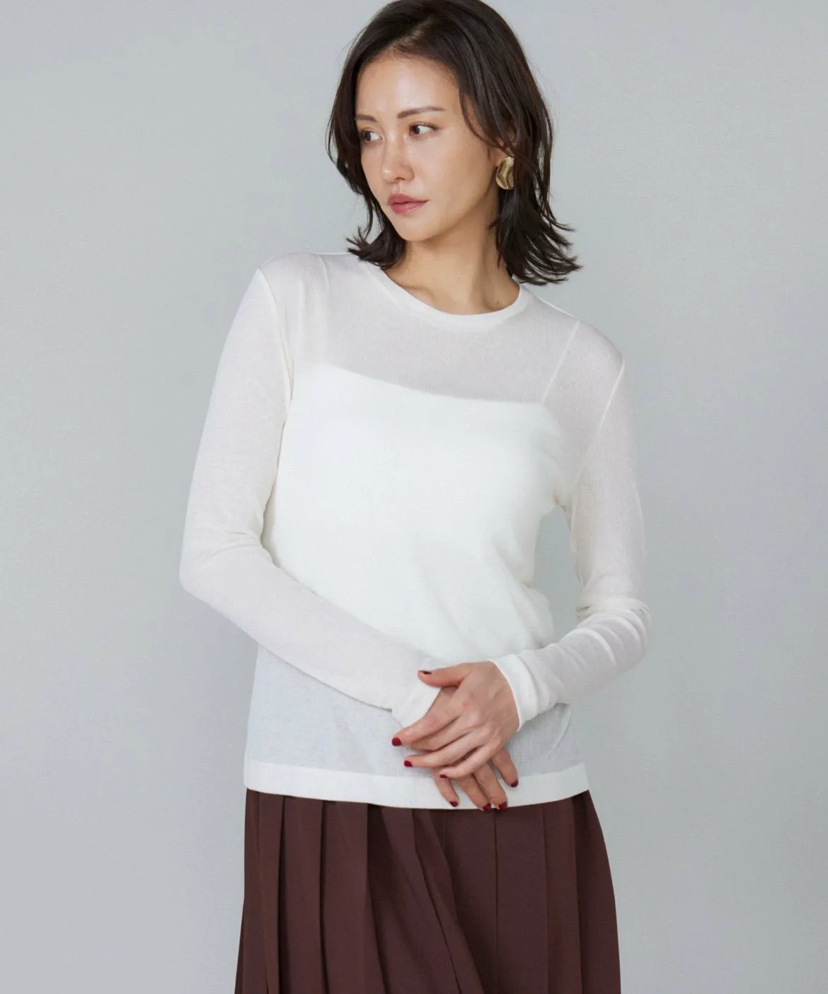 Этот прозрачный материал изготовлен из тонкого хлопка с нейлоновой нитью, что придает ему естественную текстуру и плотную текстуру. В дополнение к мягкости натуральных материалов, эластичный махровый трикотаж обеспечивает комфортную посадку. Умеренная прозрачность делает его идеальным для создания модных образов.