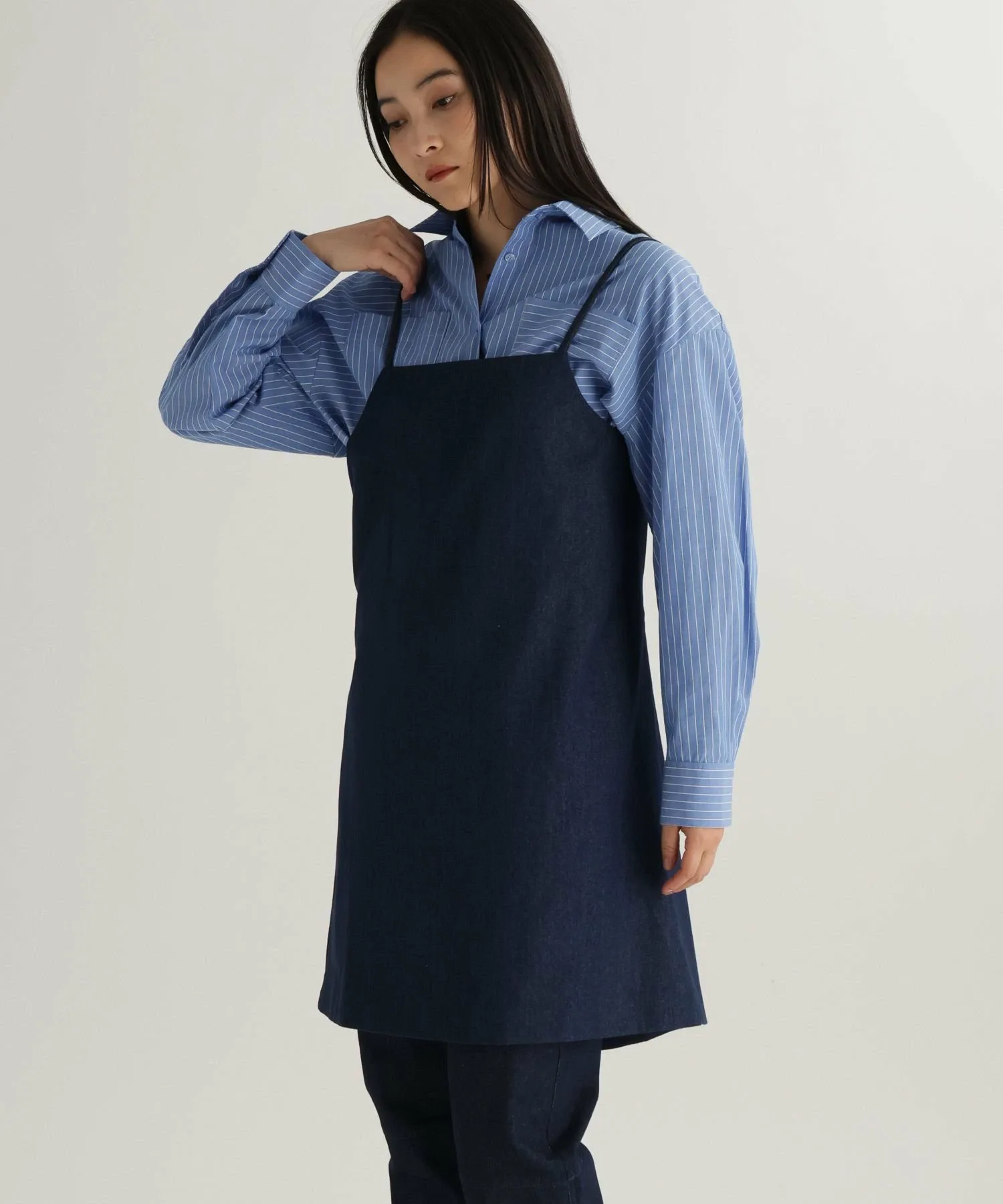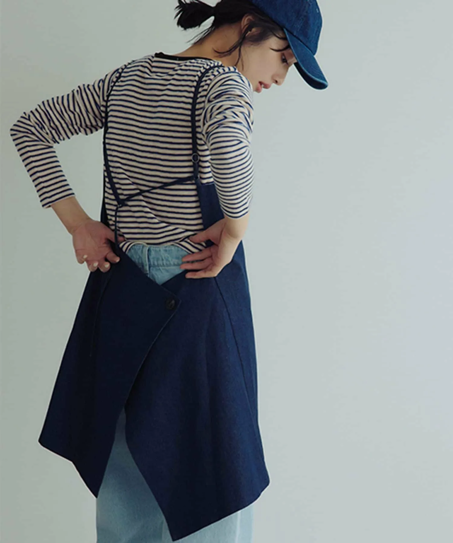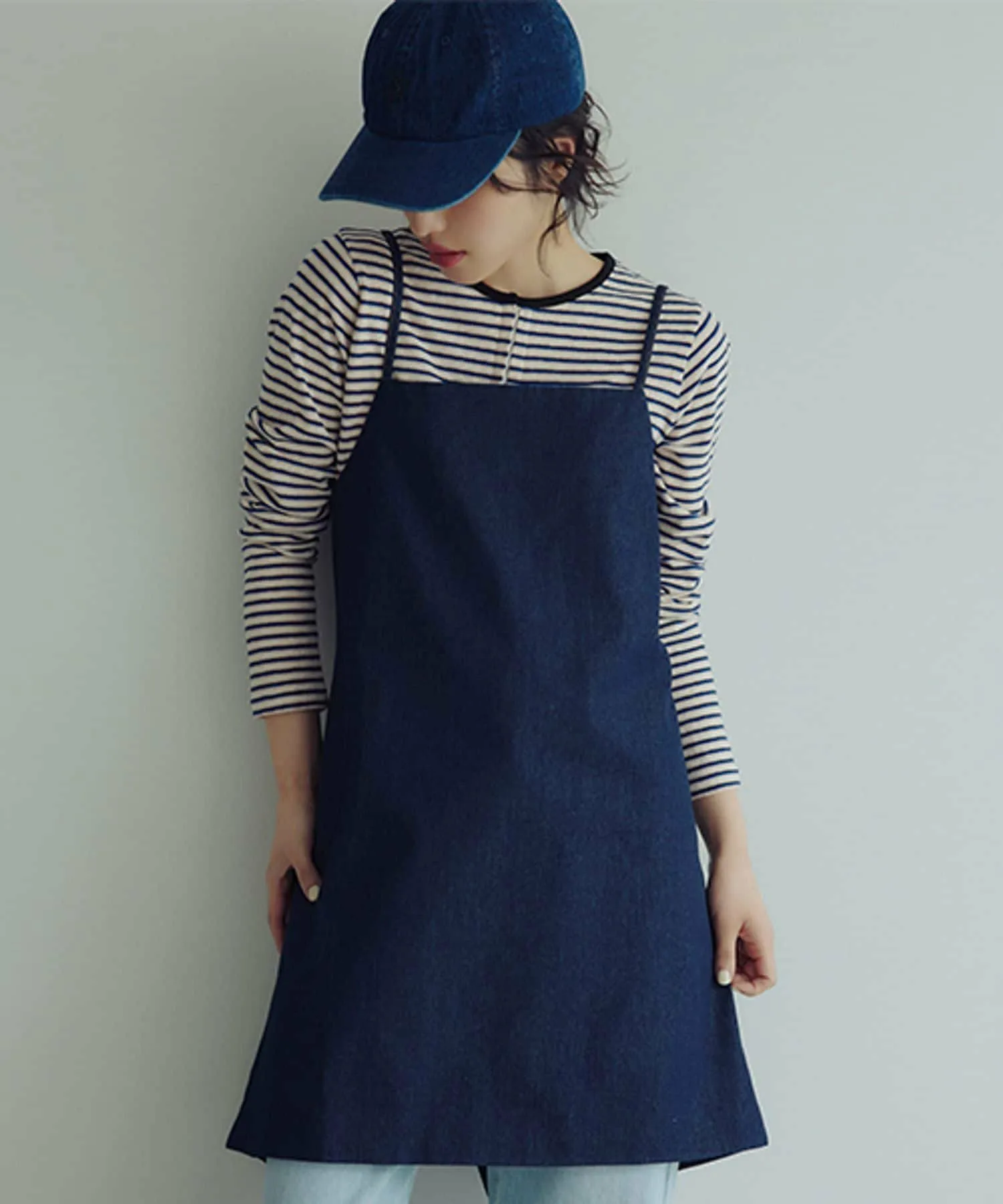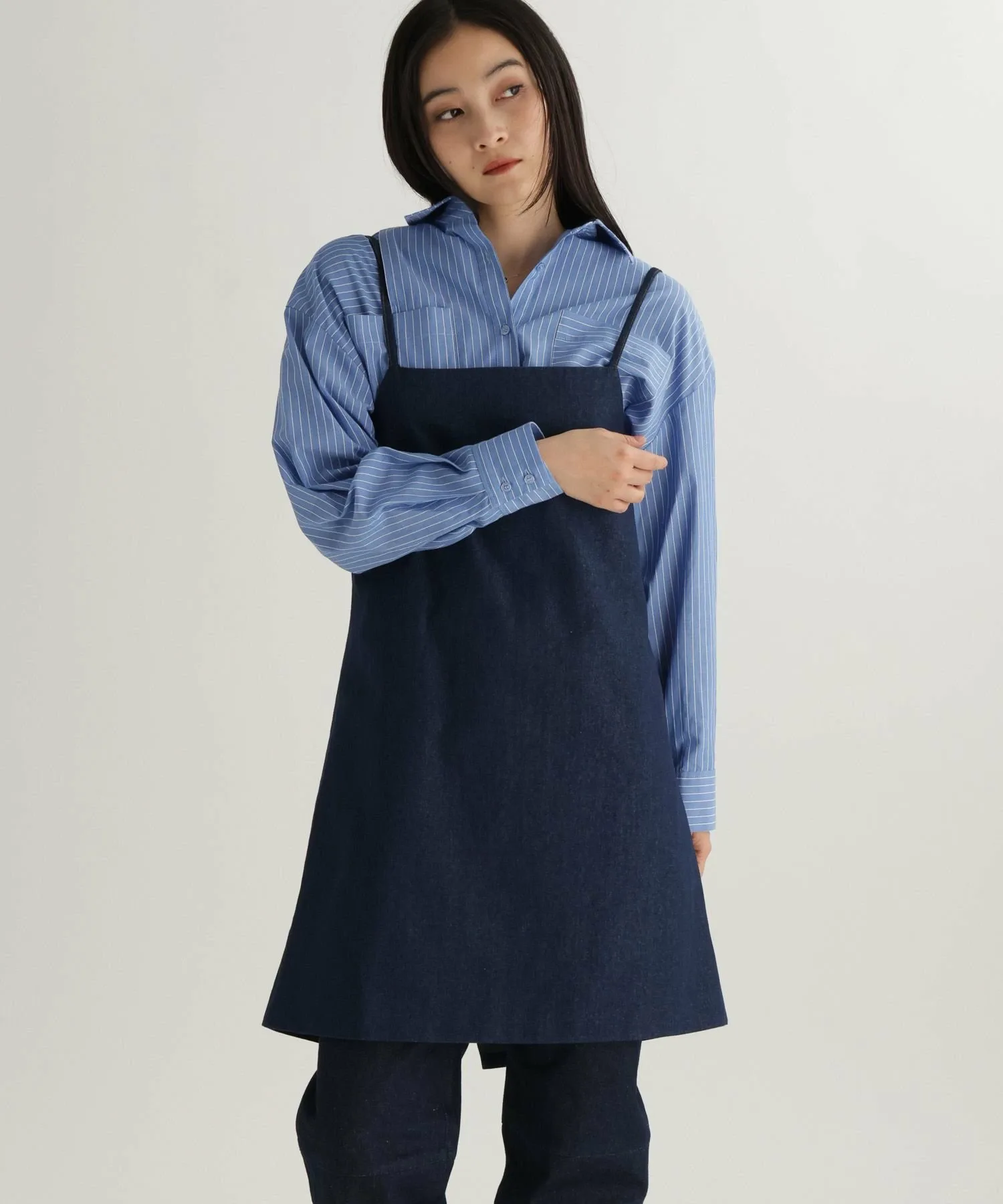Топ-фартук из джинсовой ткани, популярного материала в этом сезоне.