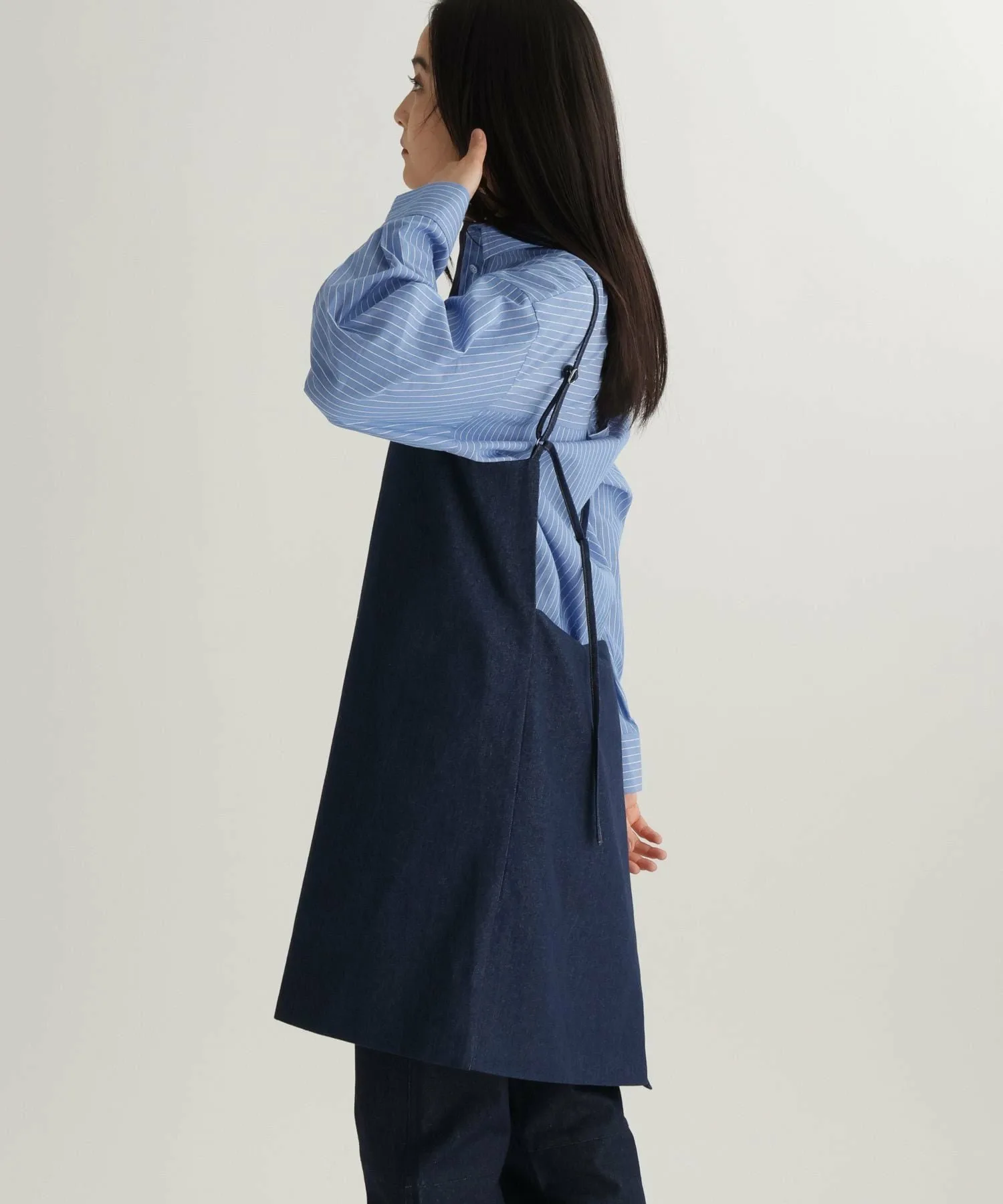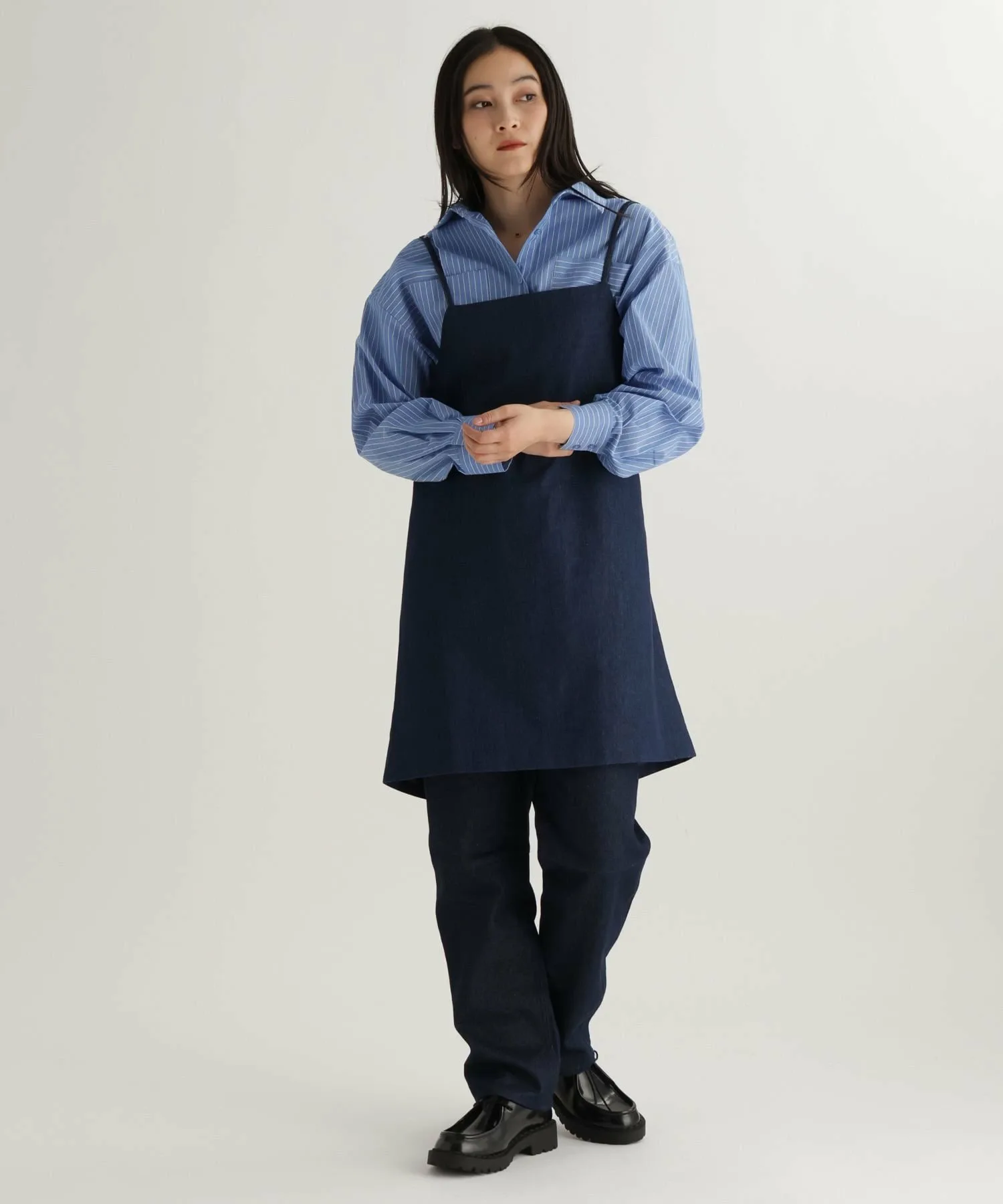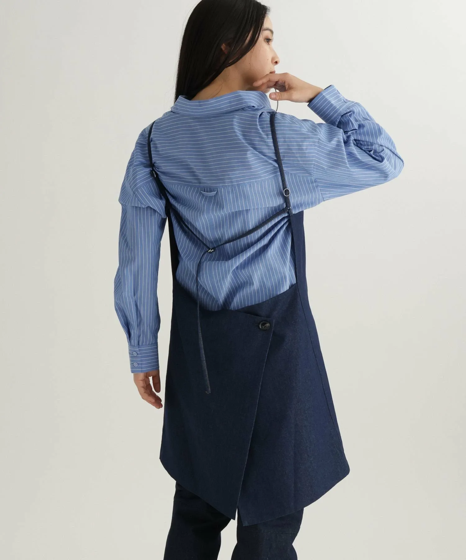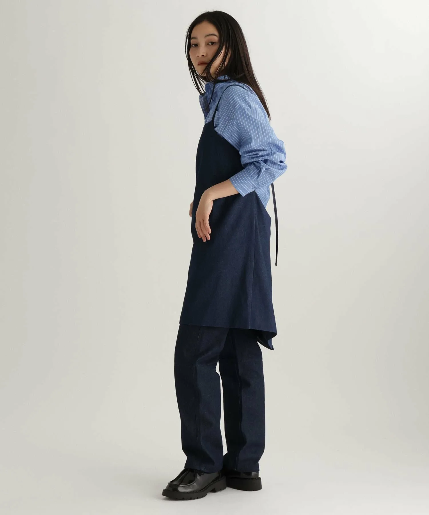 Топ-фартук из джинсовой ткани, популярного материала в этом сезоне.