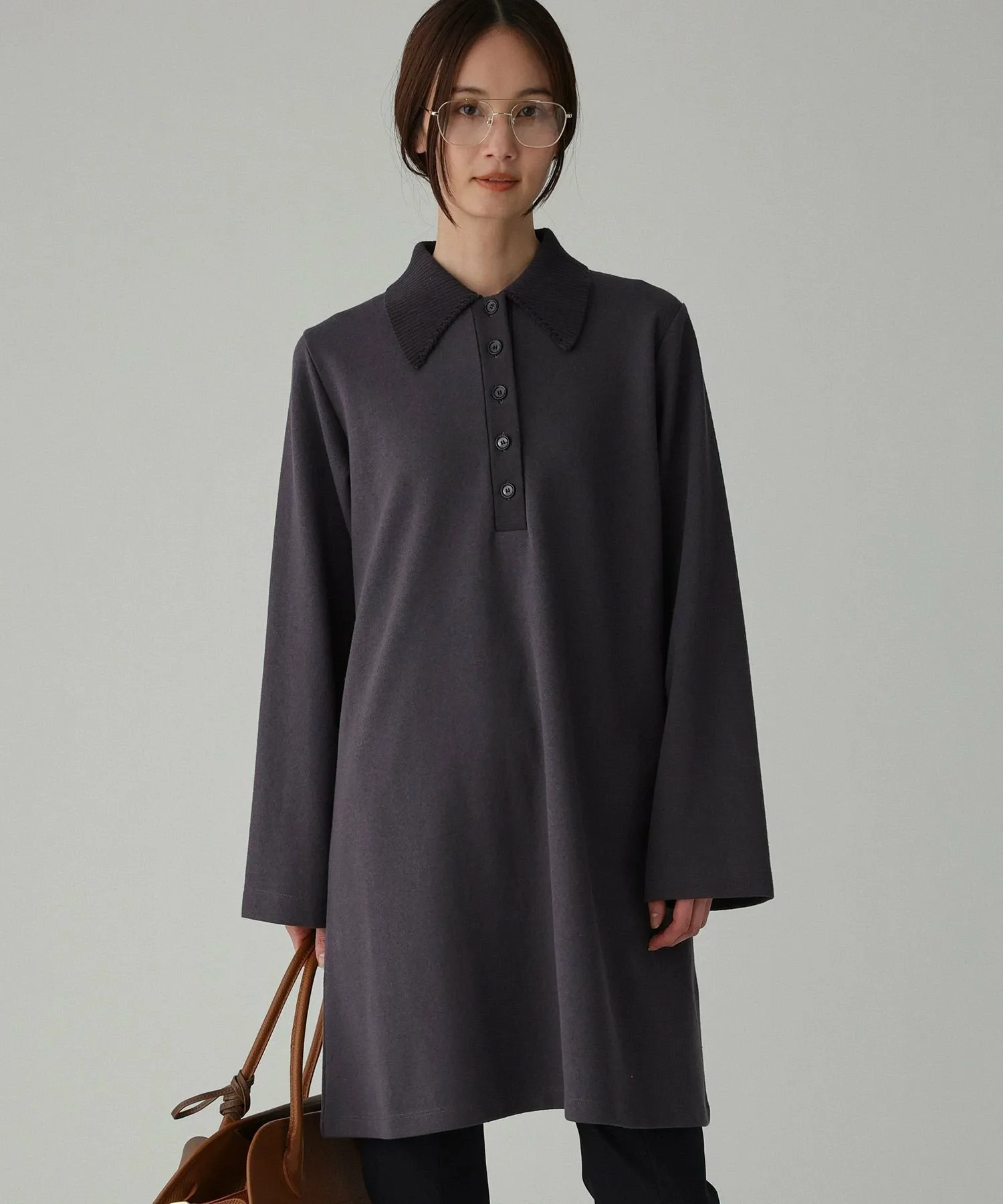 - Мини-платье из букле с воротником-поло.