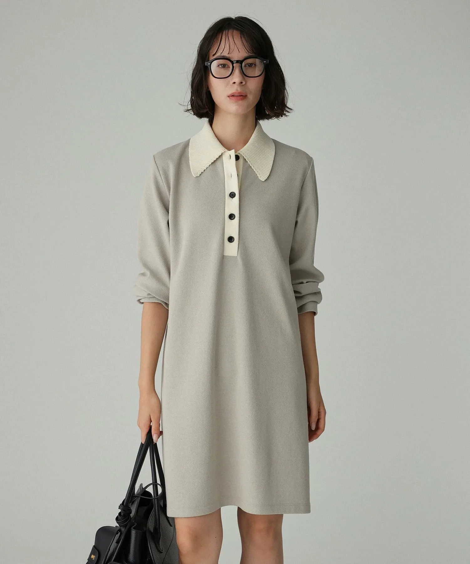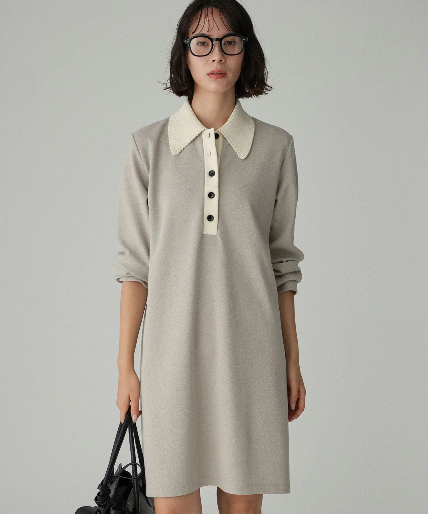 - Мини-платье из букле с воротником-поло.