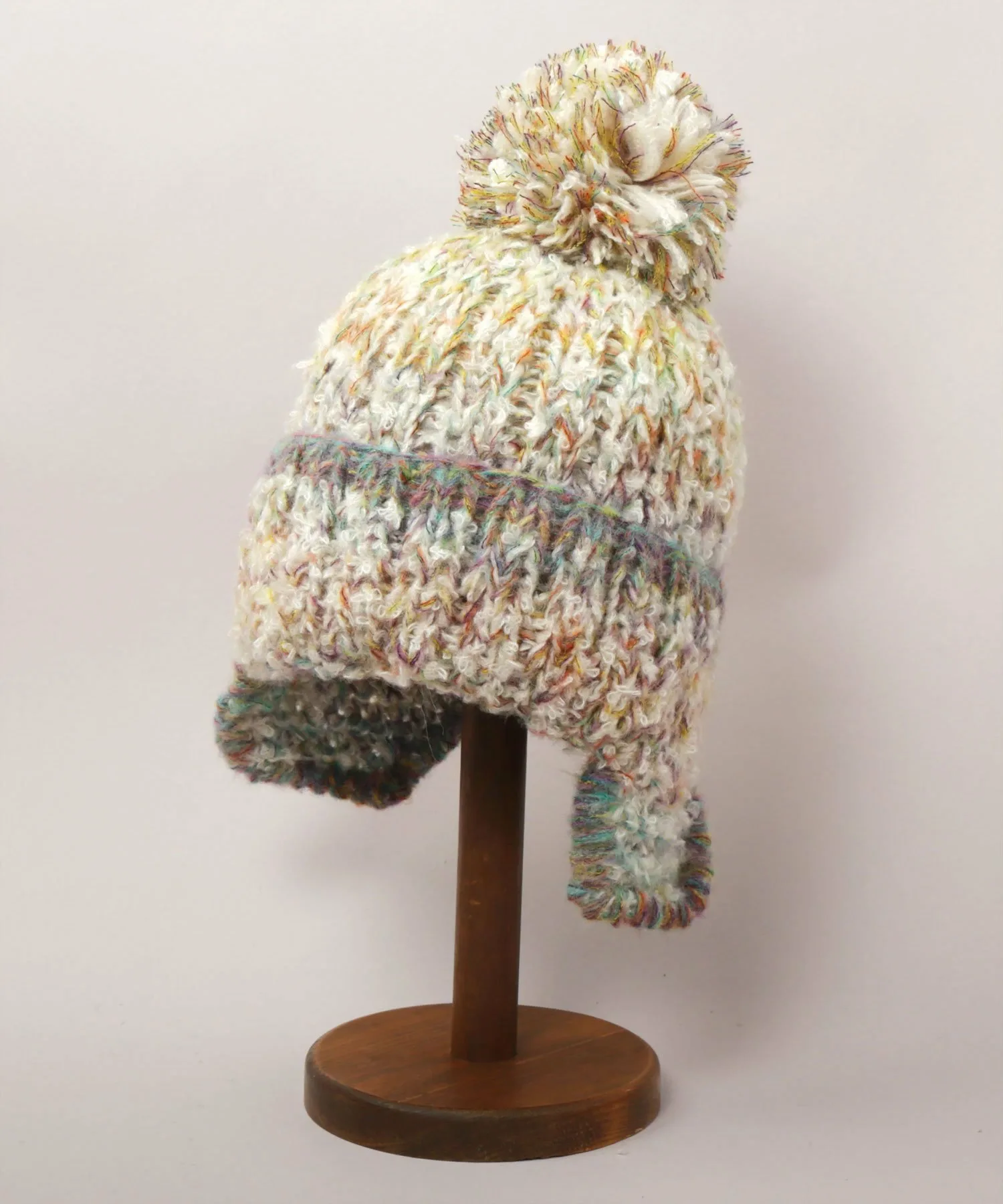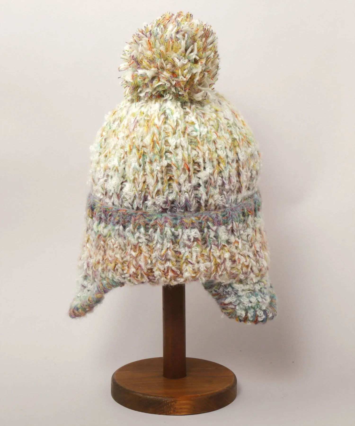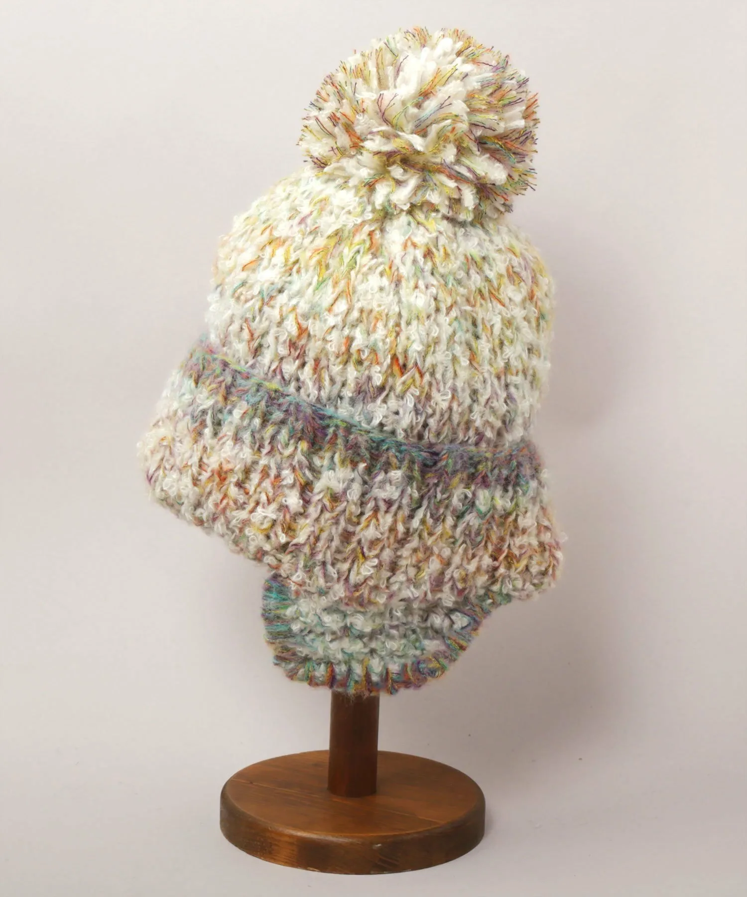 Мягкая вязаная ткань удобно сидит и защищает от холодного воздуха. Верх украшен помпоном.