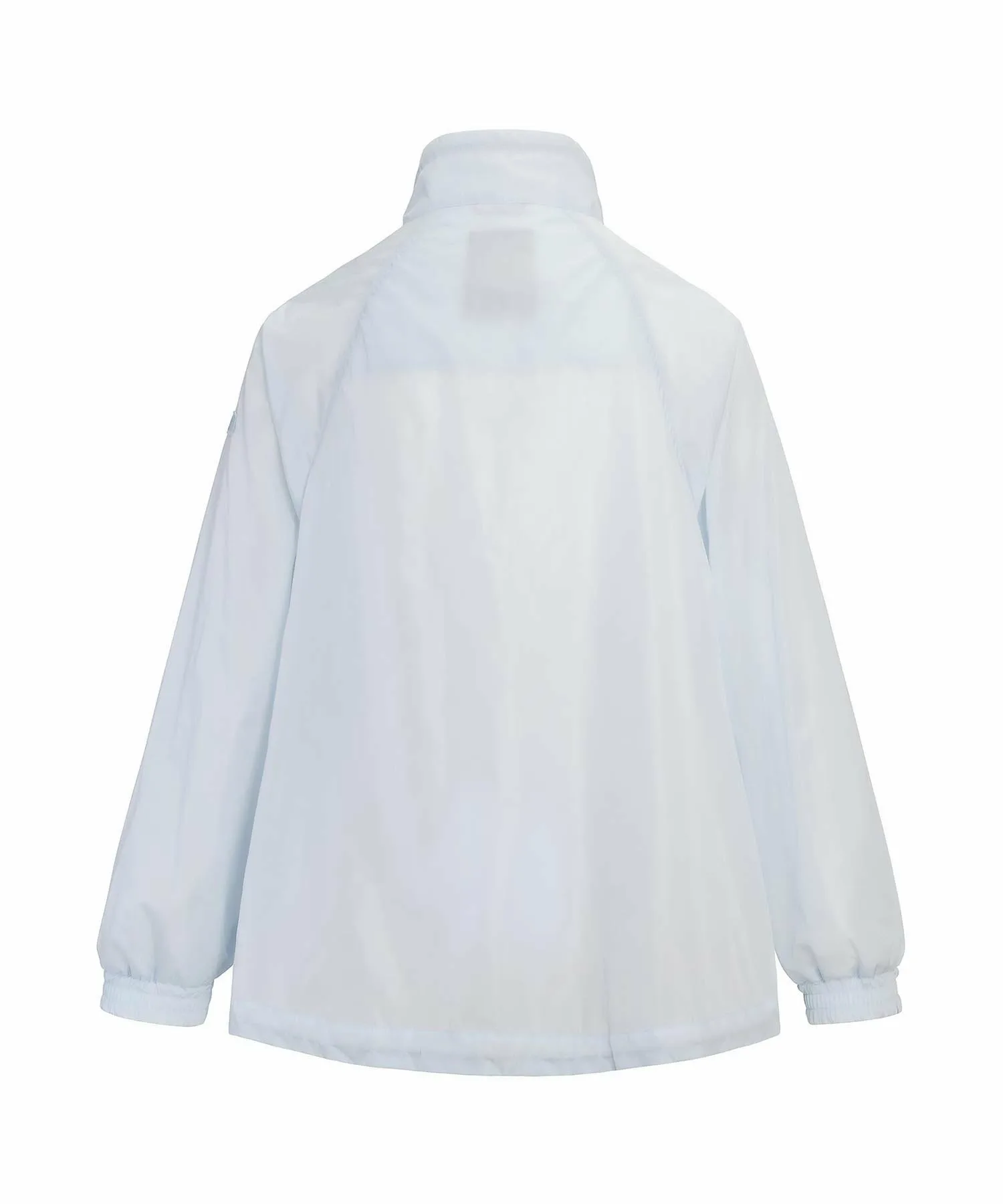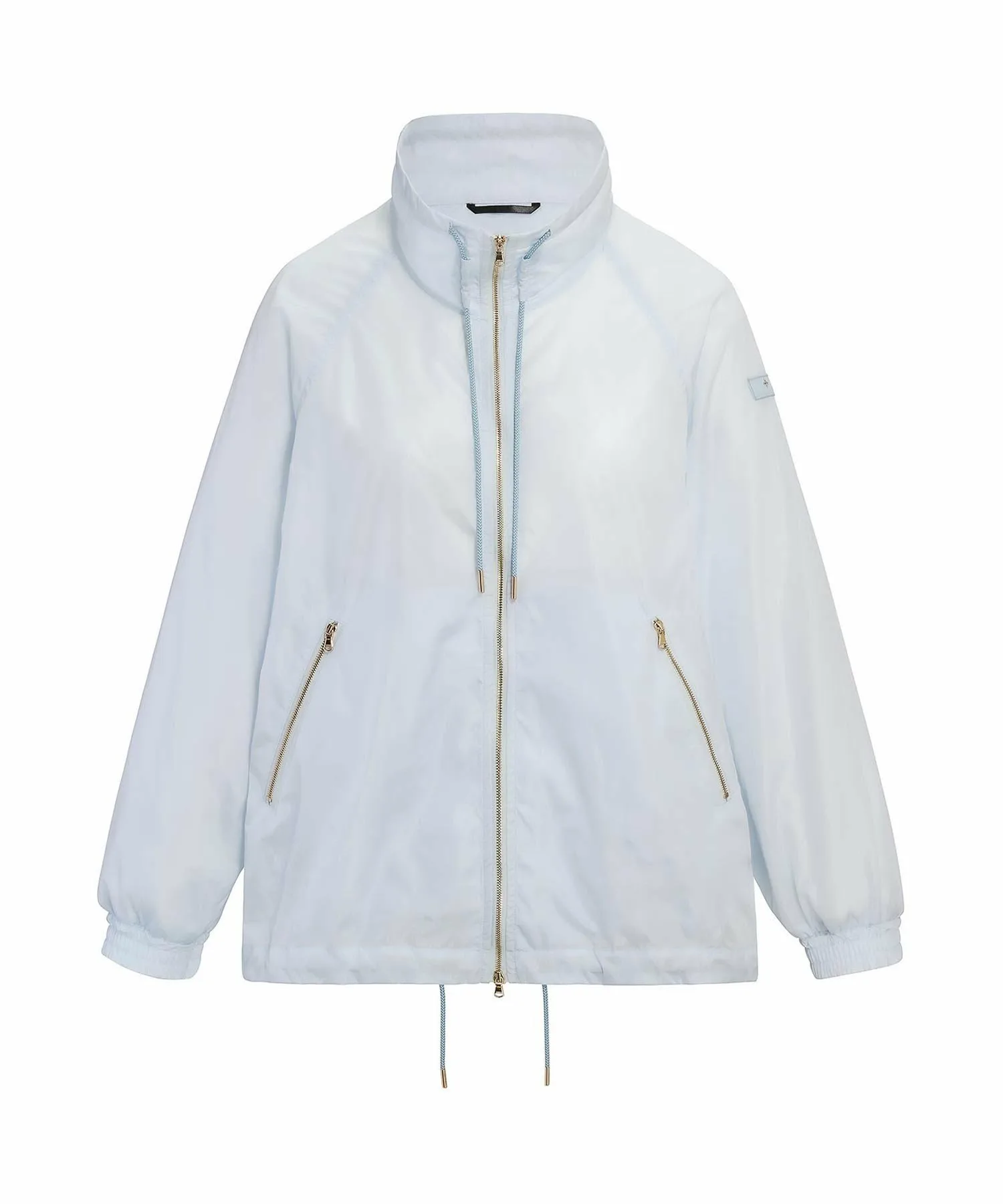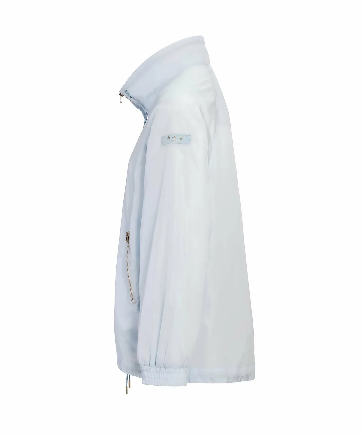 Блузон средней длины с впечатляющим А-образным силуэтом и объемным воротником-стойкой.