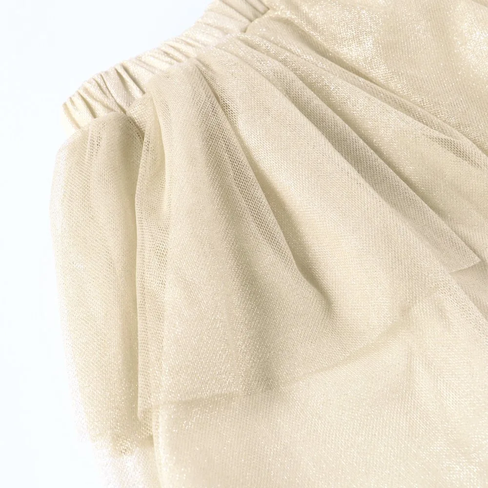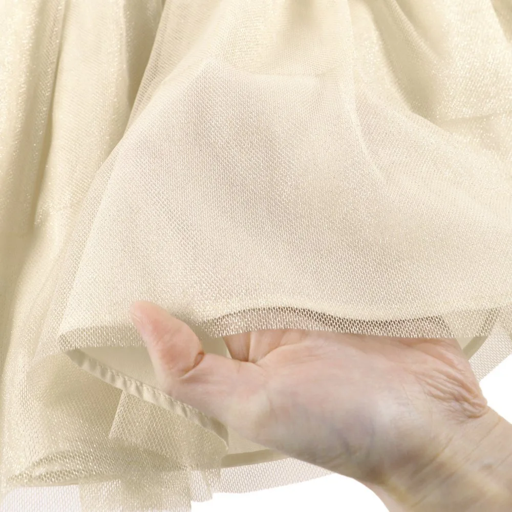 Тюль цвета слоновой кости украшен сверкающими блёстками,
